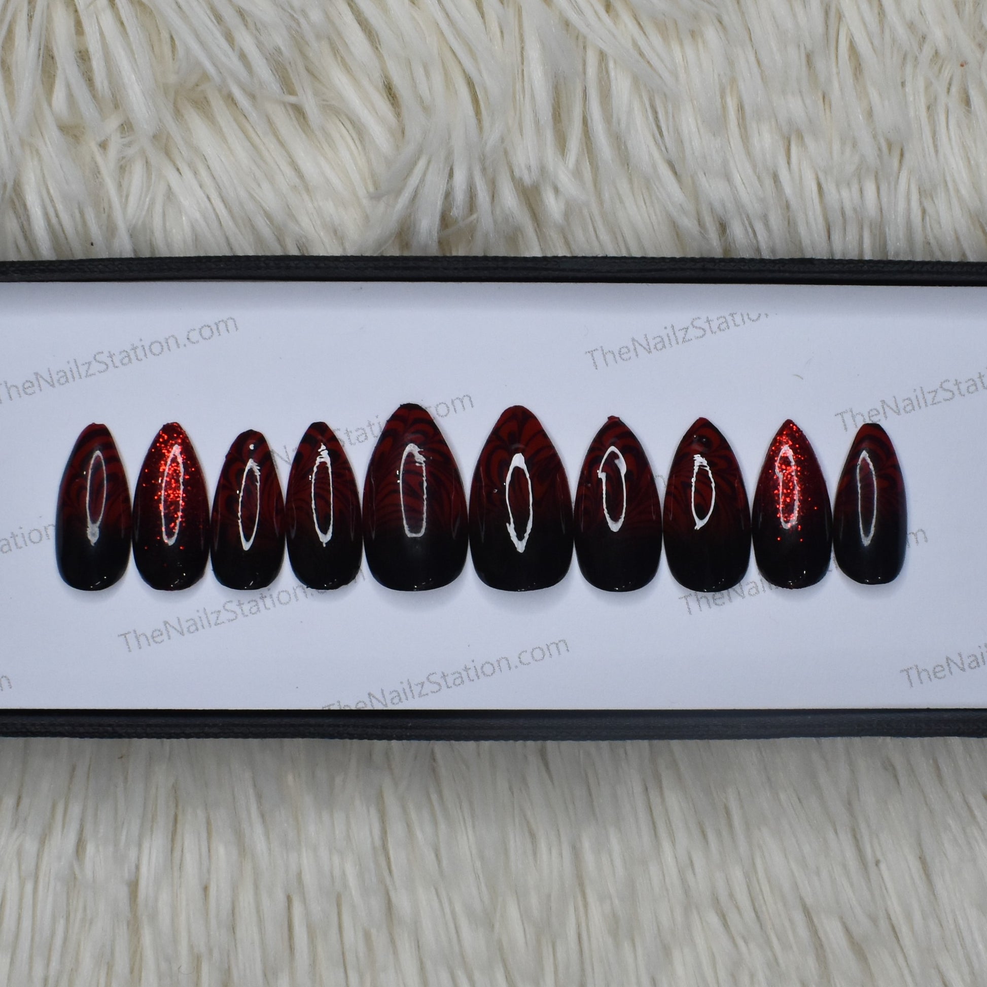 The NailzStation Glossy Maroon Glitter Ombre Press on Fake Artificial Nails Set with glue, filer, sticker application kit // 1324