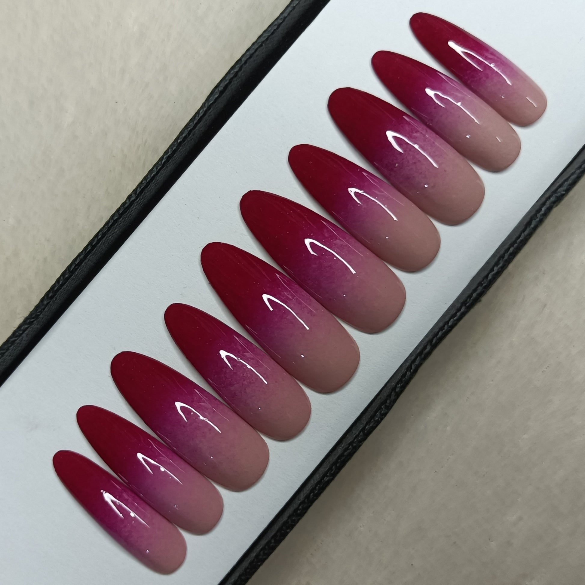 The NailzStation Glossy Maroon Ombre Press on Fake Artificial Nails Set with glue, filer, sticker application kit // 1291