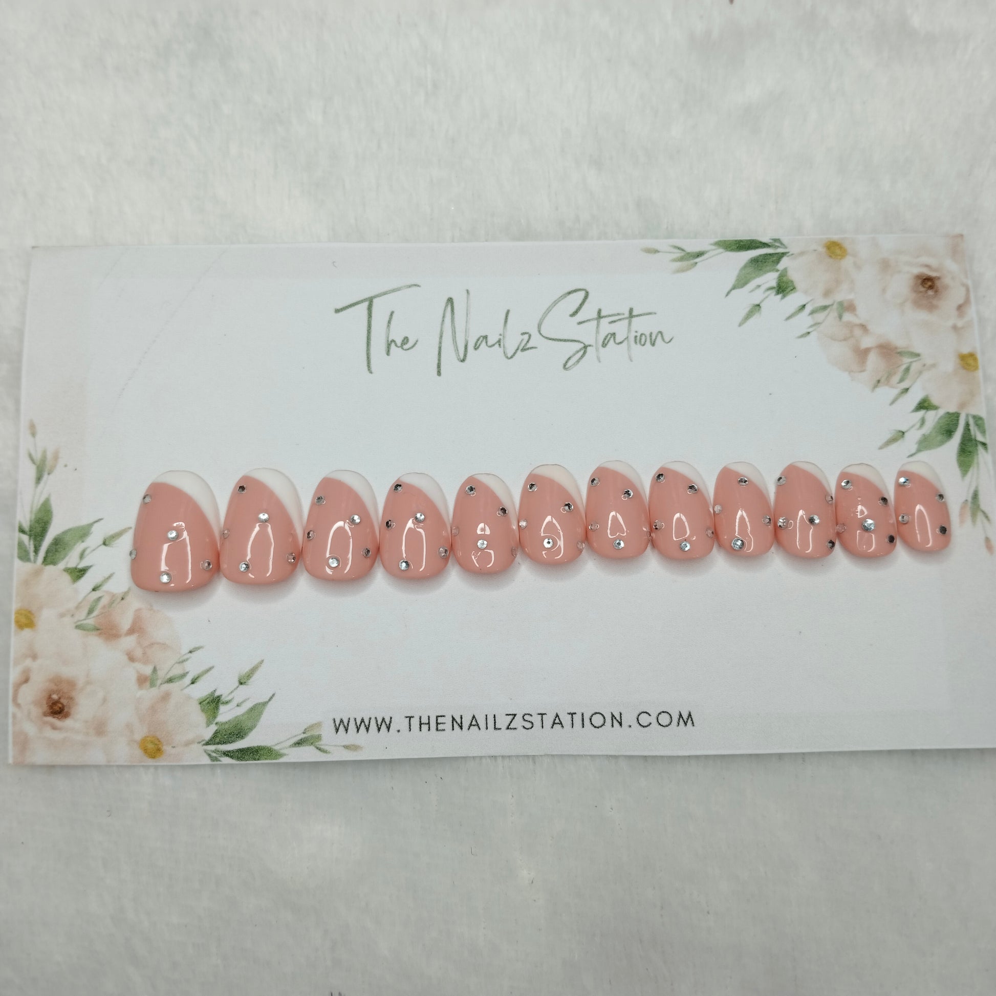 The NailzStation Glossy Nude Studded French Press on Fake Artificial Nails Set with glue, filer, sticker application kit // 1486