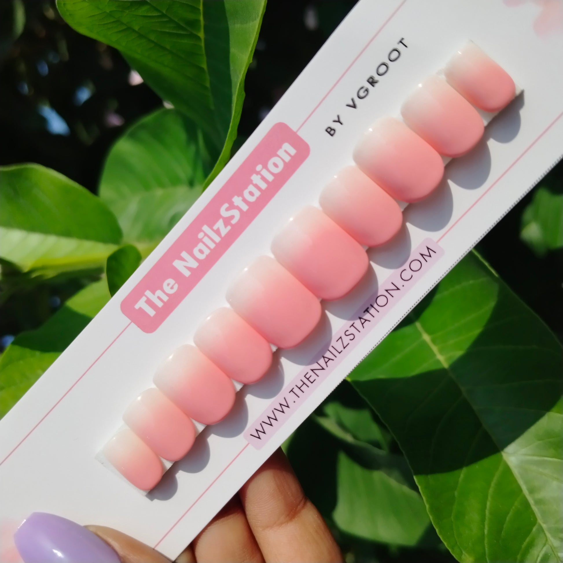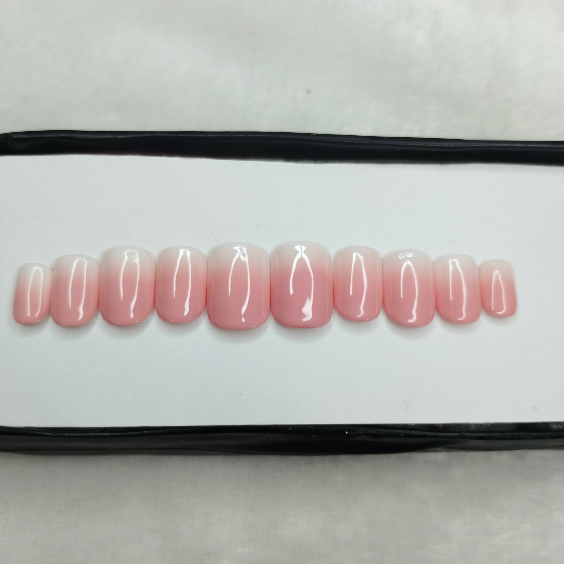 The NailzStation Glossy Pink and White Ombre Press on Fake Artificial Nails Set with glue, filer, sticker application kit // 1433