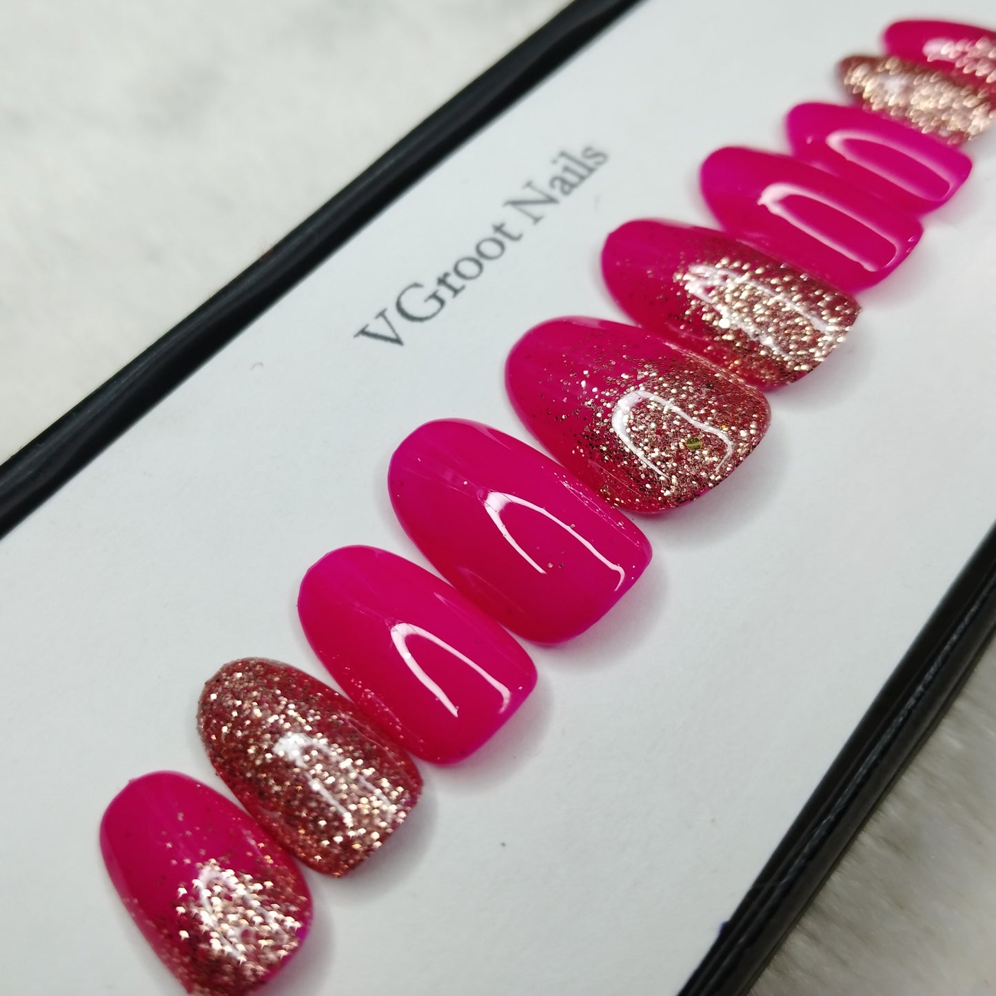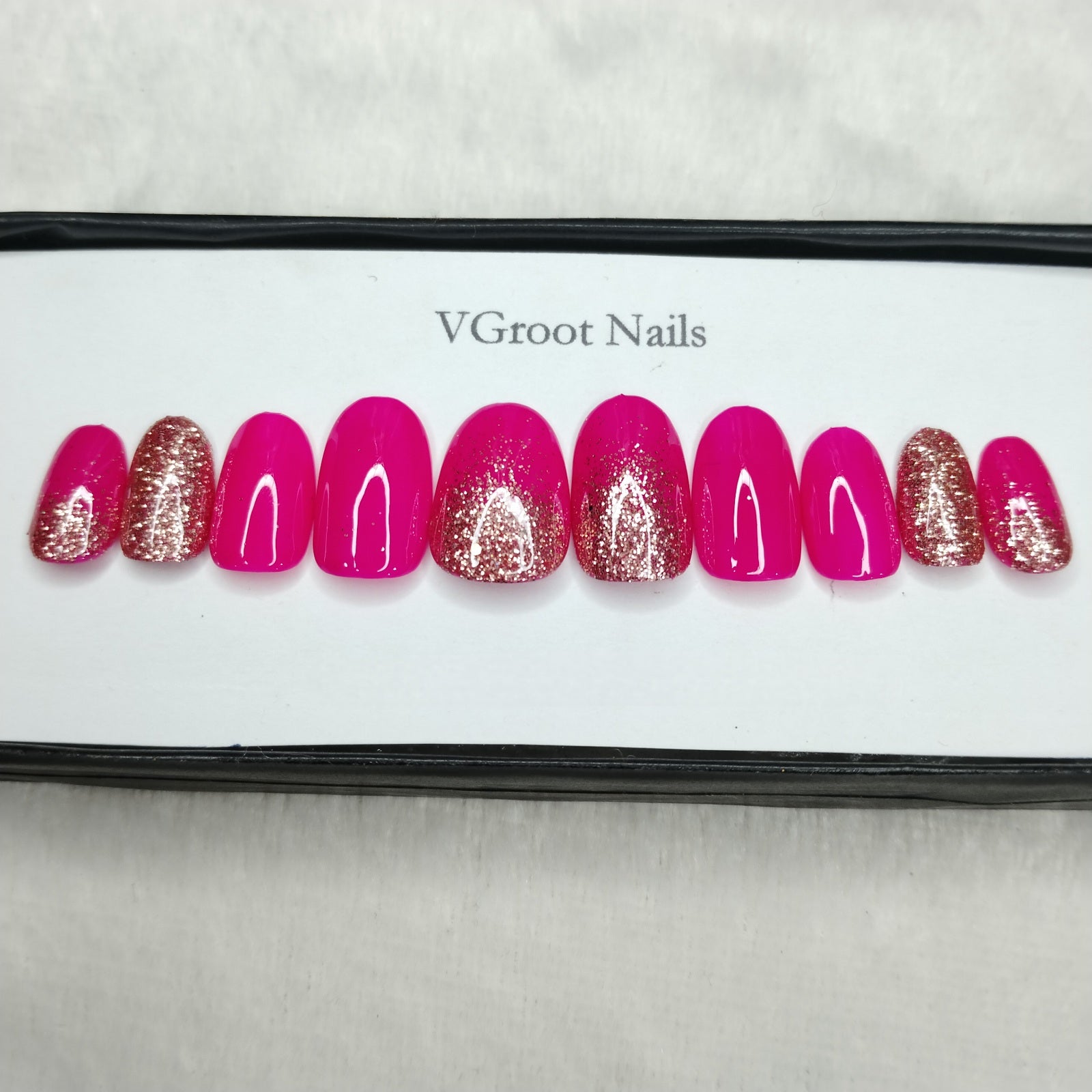 The NailzStation Glossy Pink Glitter Ombre Press on Fake Artificial Nails Set with glue, filer, sticker application kit // 1085