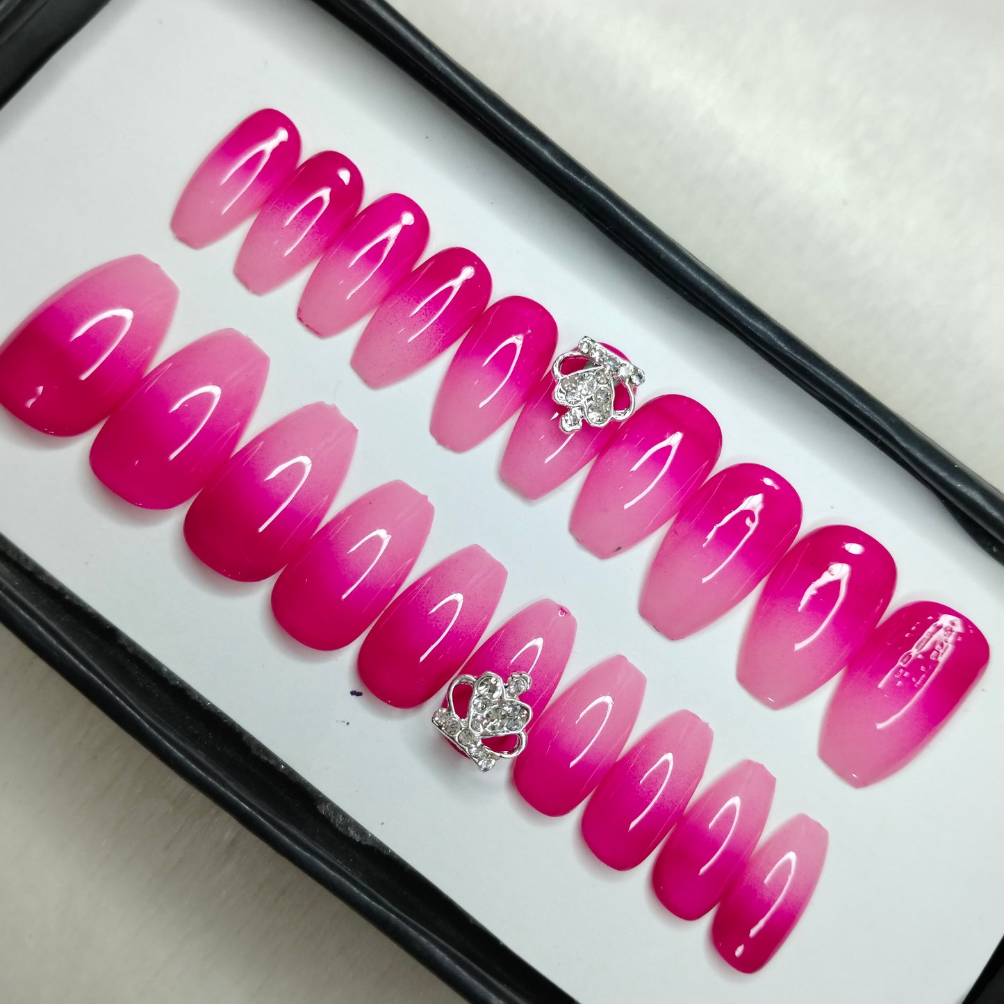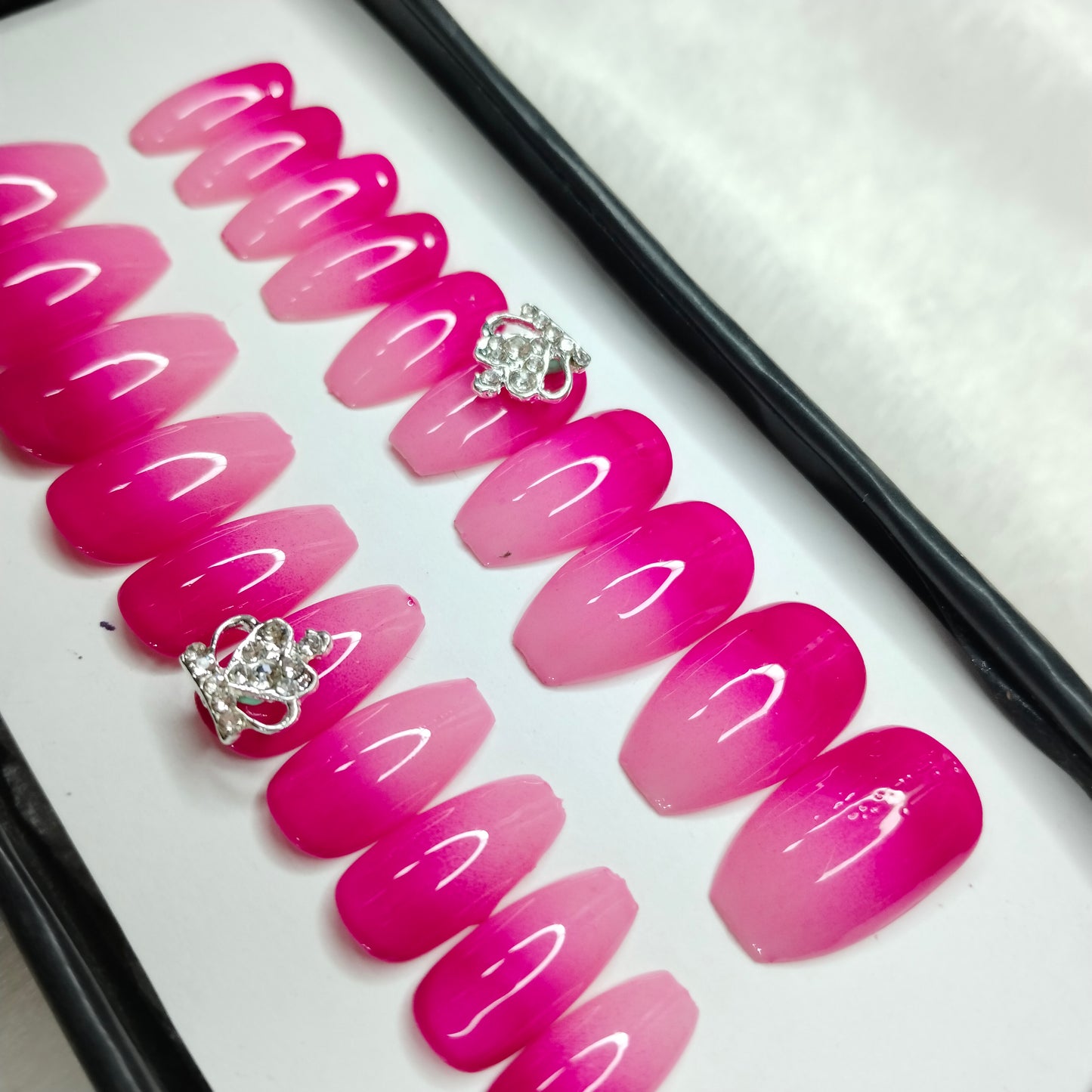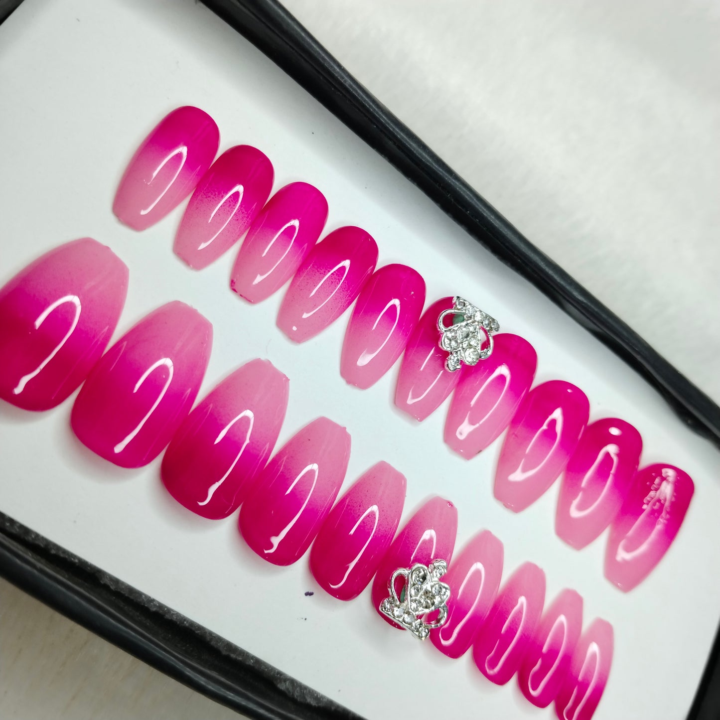 The NailzStation Glossy Pink Ombre 3D Charms Press on Fake Artificial Nails Set with glue, filer, sticker application kit // 1200