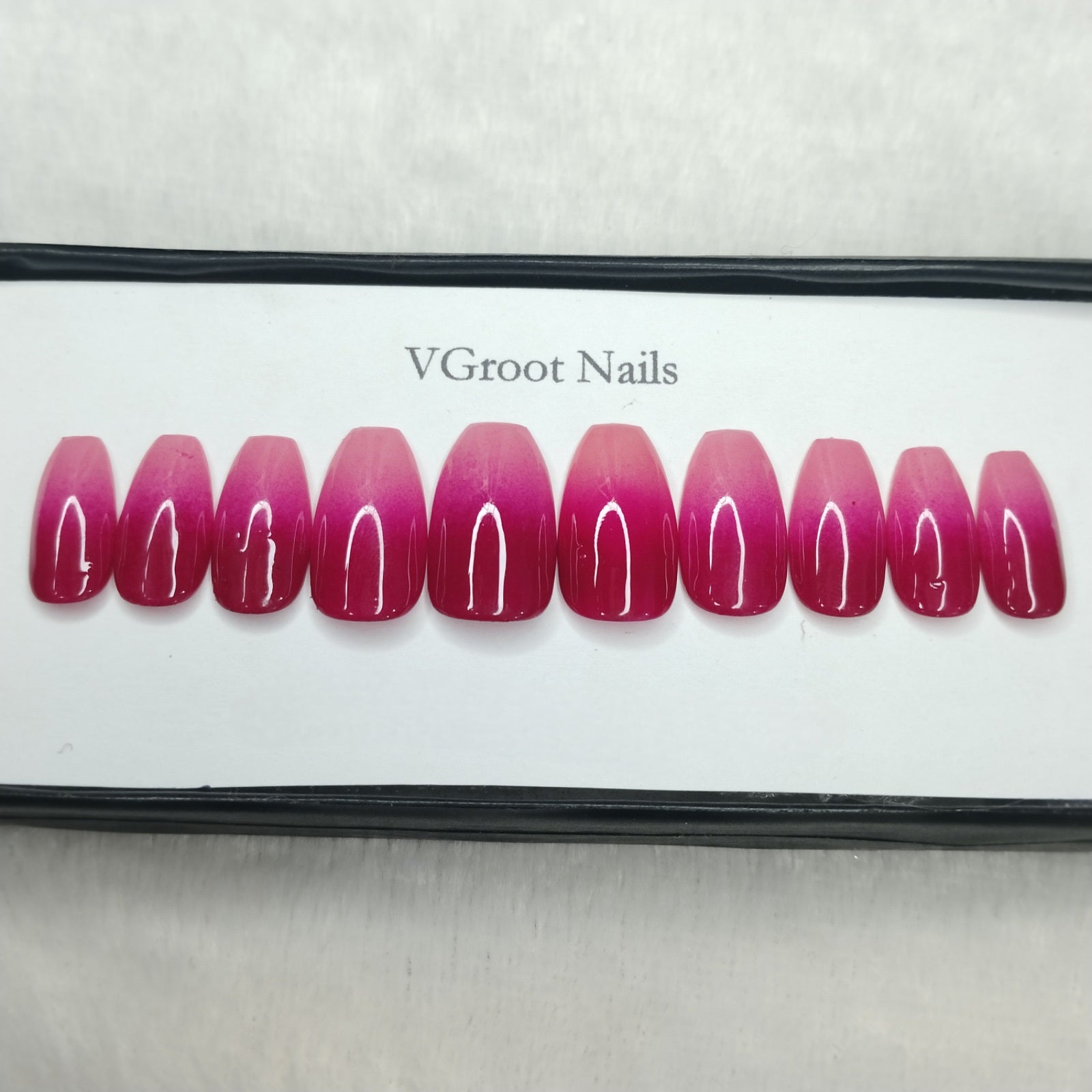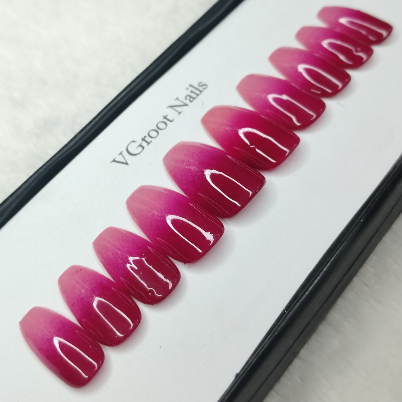 The NailzStation Glossy Pink Ombre Press on Fake Artificial Nails Set with glue, filer, sticker application kit // 1092