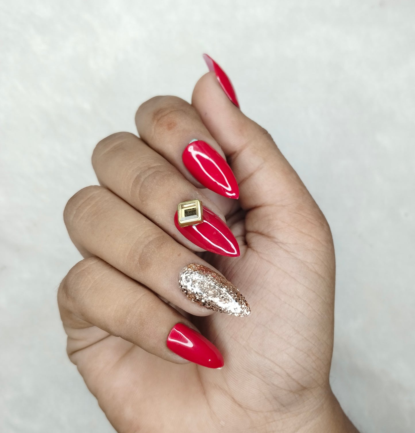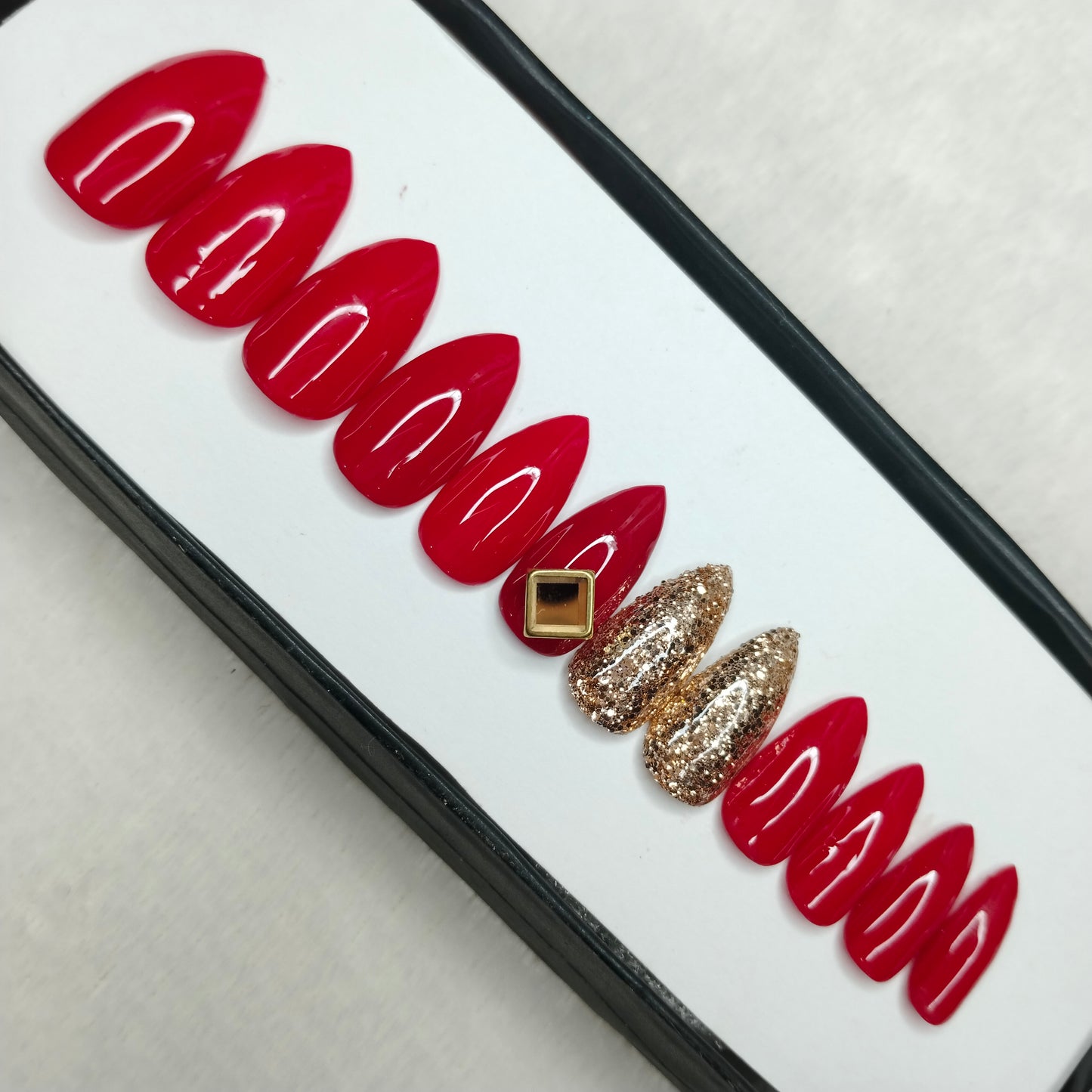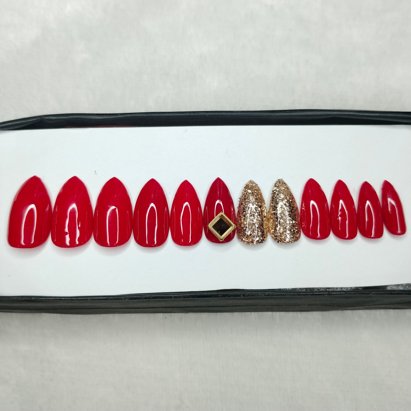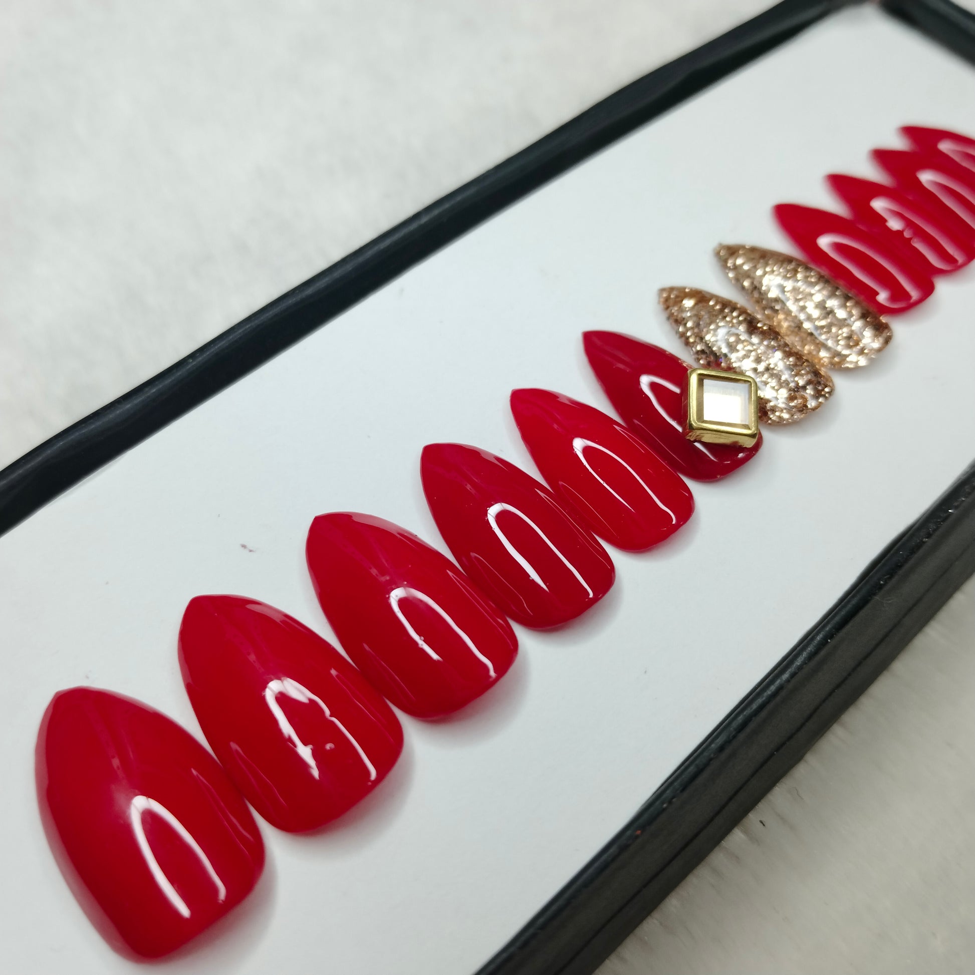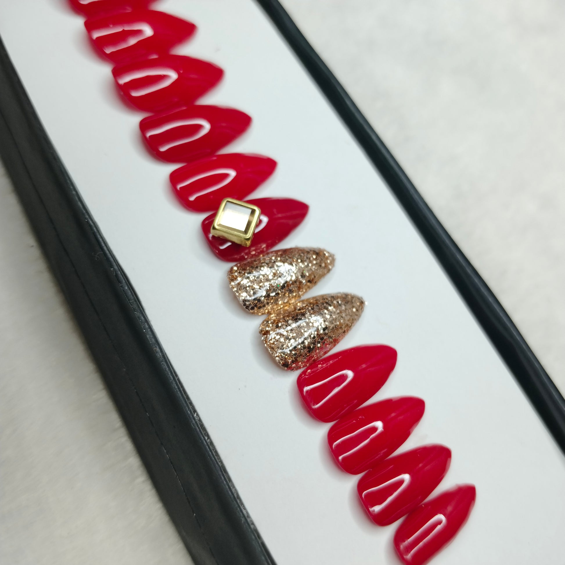 The NailzStation Glossy Red 3D Studded Glitter Press on Fake Artificial Nails Set with glue, filer, sticker application kit // 1203