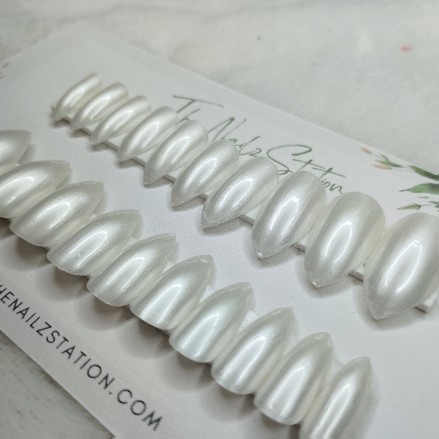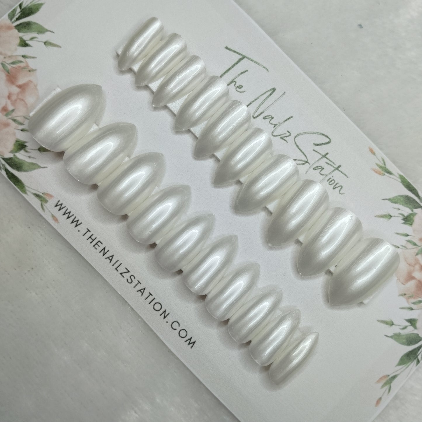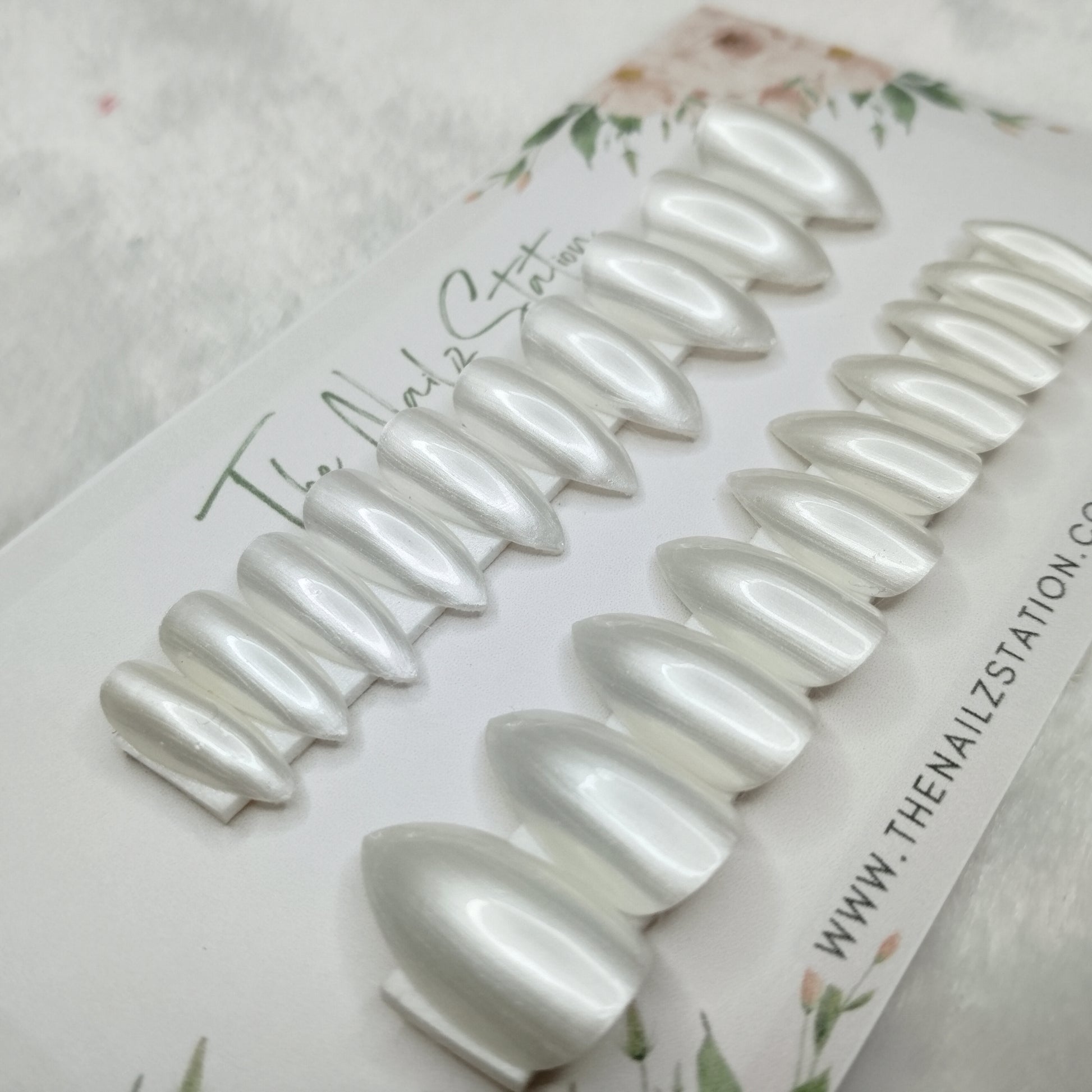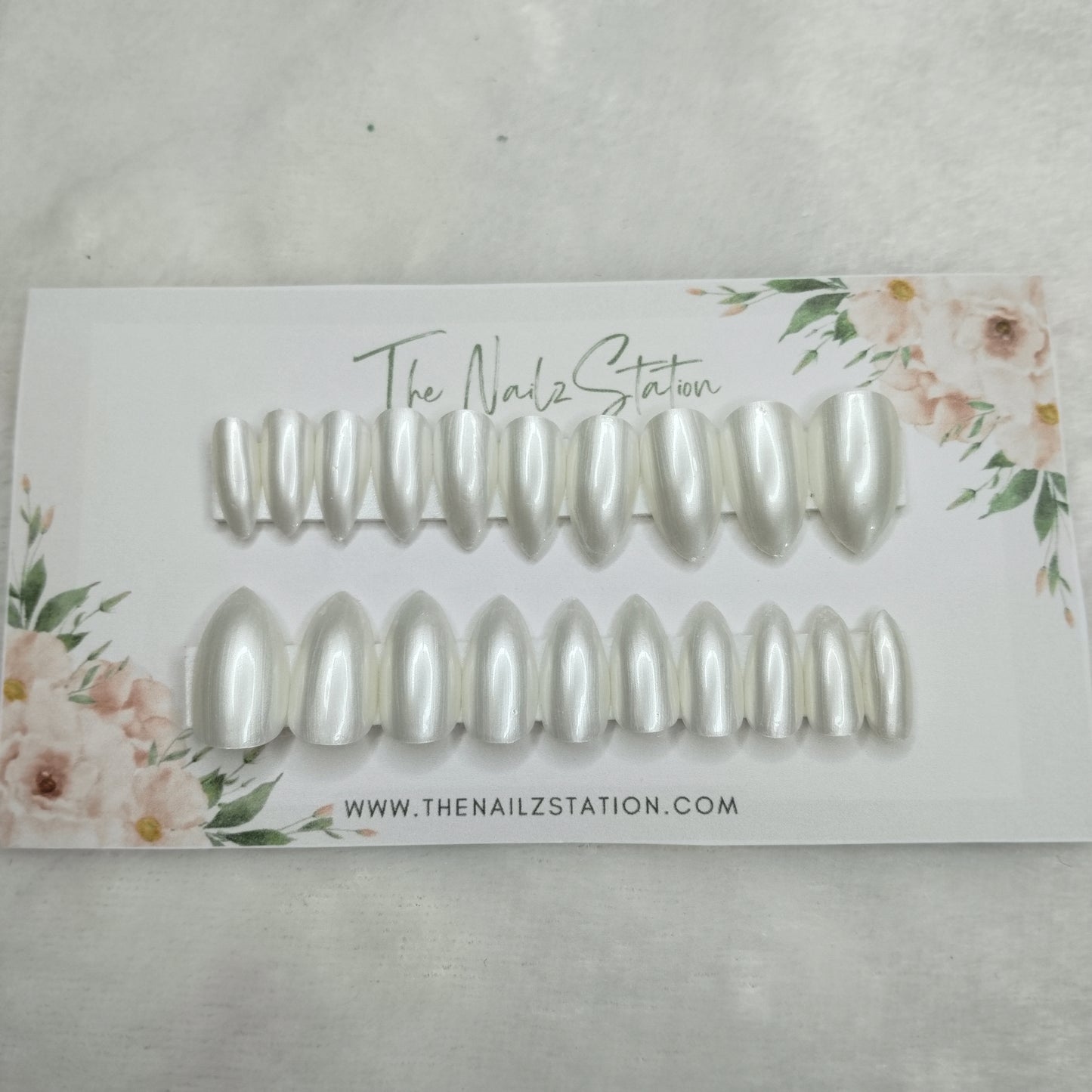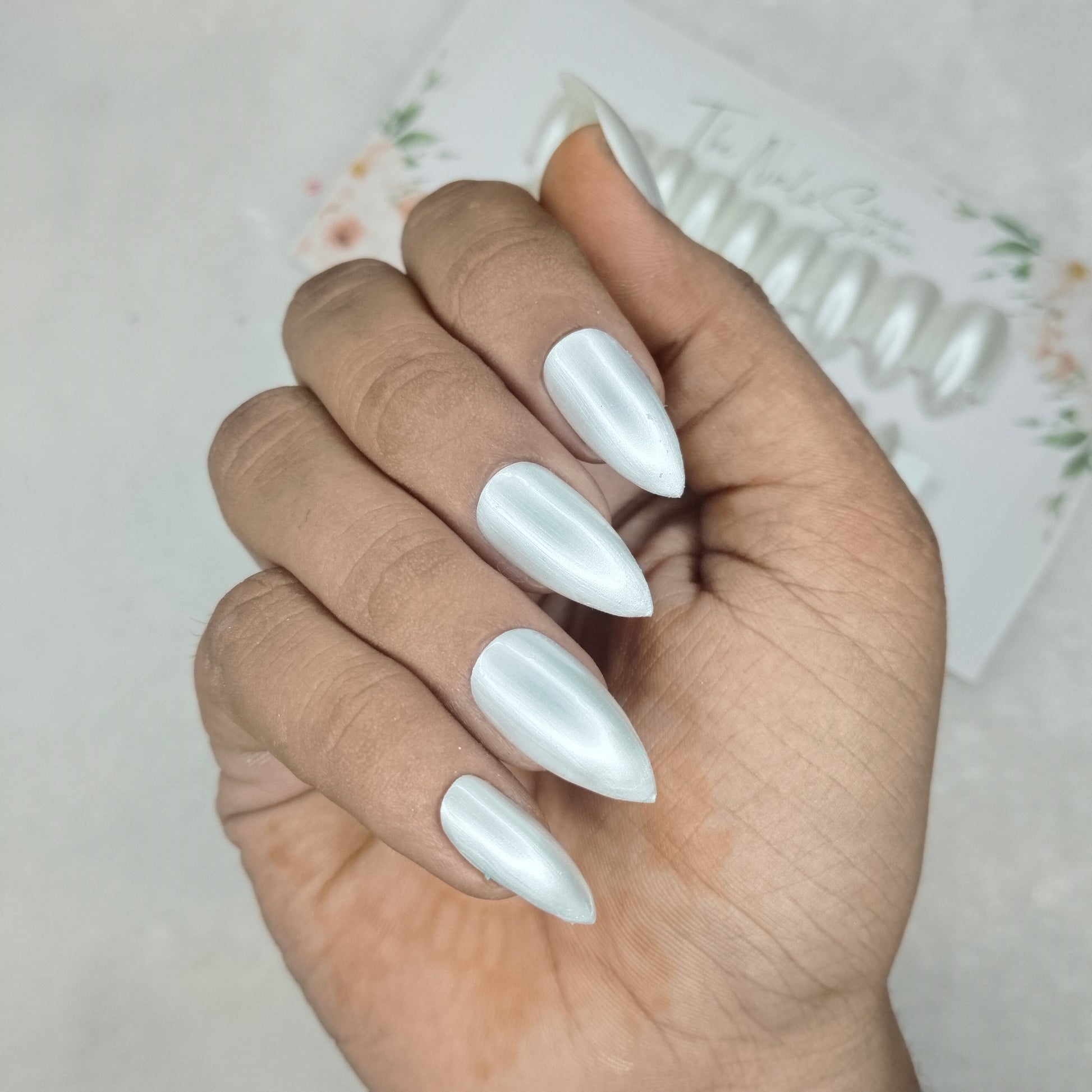 The NailzStation Pearl Chrome Press on Fake Artificial Nails Set with glue, filer, sticker application kit SB-SY-54