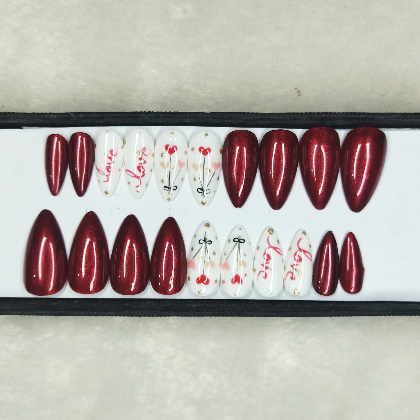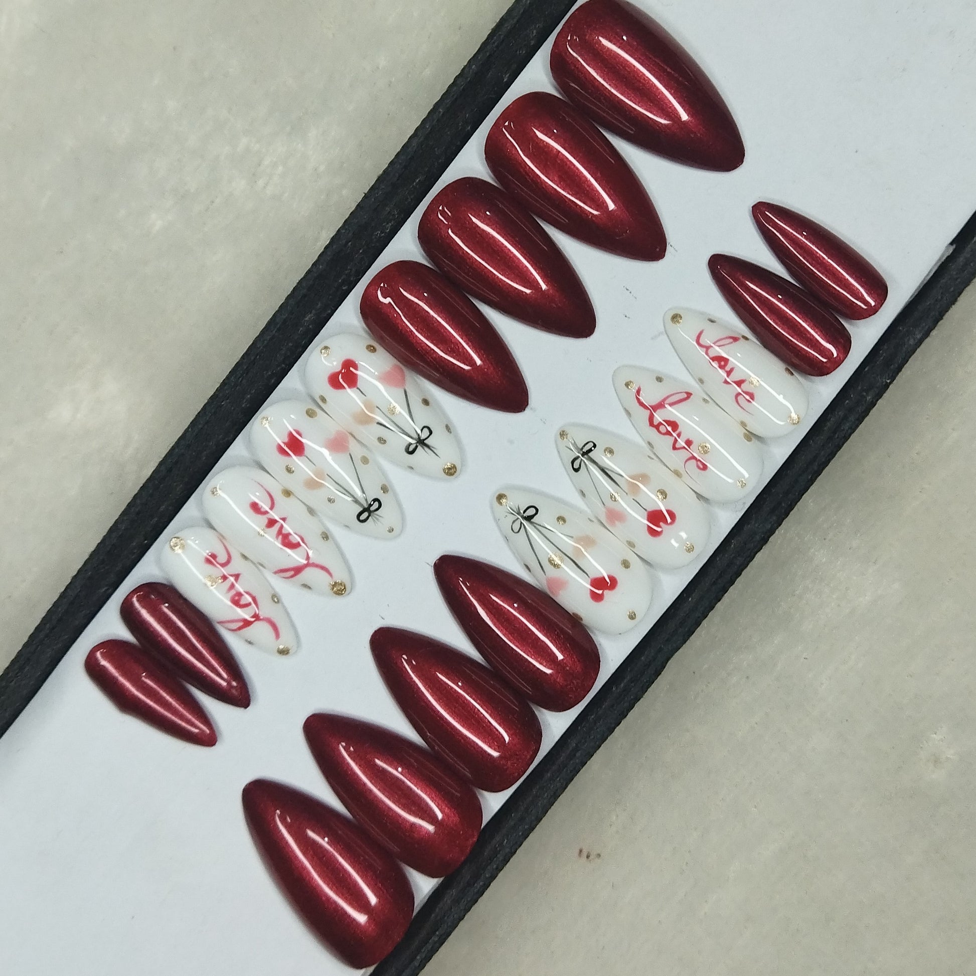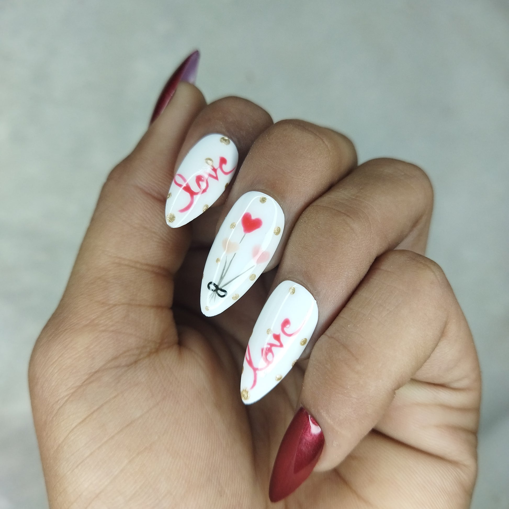 Valentine Collection: Glossy Maroon Hearts Balloon Press on Nails Set // 736