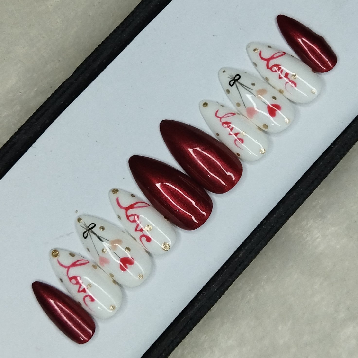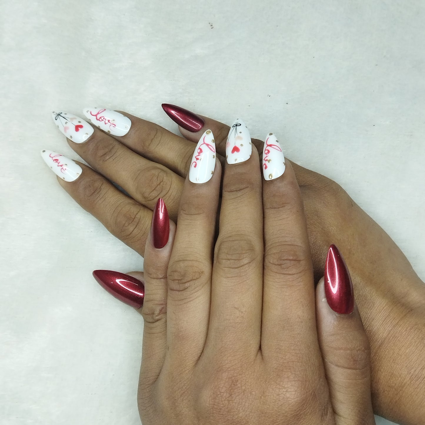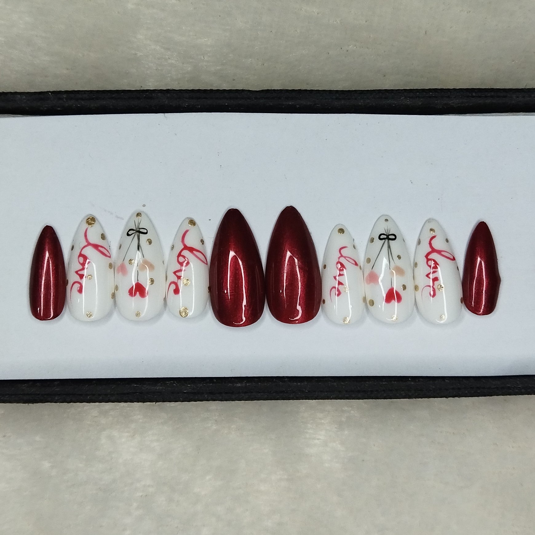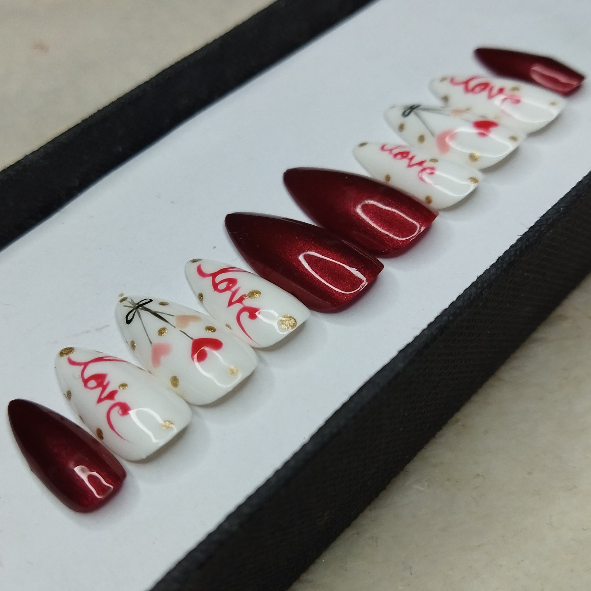 Valentine Collection: Glossy Maroon Hearts Balloon Press on Nails Set // 736
