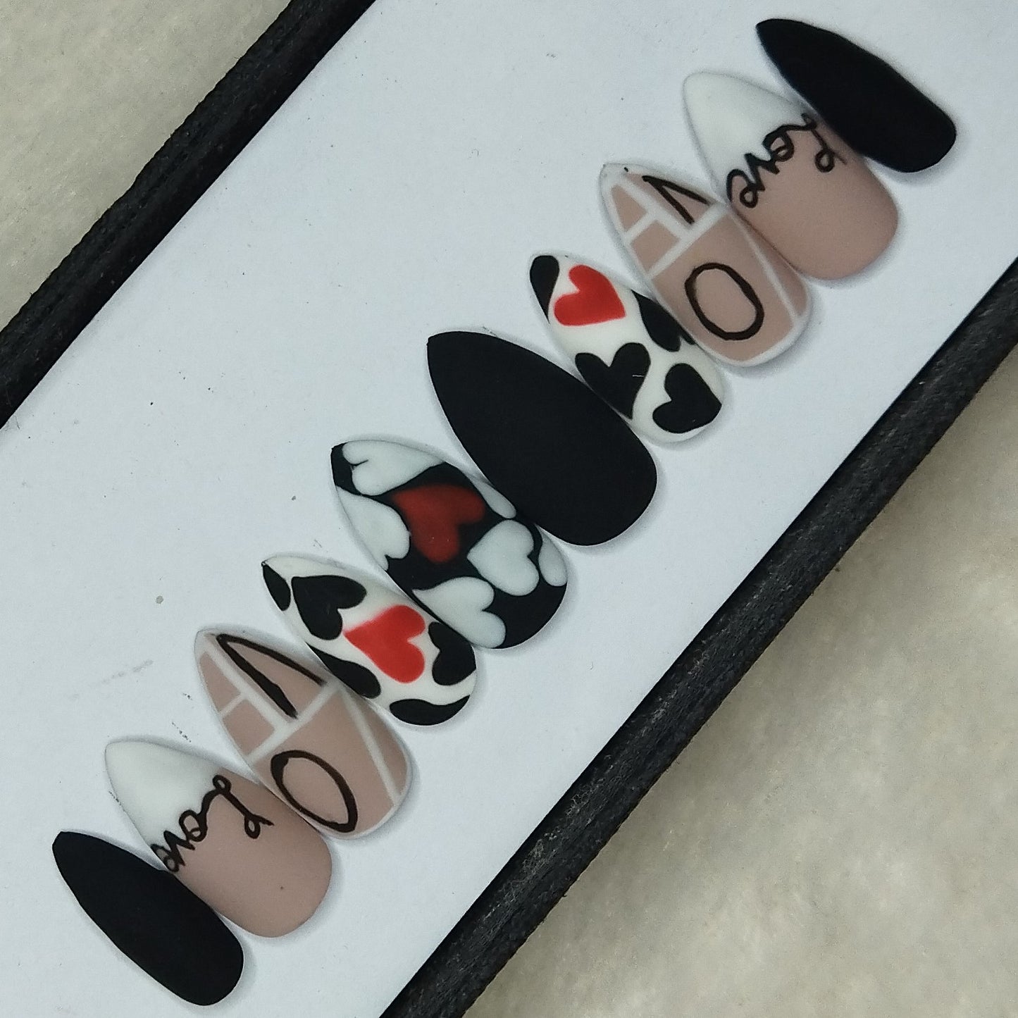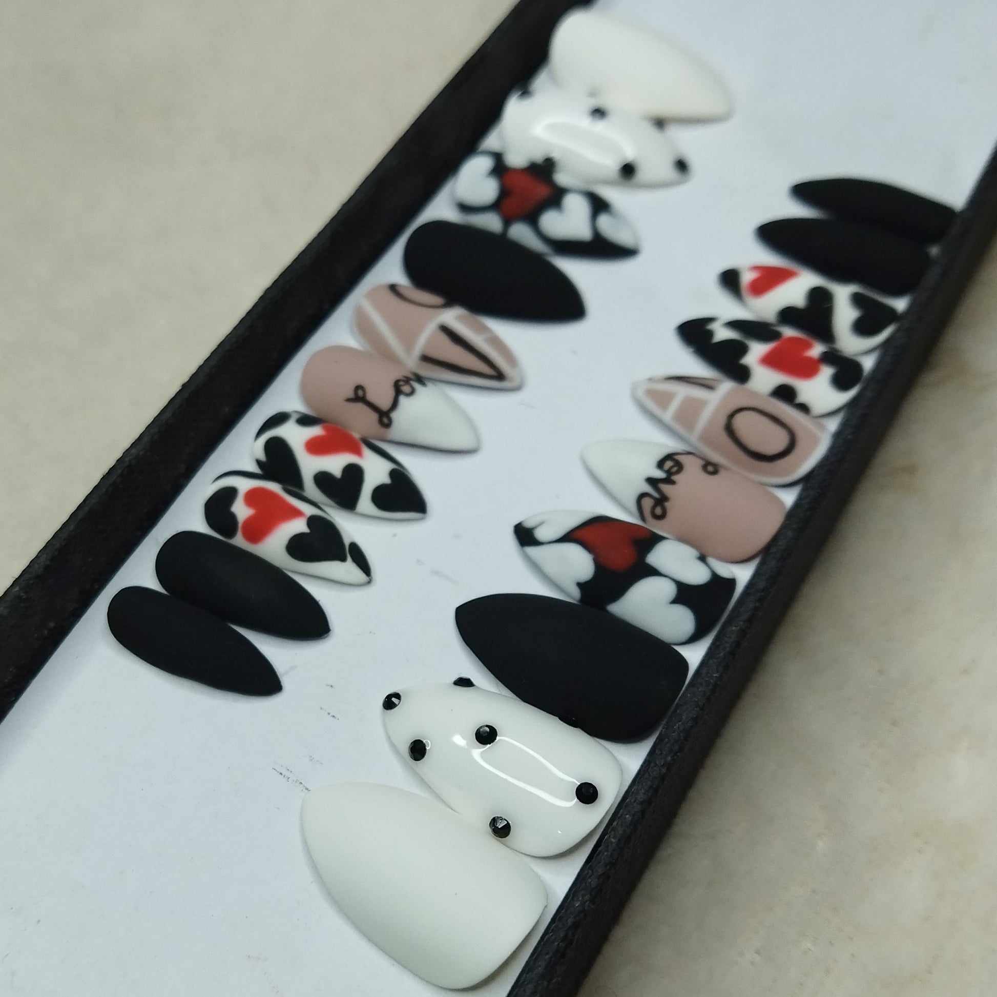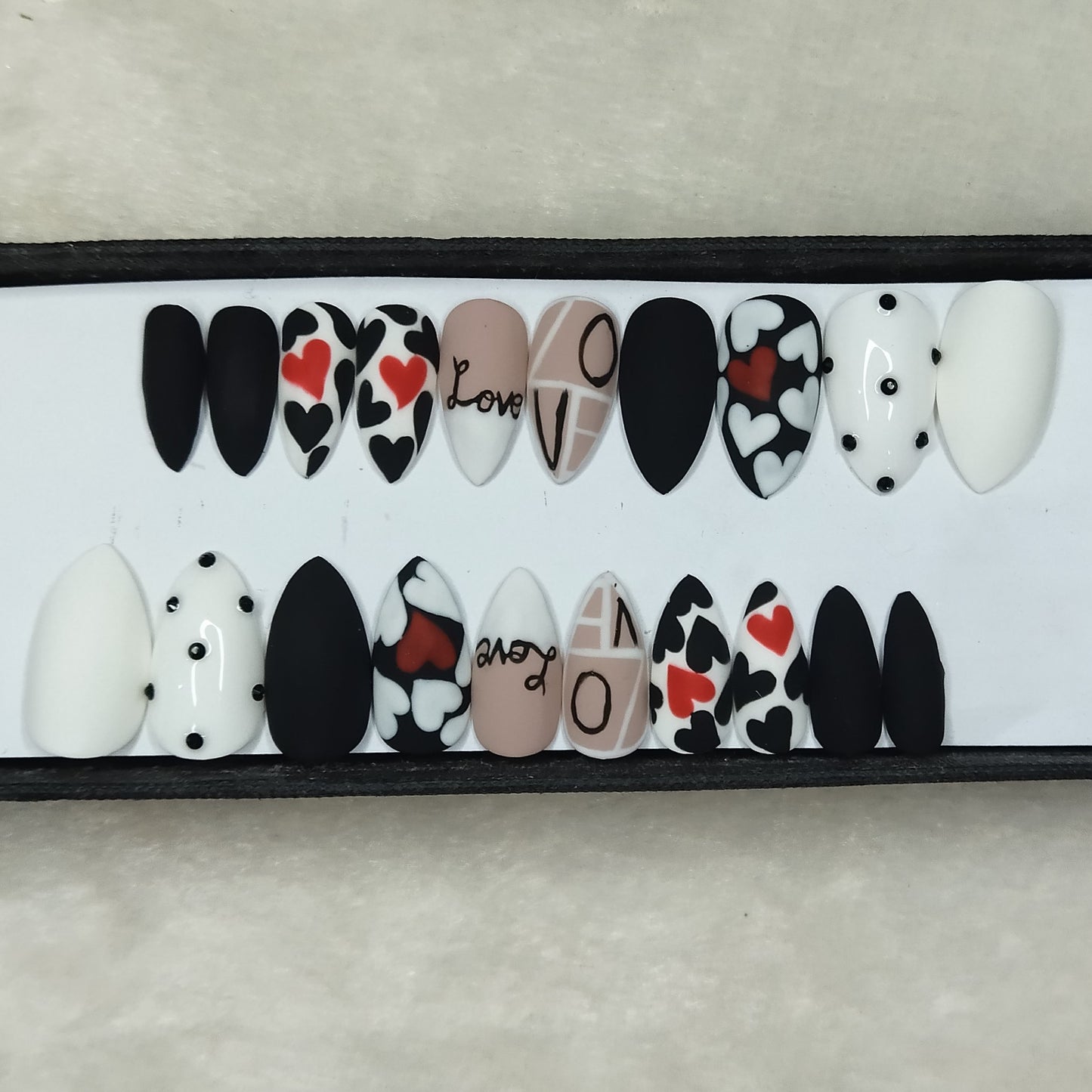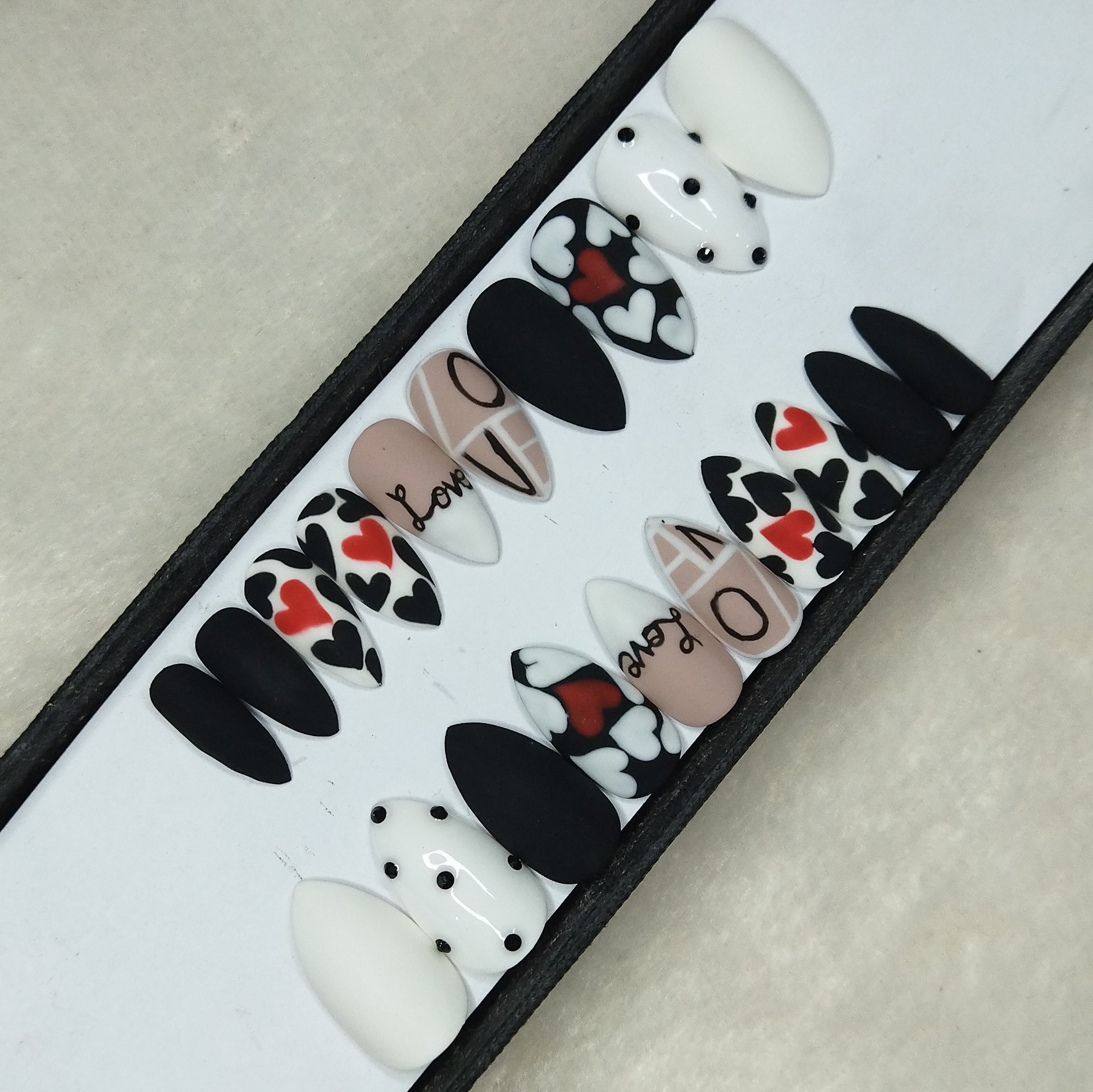 Valentine Collection: Matte Black & White Heart Press on Nails Set // 732