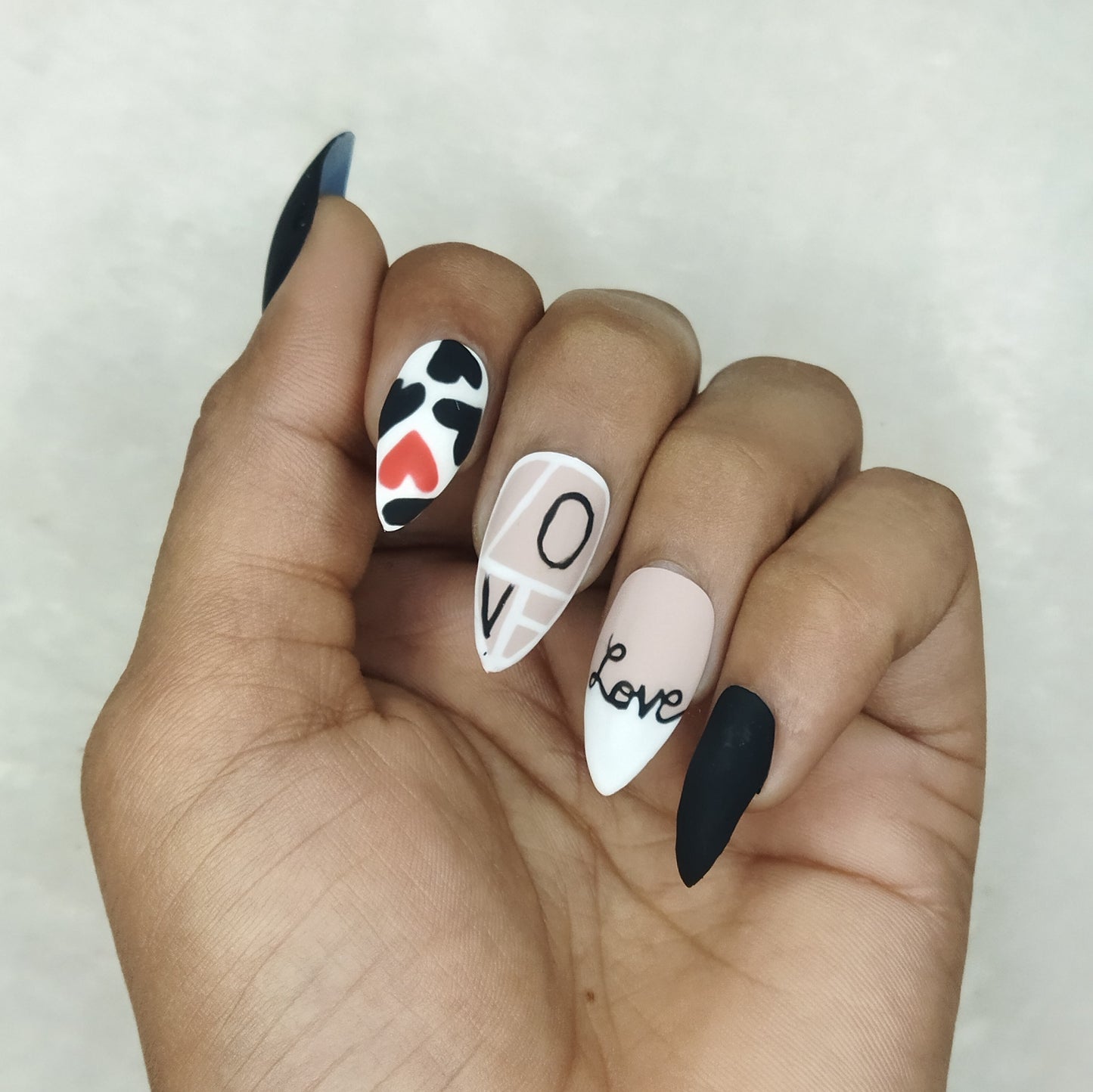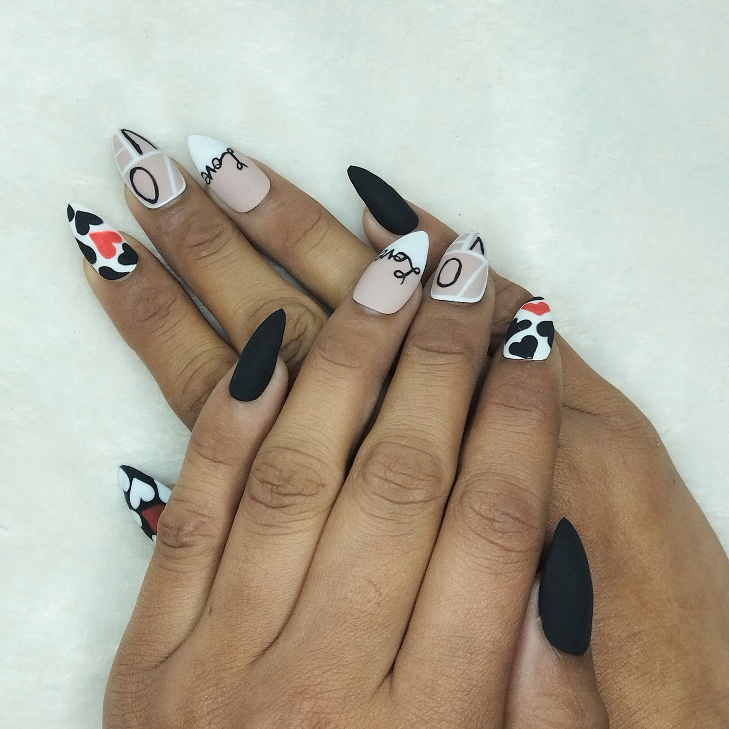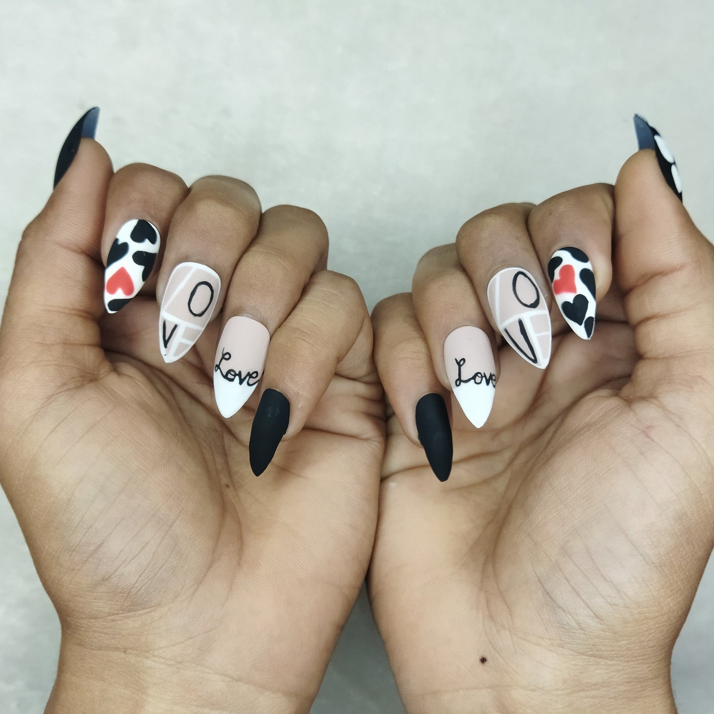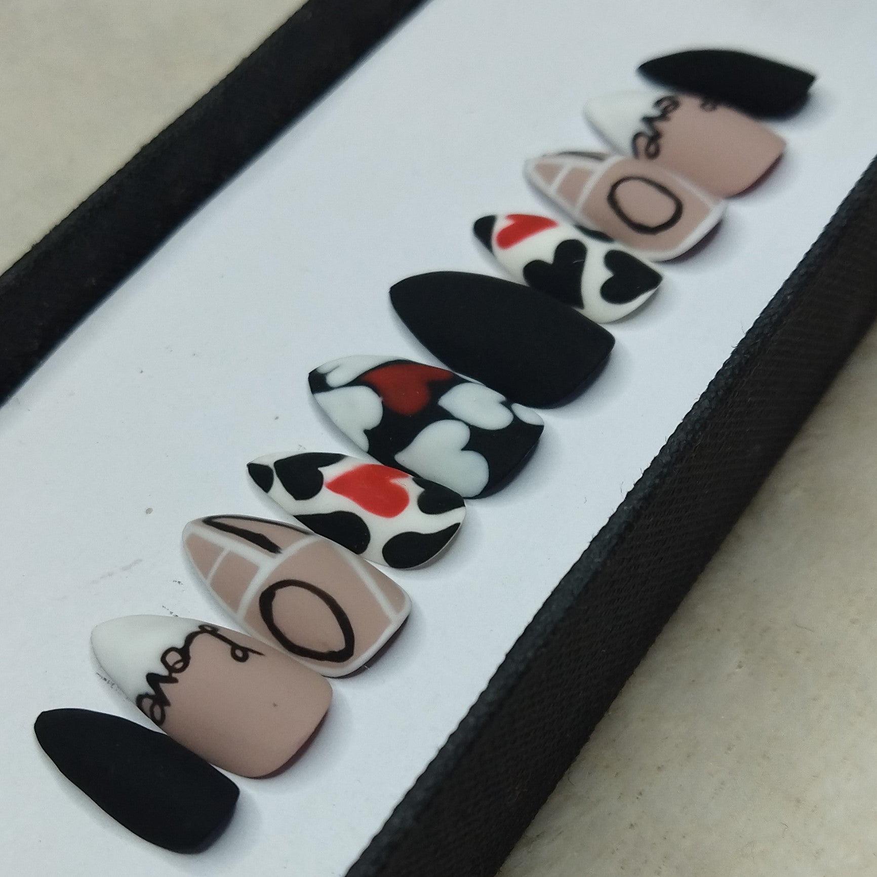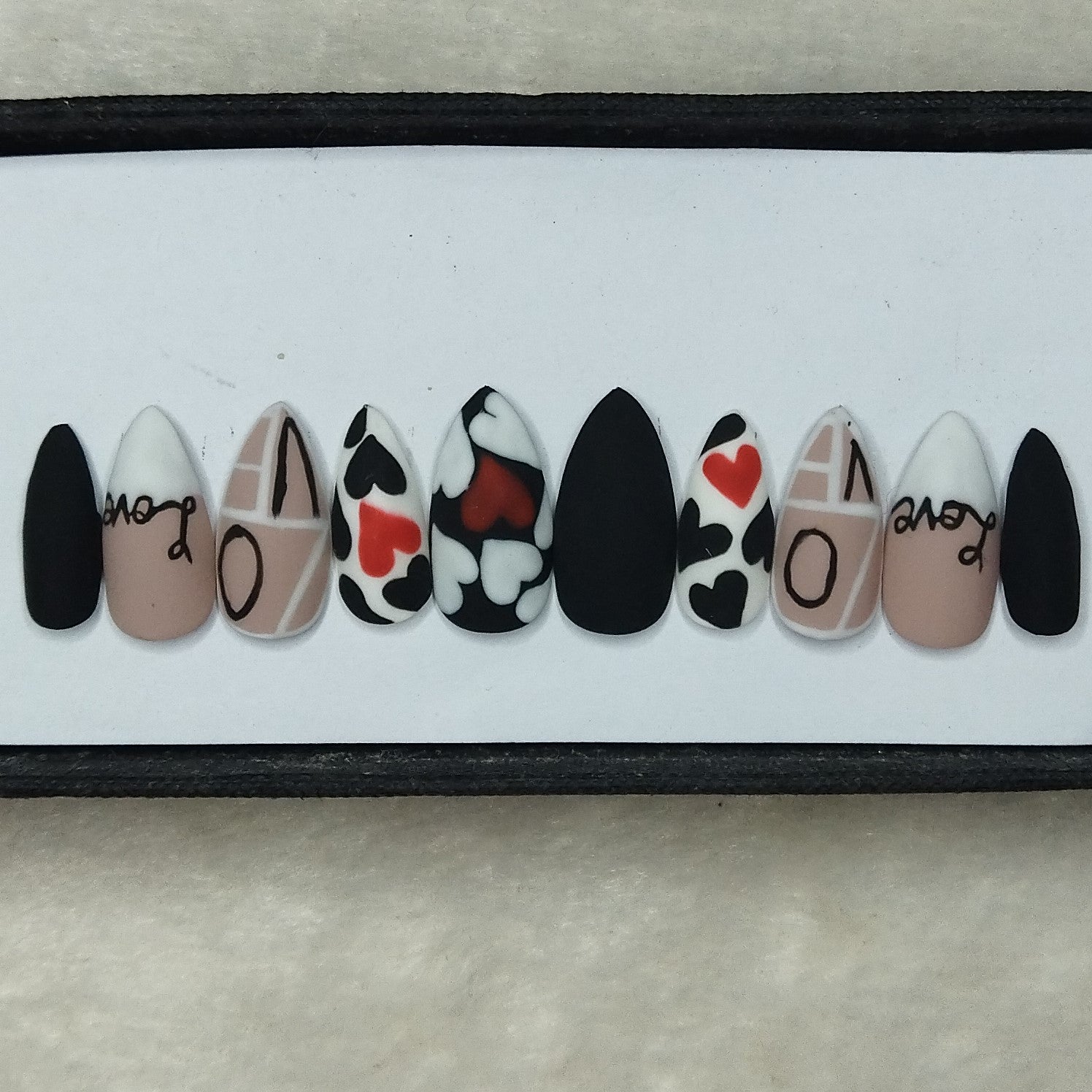 Valentine Collection: Matte Black & White Heart Press on Nails Set // 732