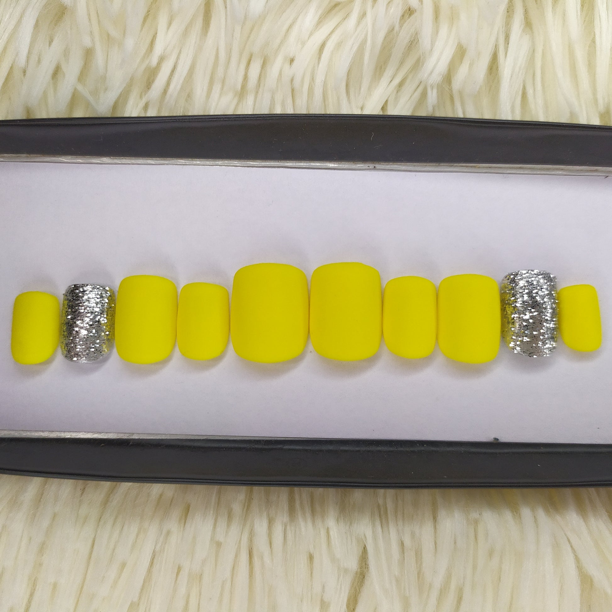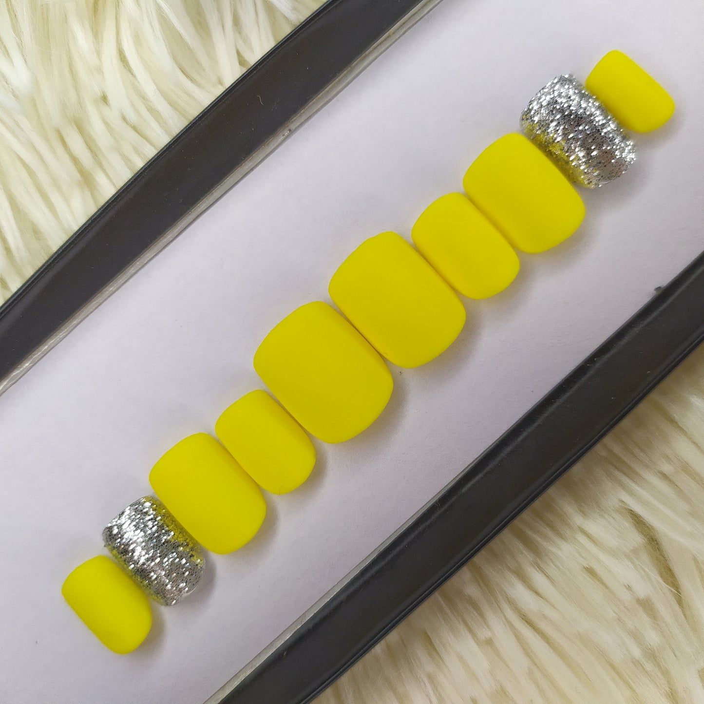 Yellow Matte with Silver Glitter Press on Nails Set // 229