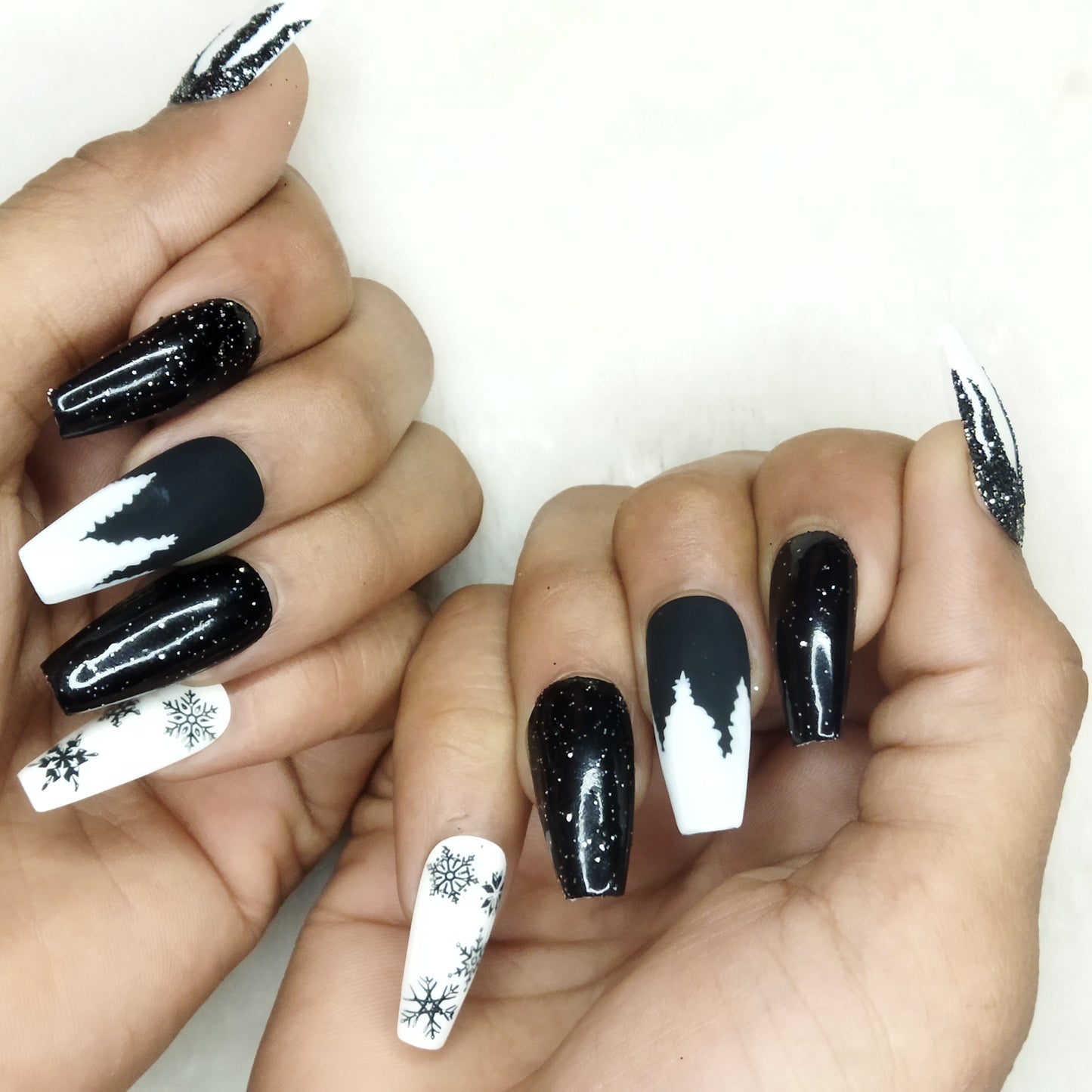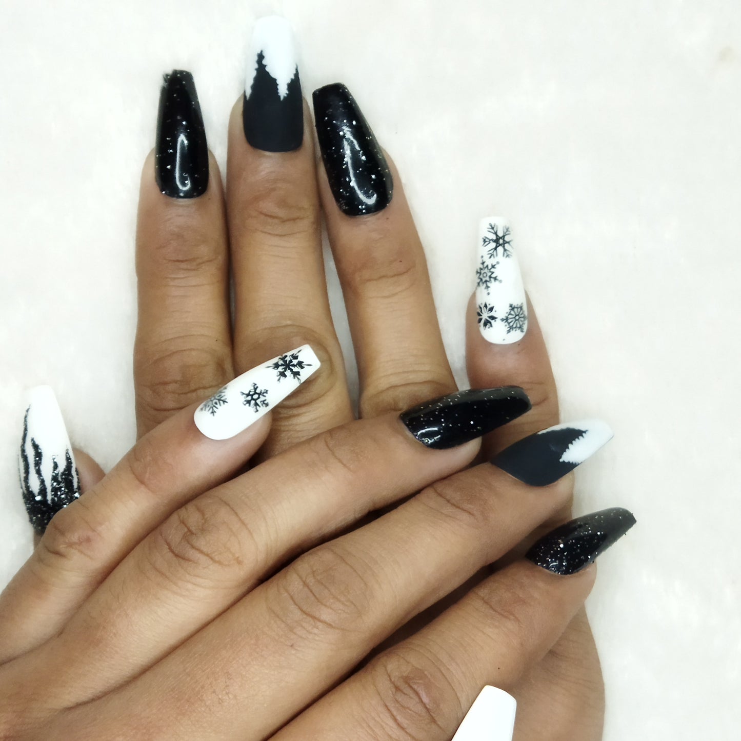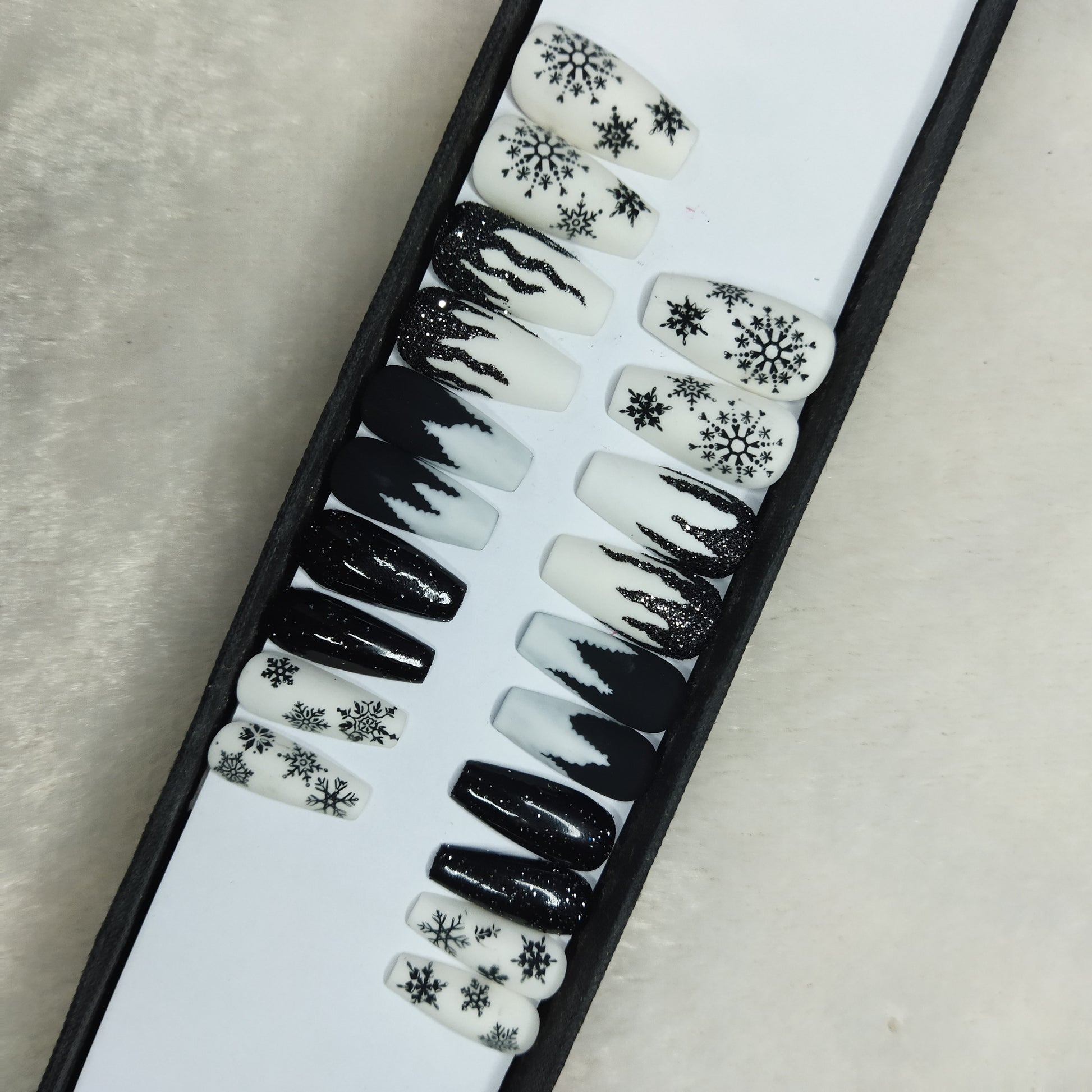 Christmas Collection : Glossy Black Snowflakes Press on Nails Set