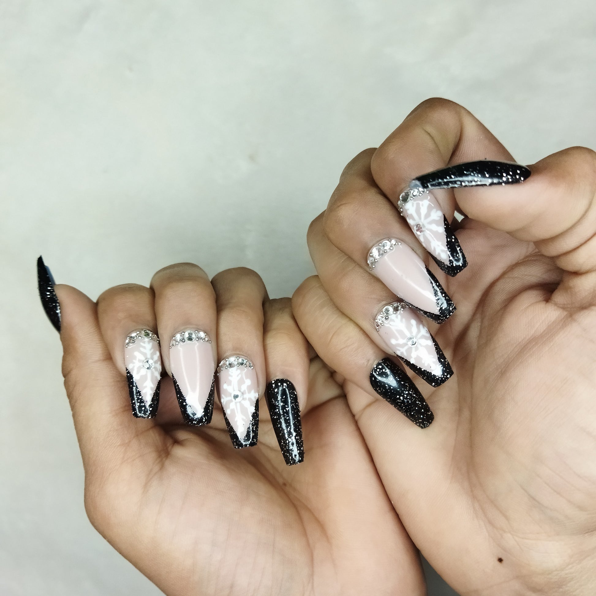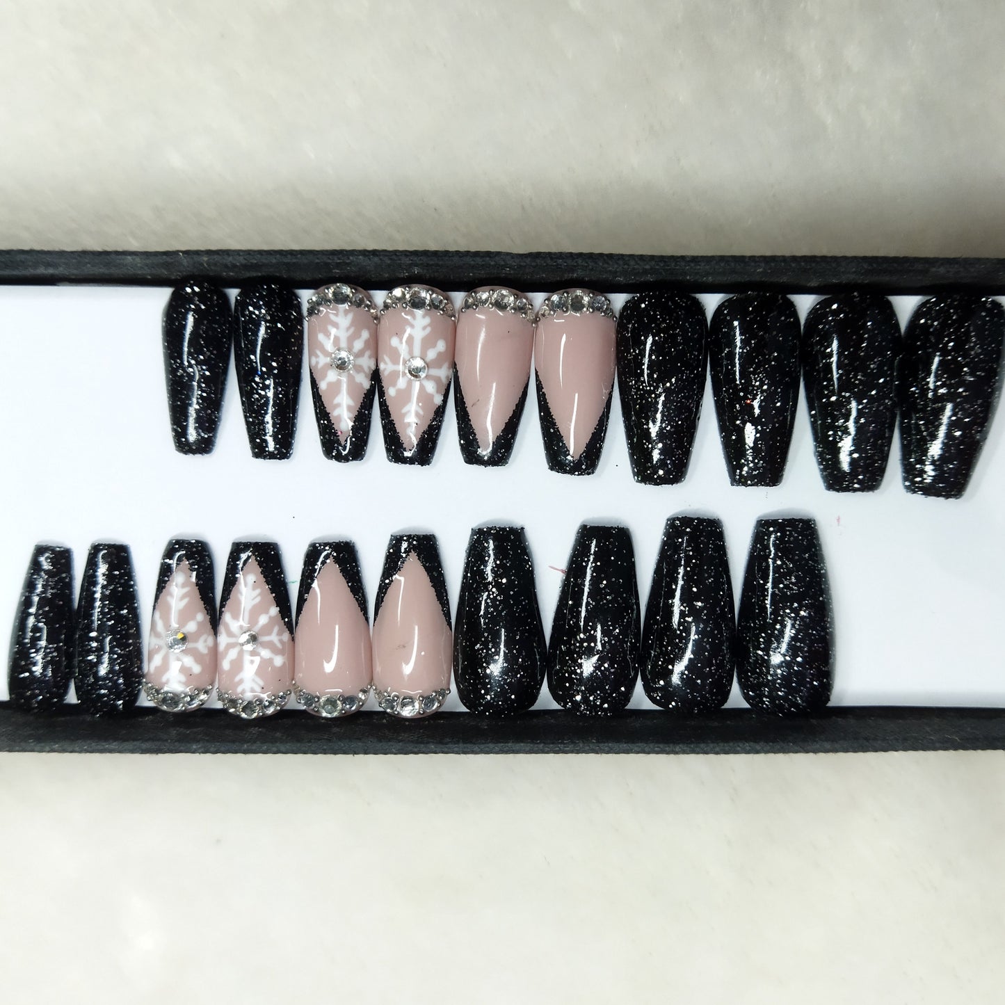 Christmas Collection : Glossy Black Glitter Studded Press on Nails Set
