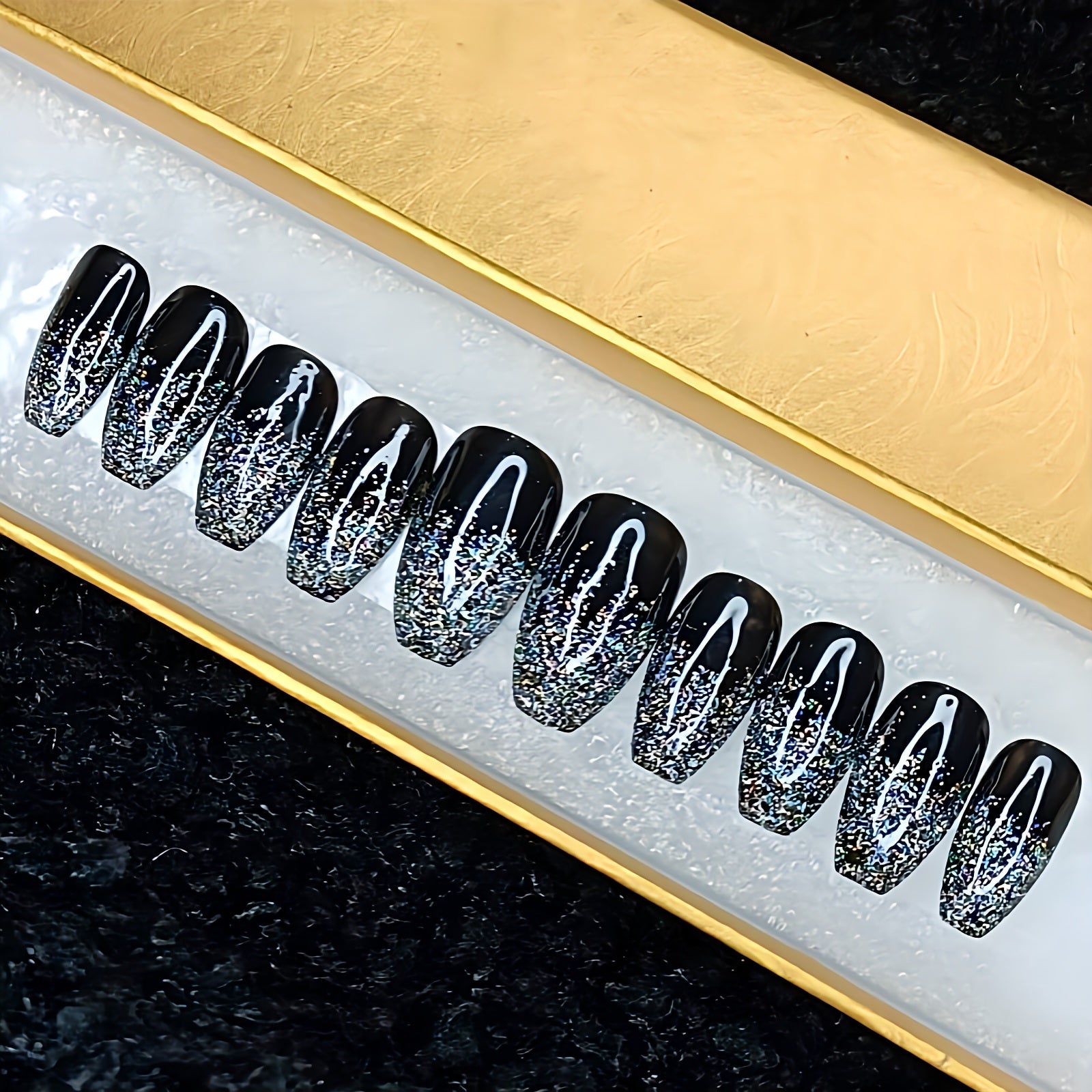 Glossy Black Glitter Ombre Press on Fake Nails // tns891