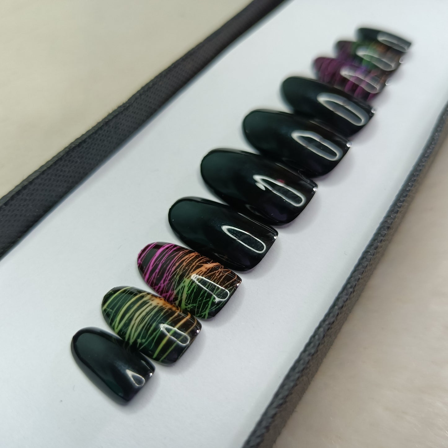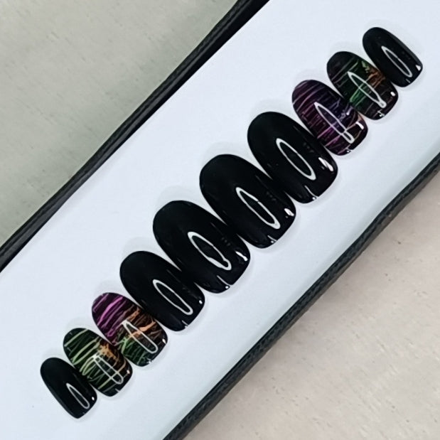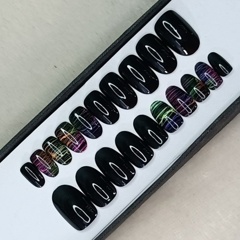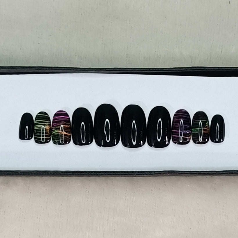Glossy Black Neon Lines Press on Nails Set