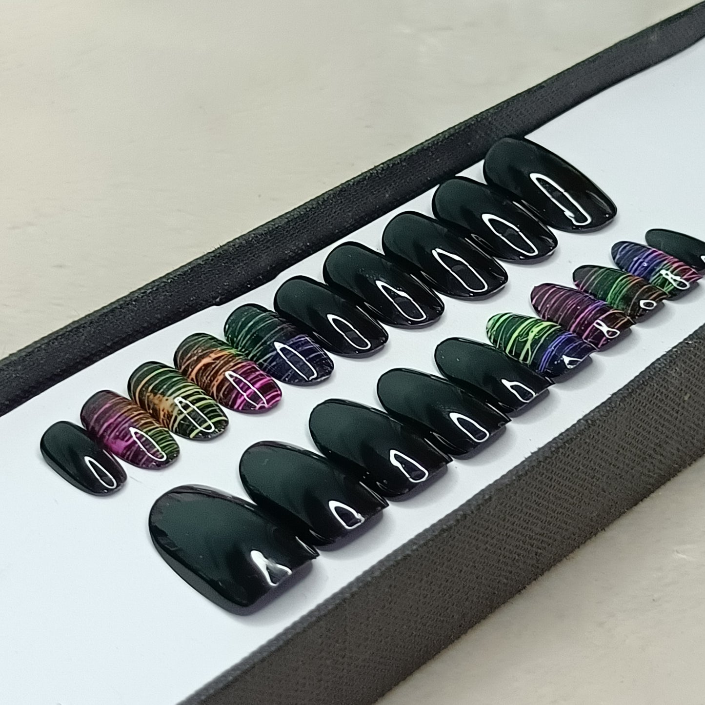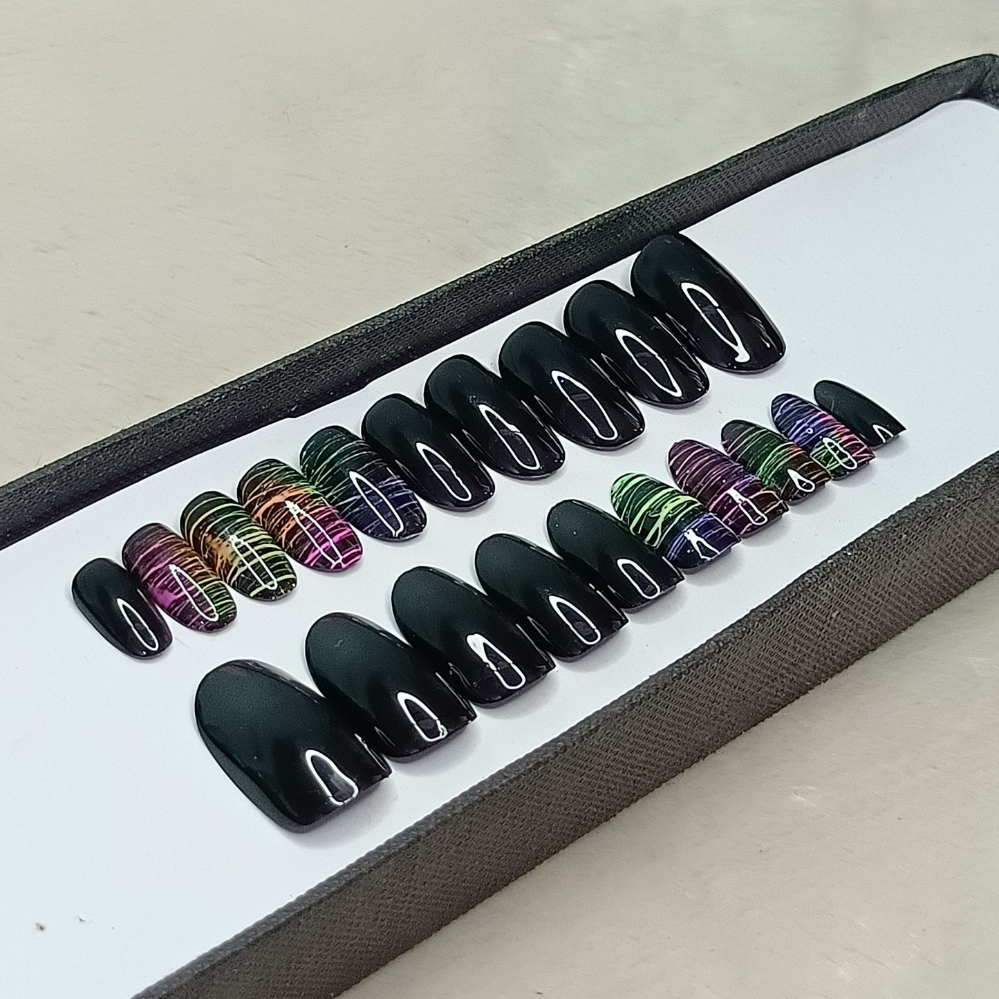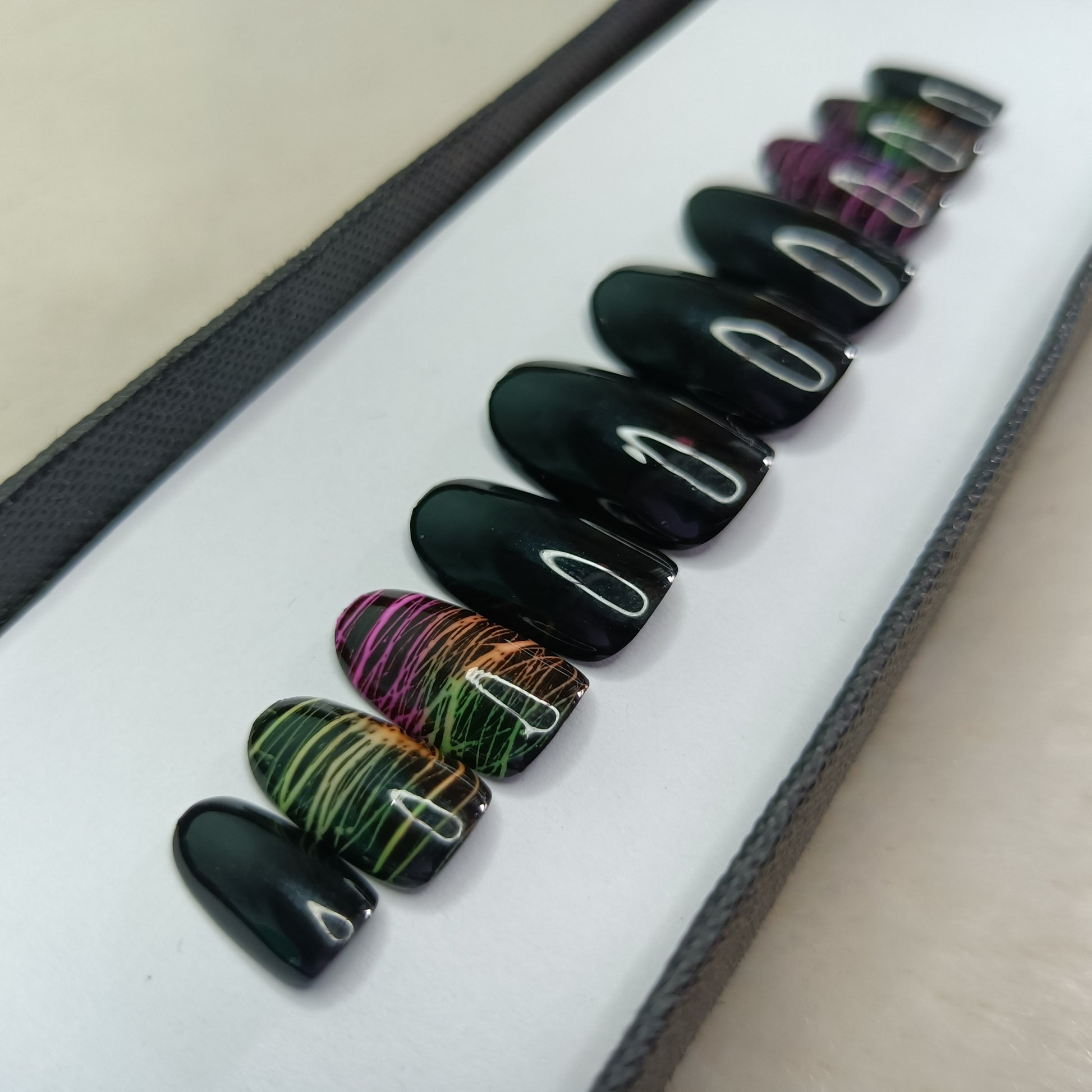 Glossy Black Neon Lines Press on Nails Set