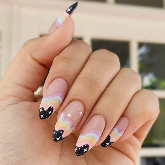 Glossy Colorful Rainbow Press on Fake Artificial Nails / tns643