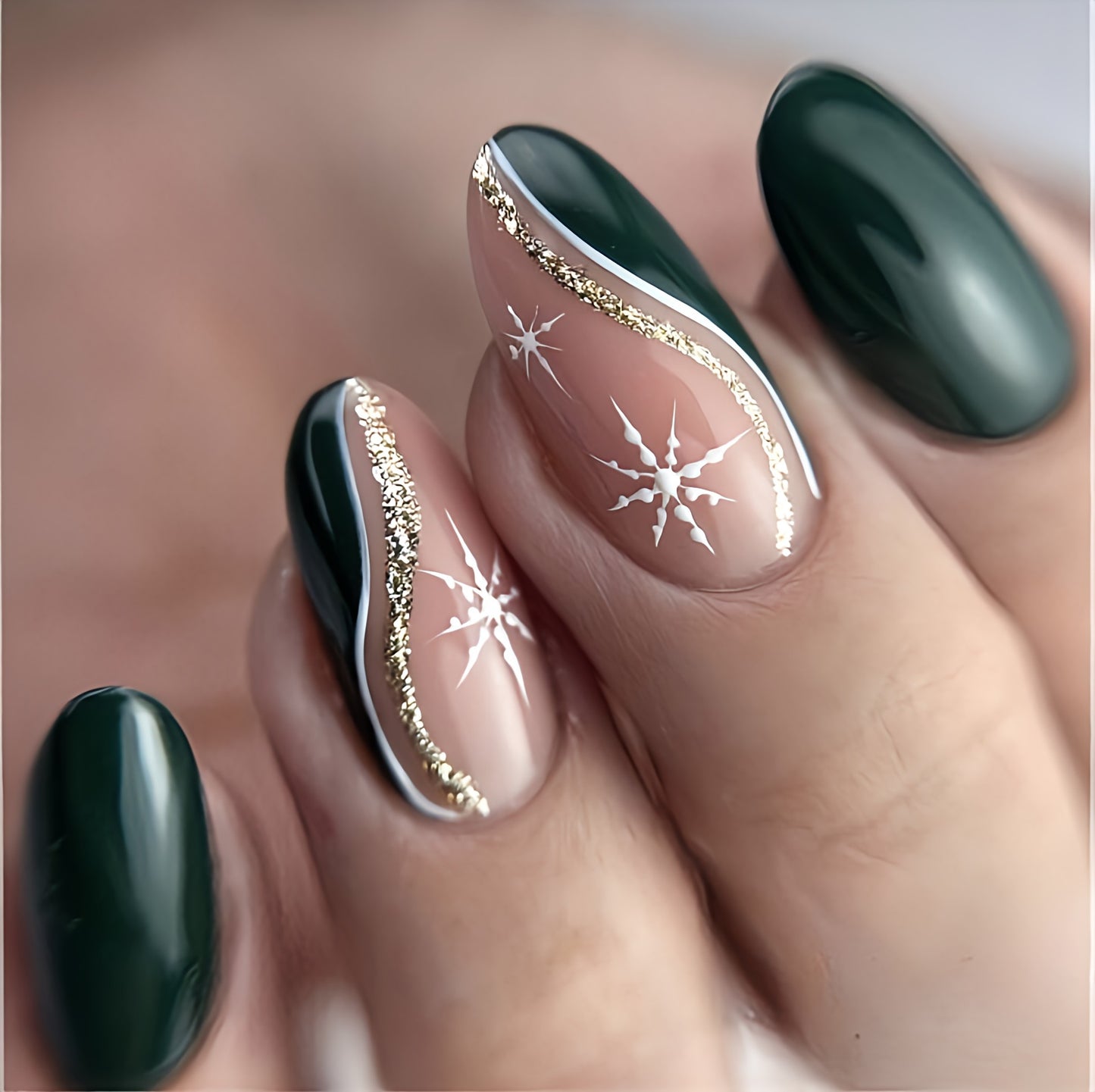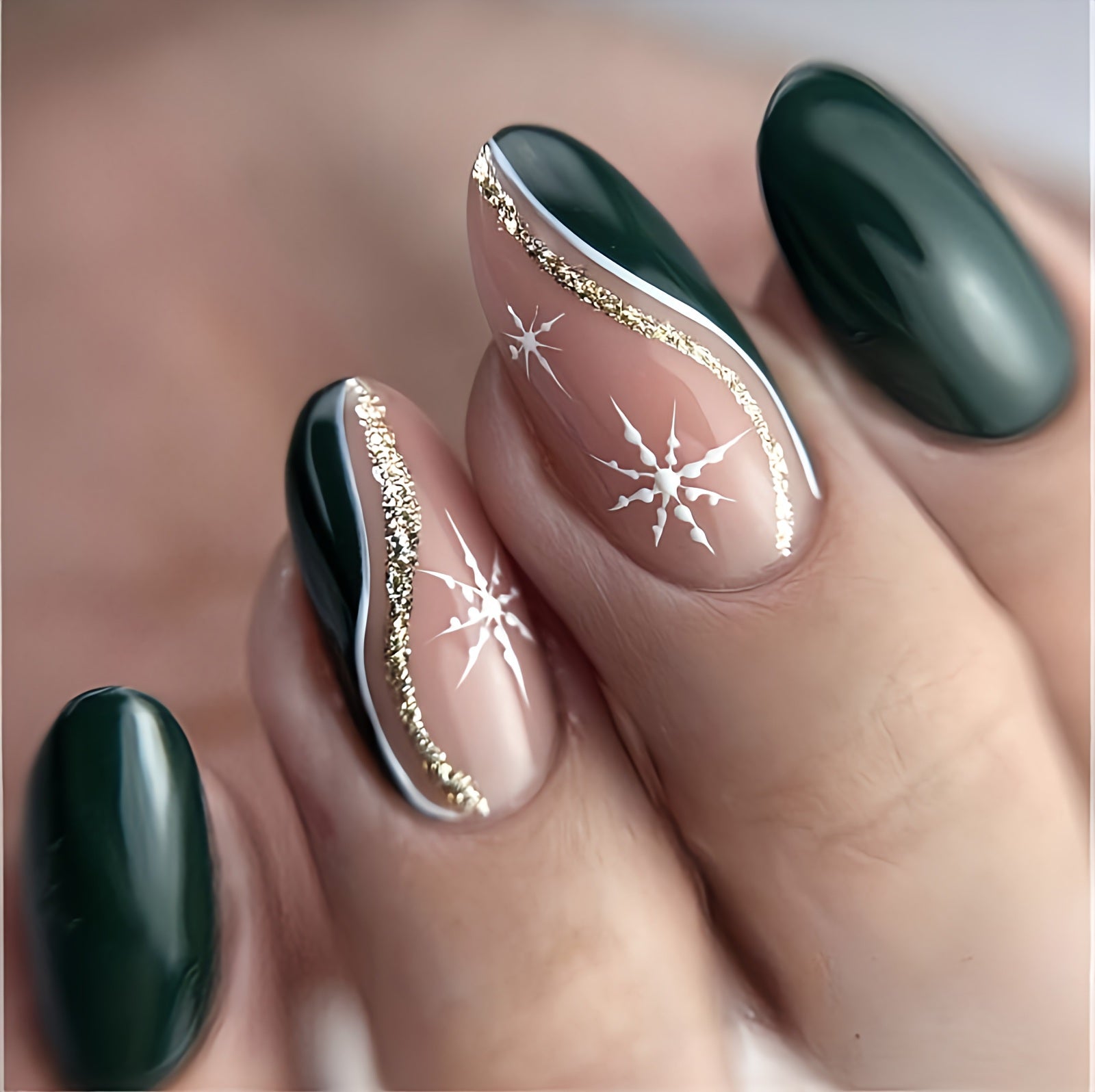Glossy Dark Green Swirls Press on Fake Nails // tns906