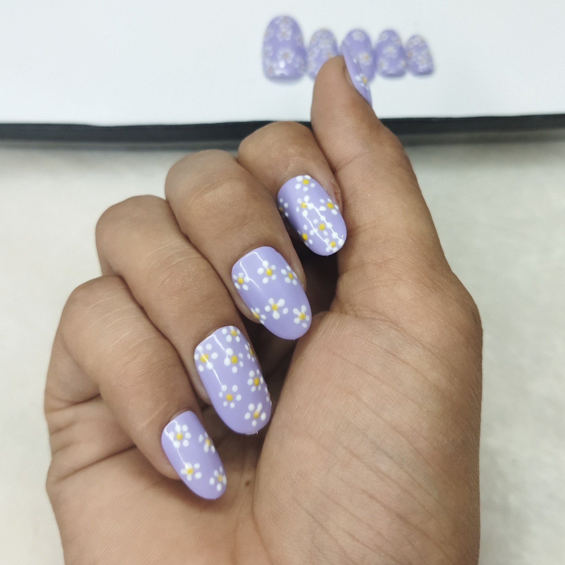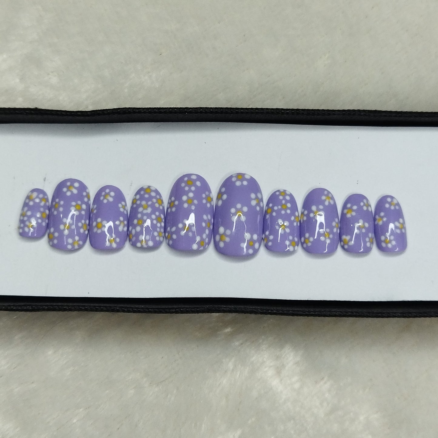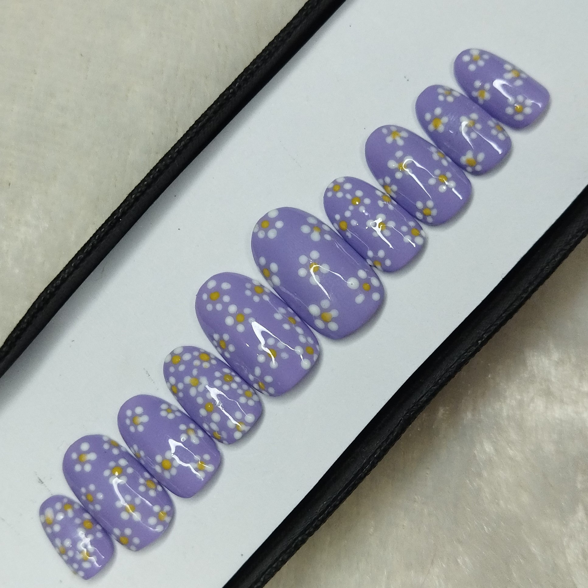 Glossy Lavender Flower Dots Press on Nails Set // 650