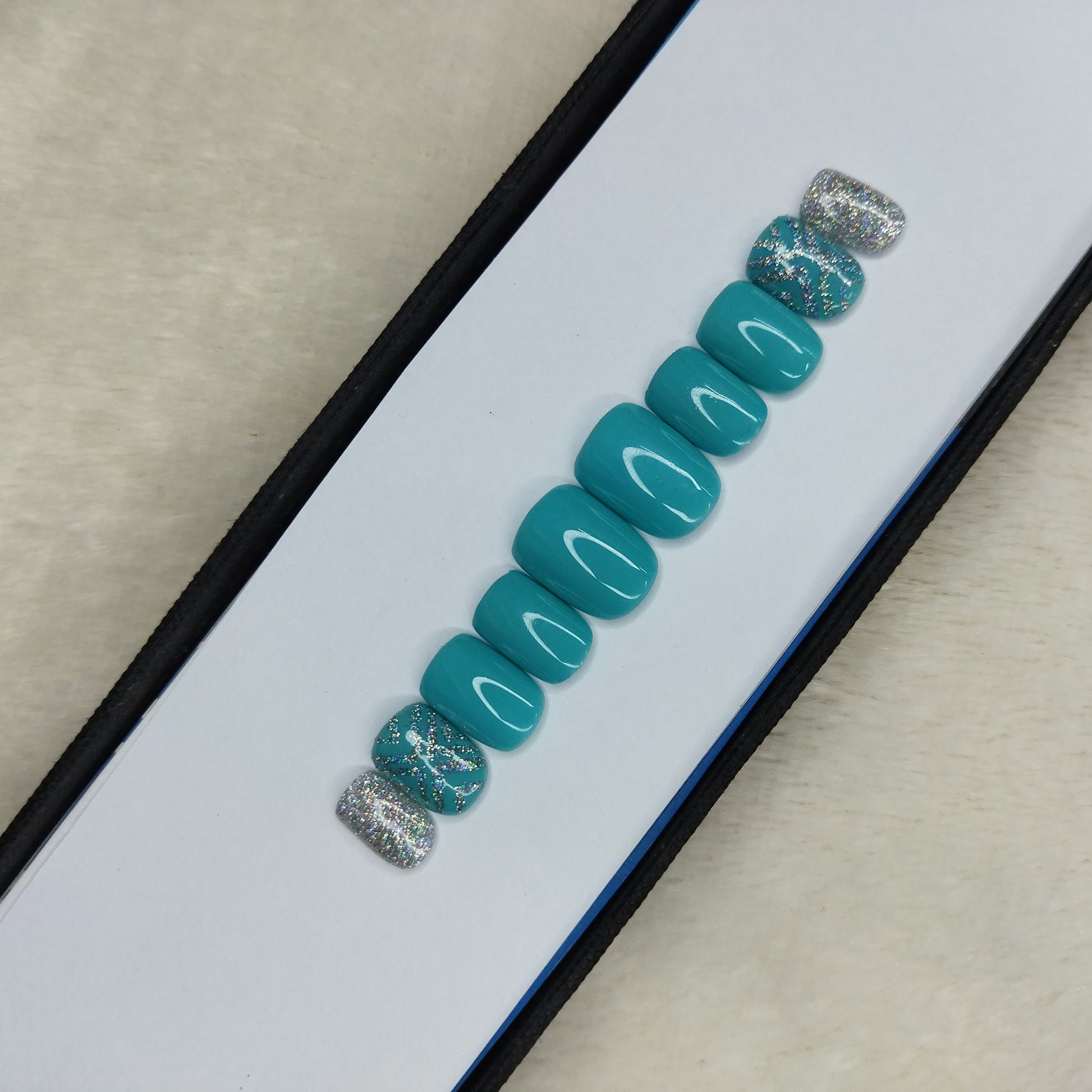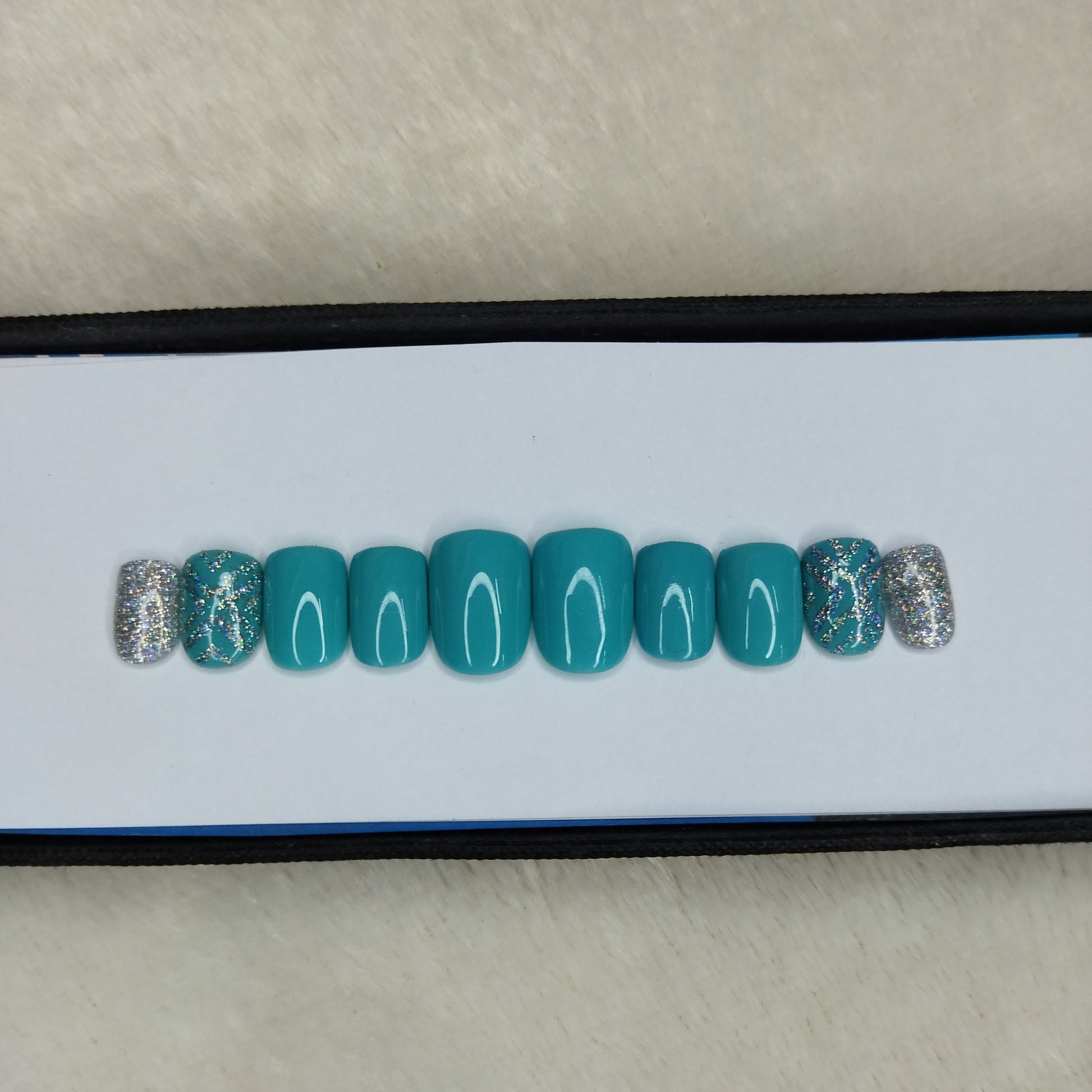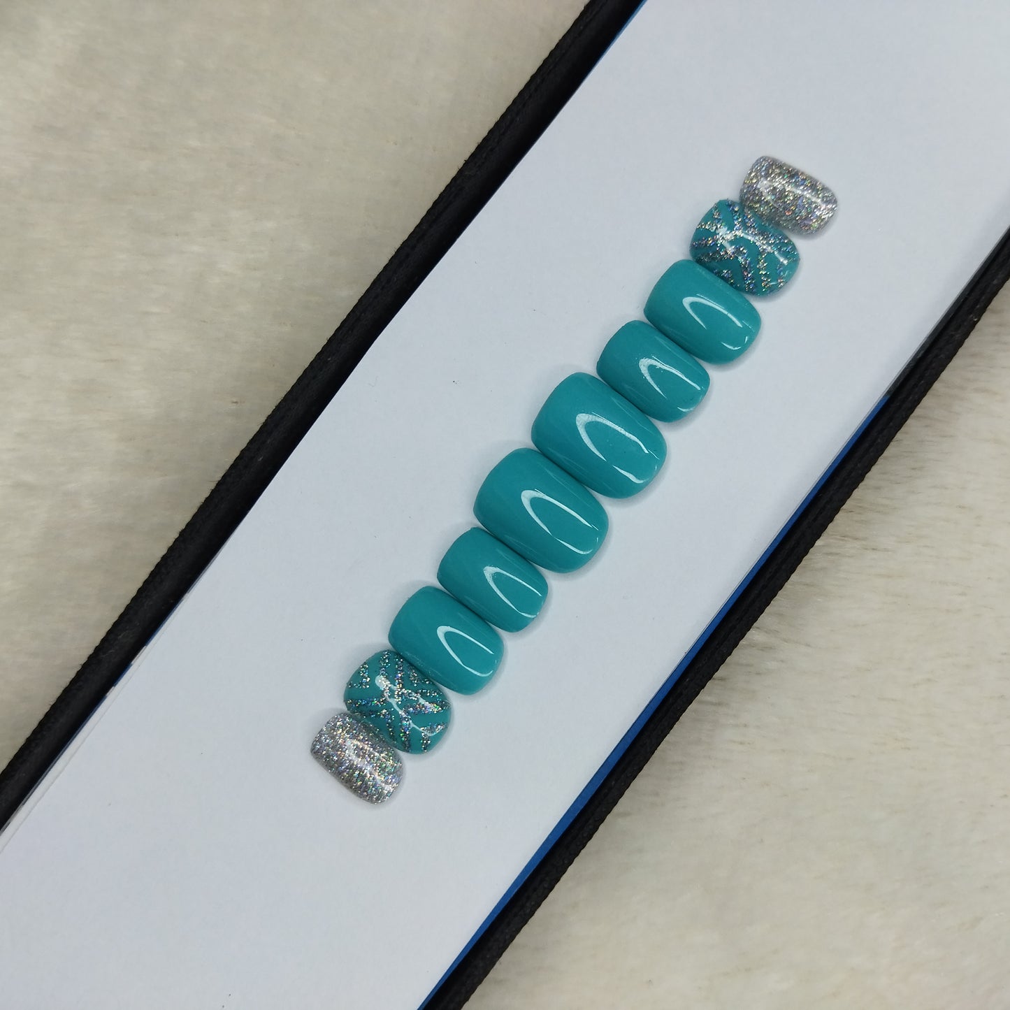 Glossy Light Blue Glitter Mesh Press on Nails Set // 580
