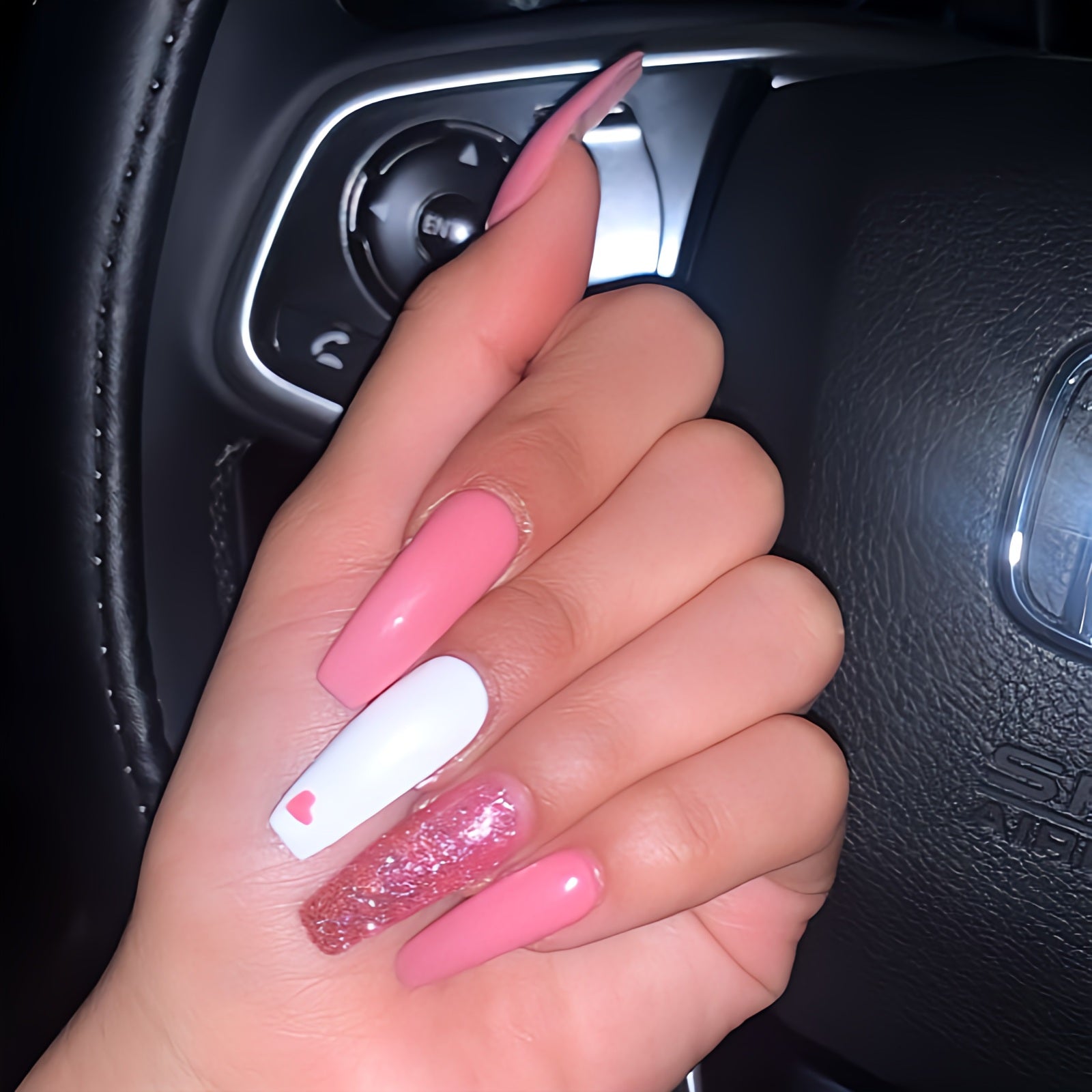 Glossy Light Pink Hearts Press on Fake Artificial Nails / tns1276