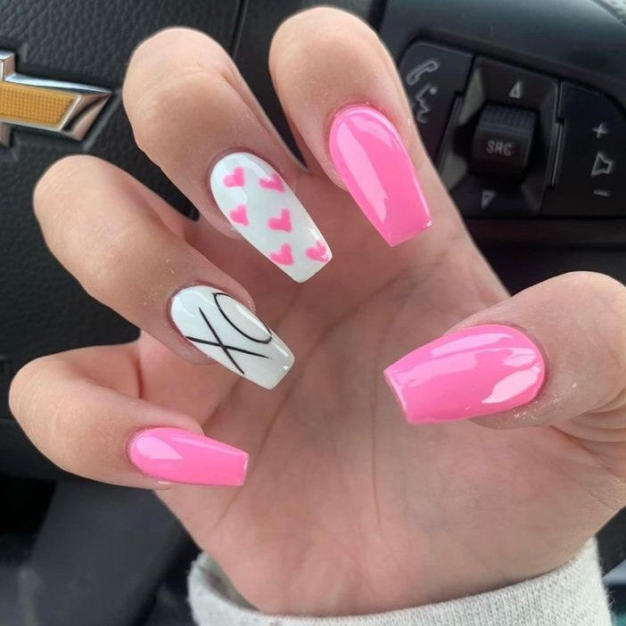 Glossy Light Pink Hearts Press on Fake Artificial Nails / tns797