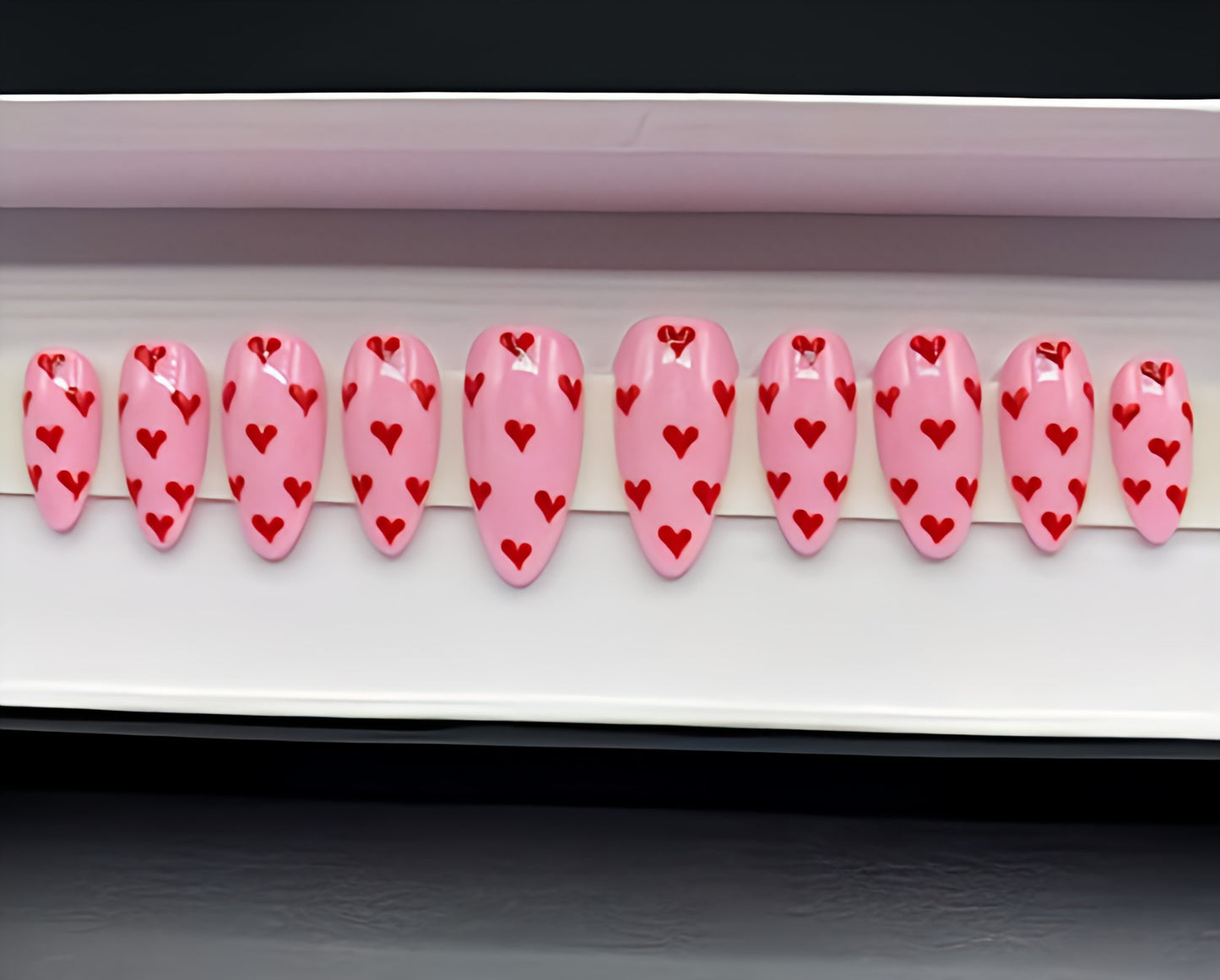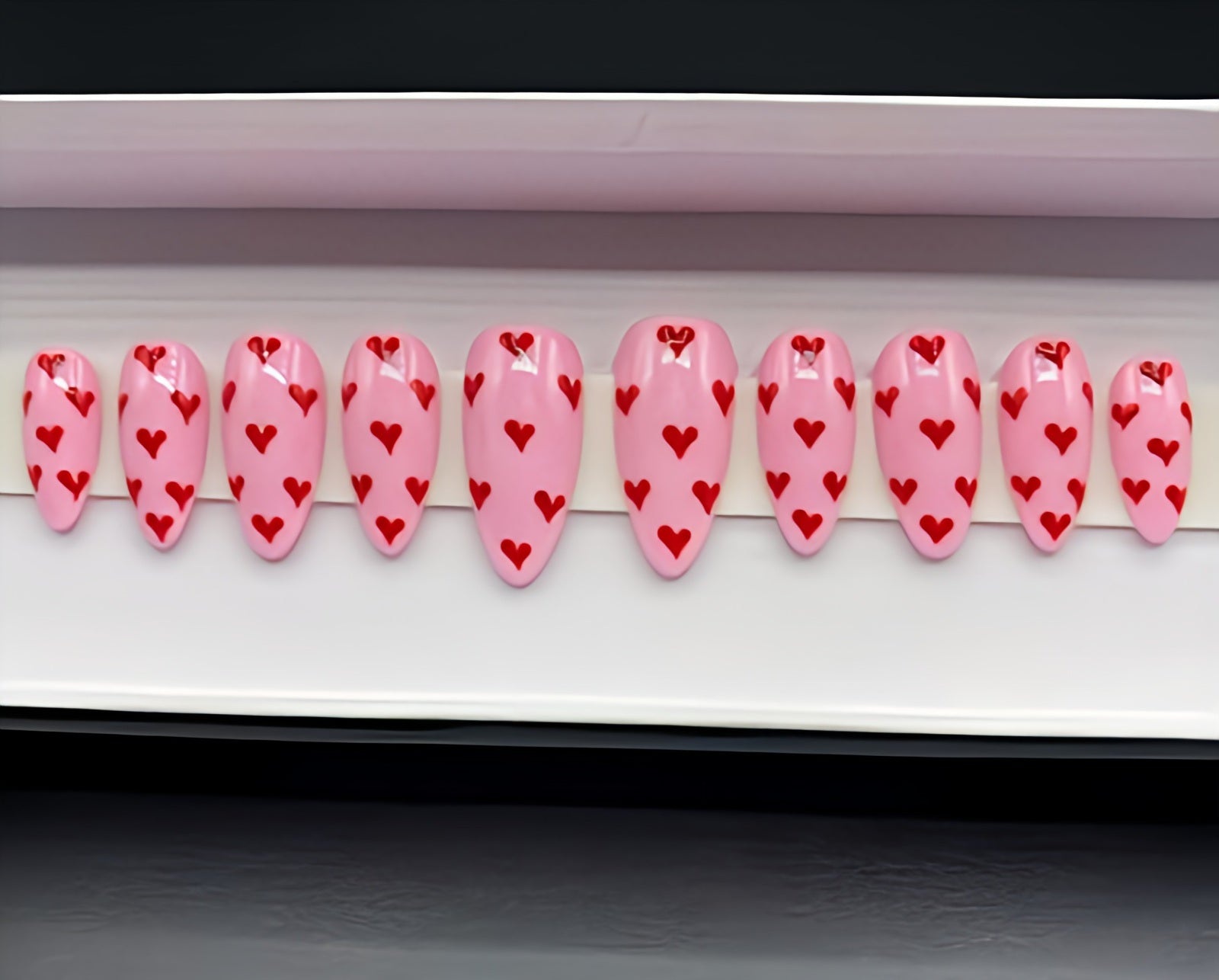 Glossy Light Pink Hearts Press on Fake Nails // tns943