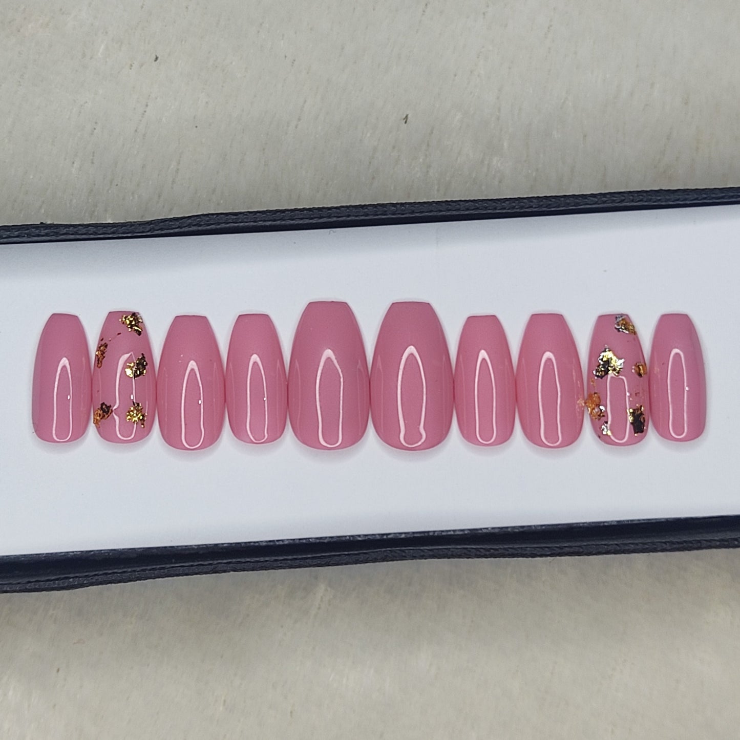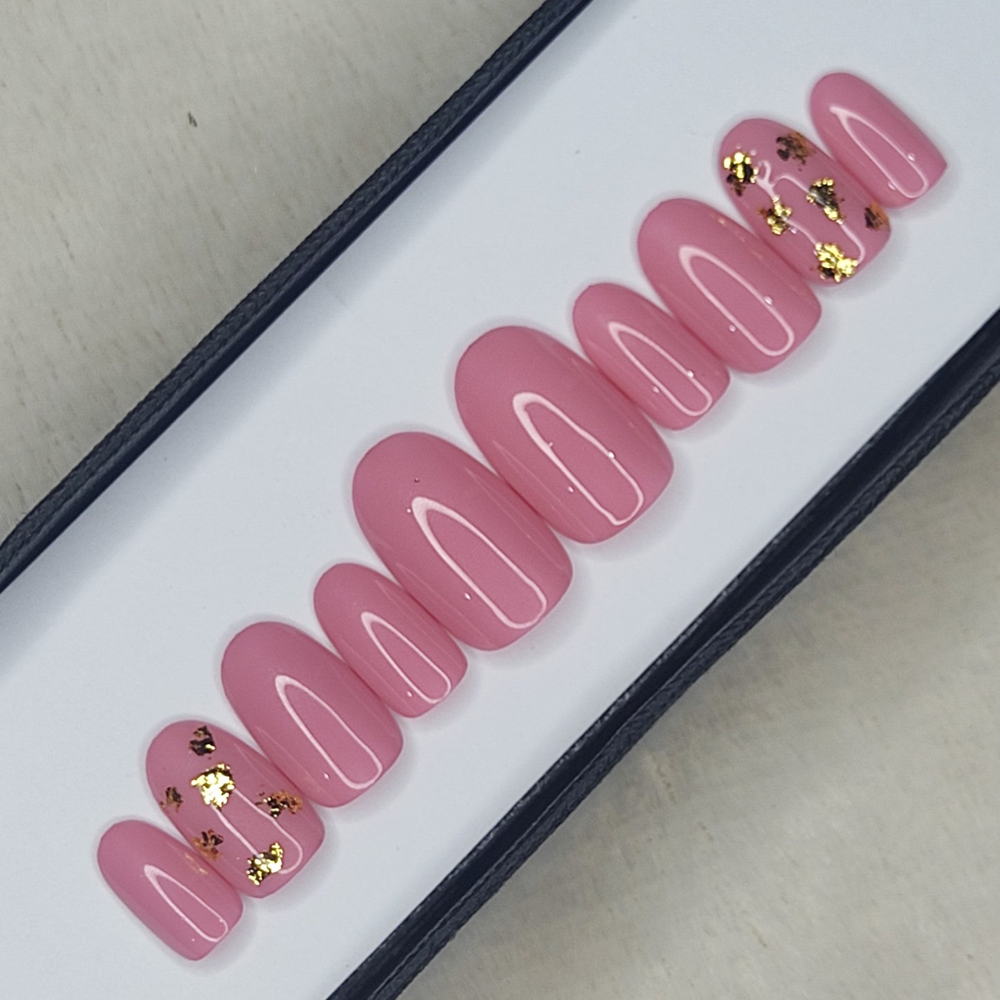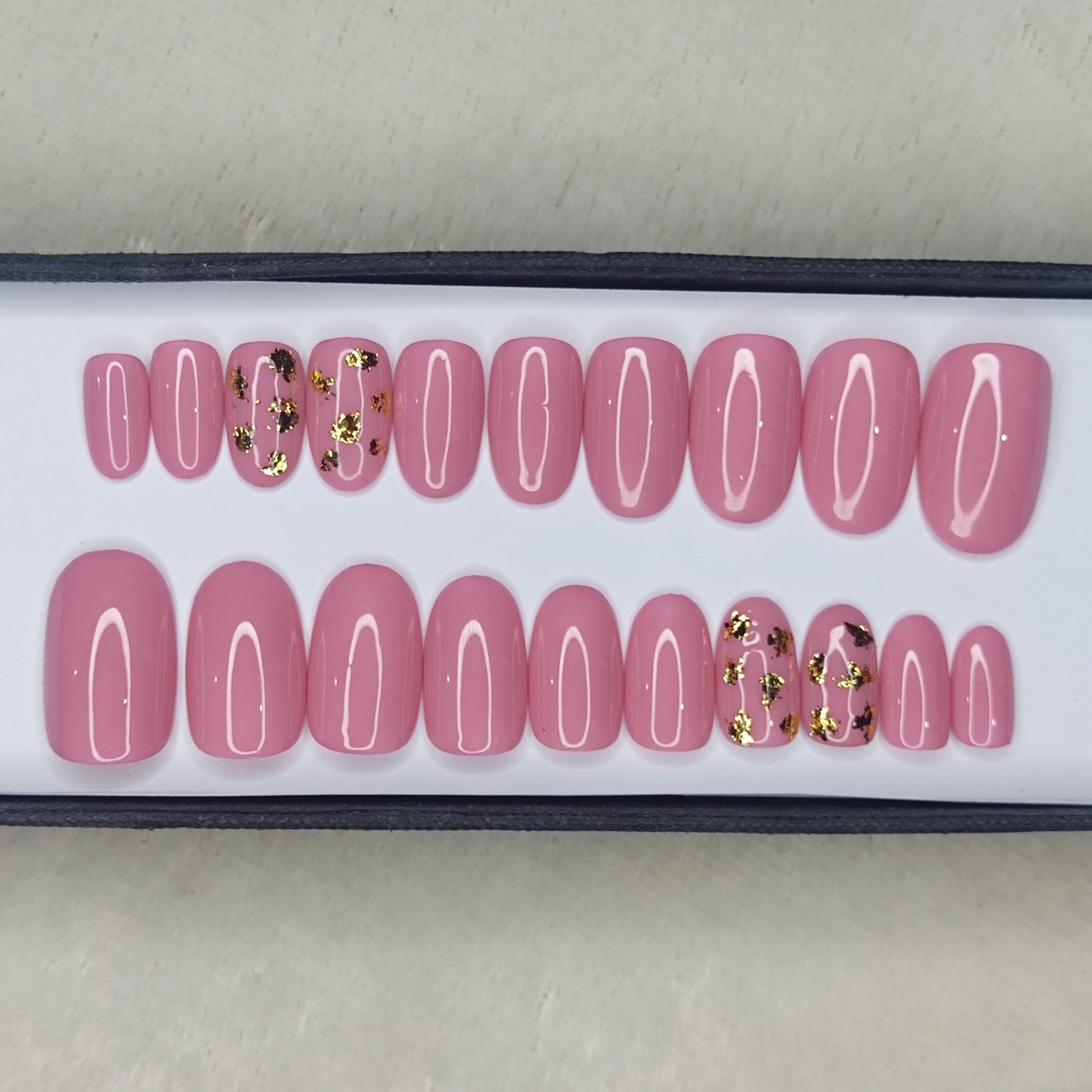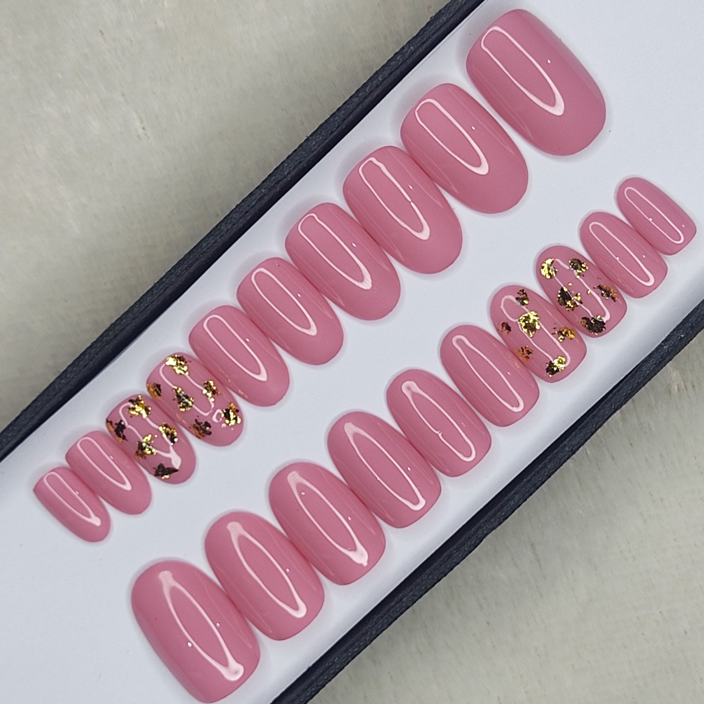 Glossy Light Pink with foil Press on Nails Set //999