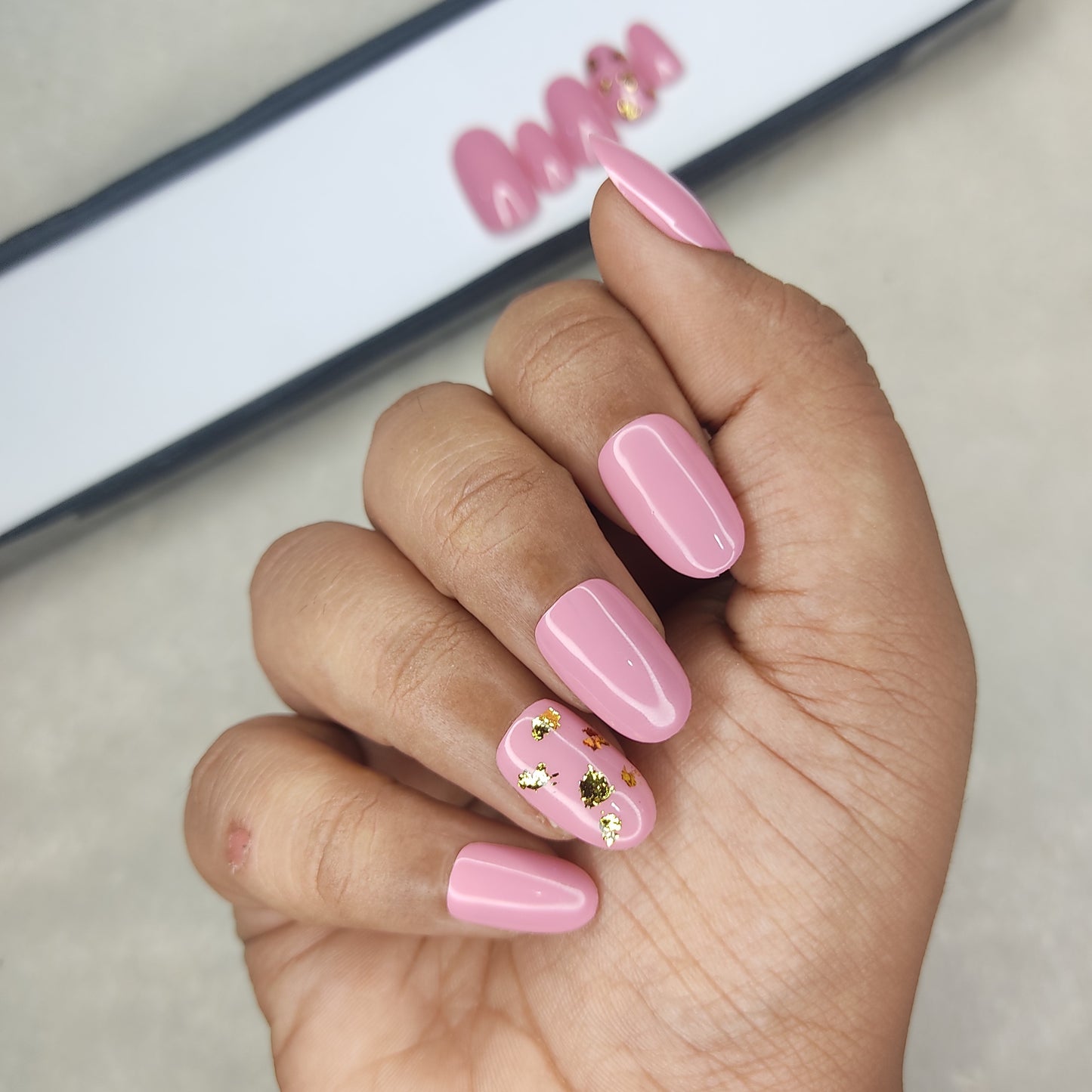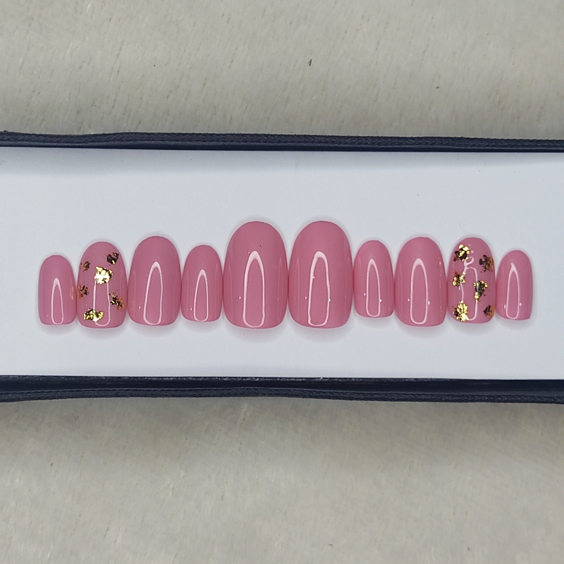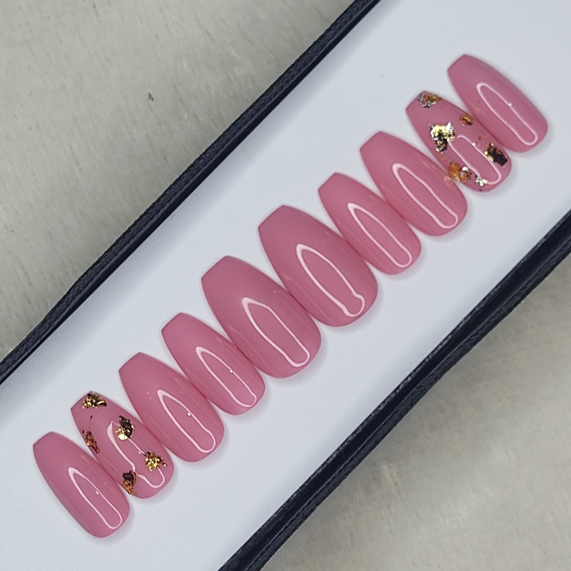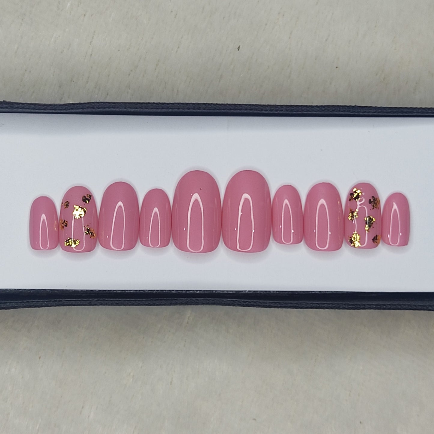 Glossy Light Pink with foil Press on Nails Set //999