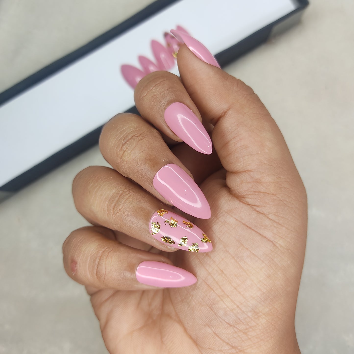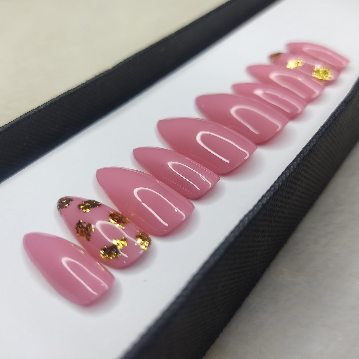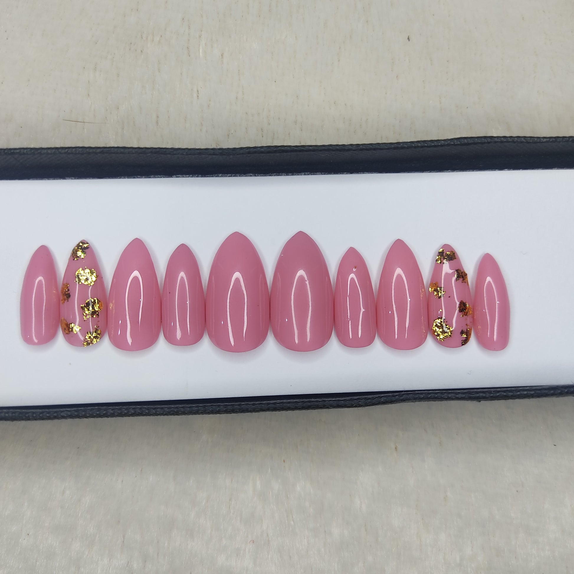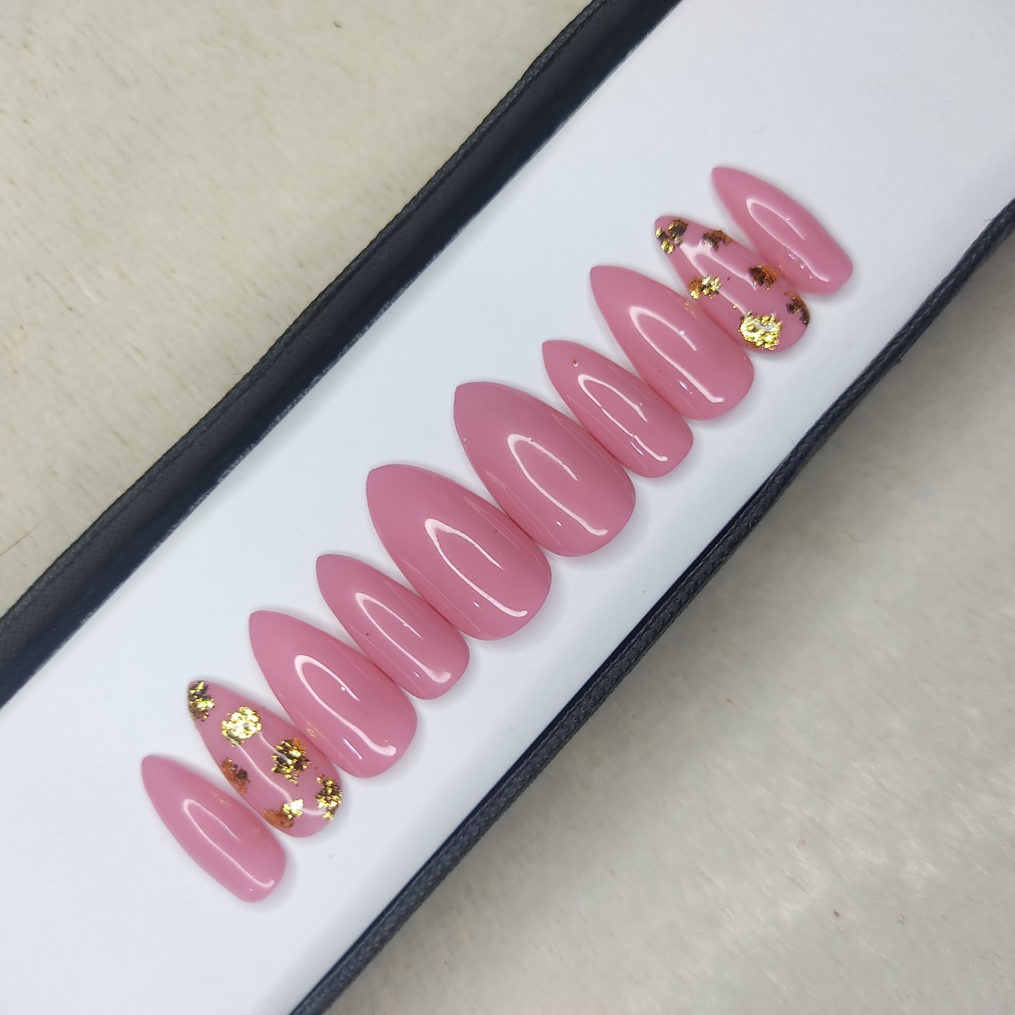 Glossy Light Pink with foil Press on Nails Set //999