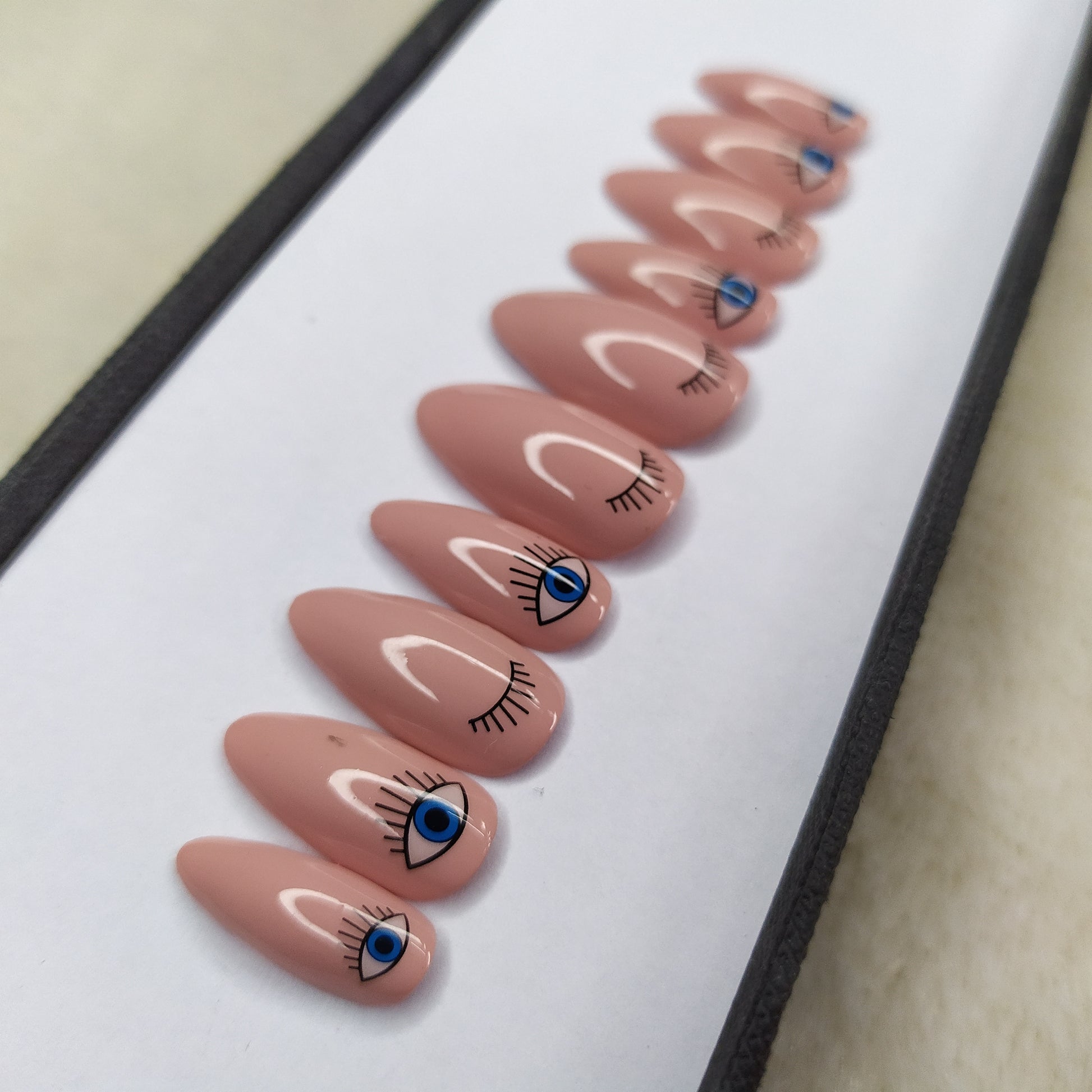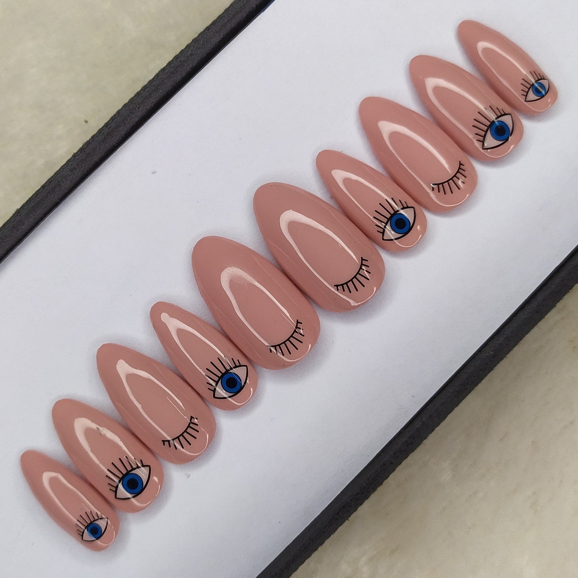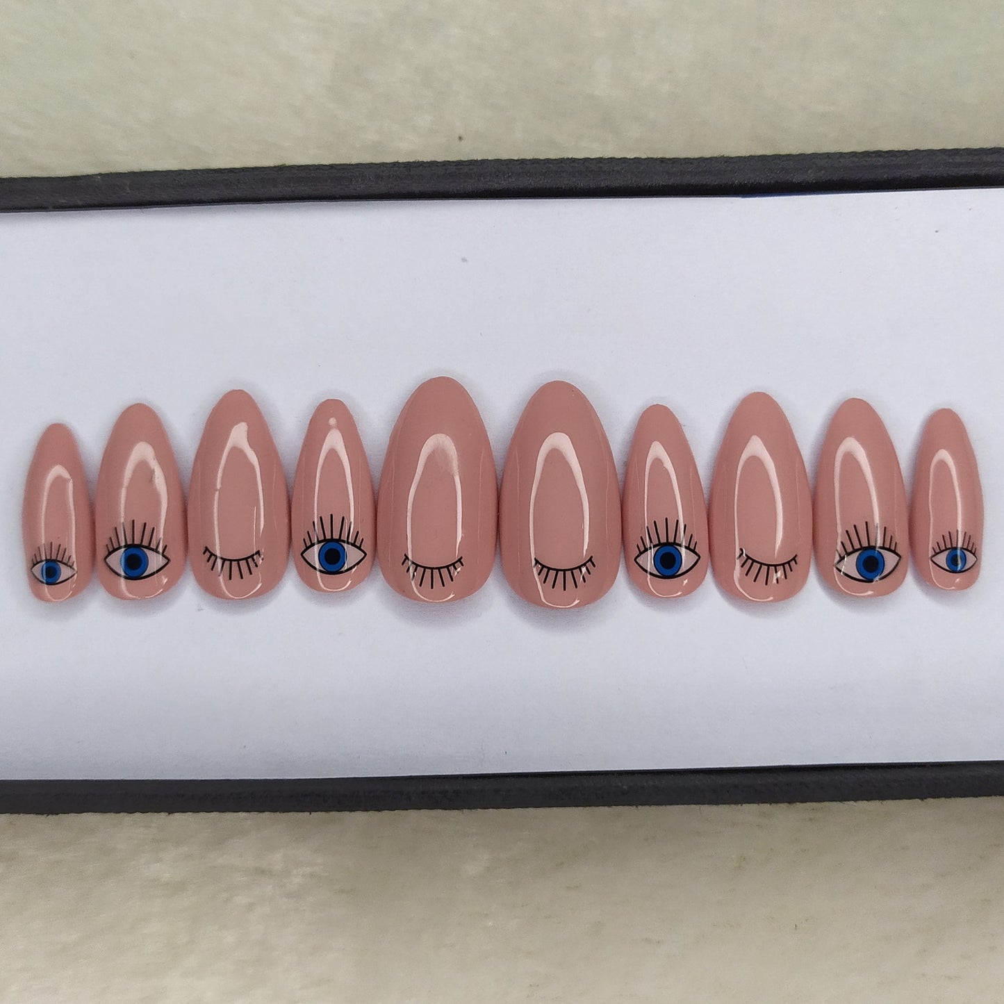Glossy Nude Evil Eye Press on Nails Set // 553