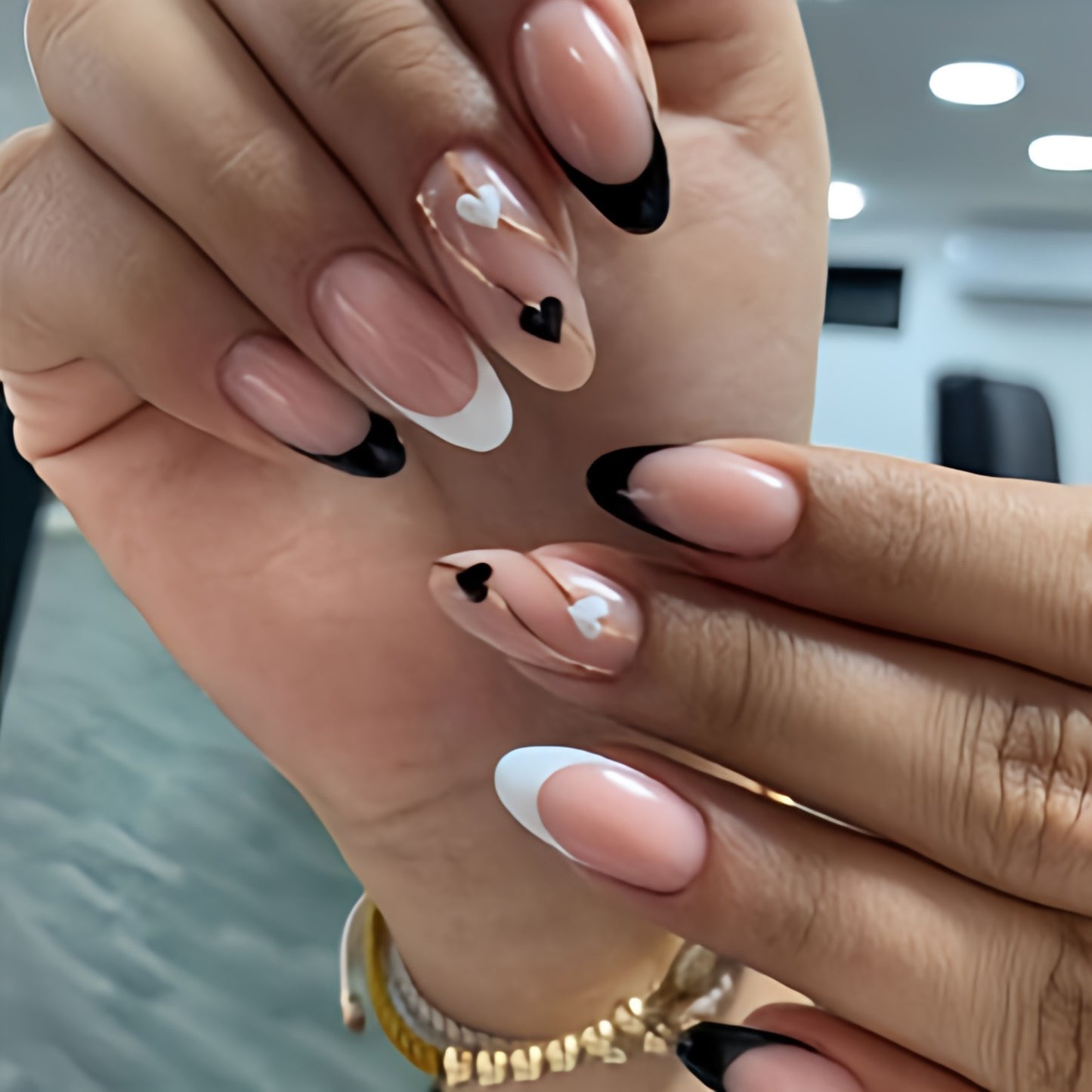 Glossy Nude French Artificial Press on Fake Nails Set in Almond- RTS (Pack of 24 nails)