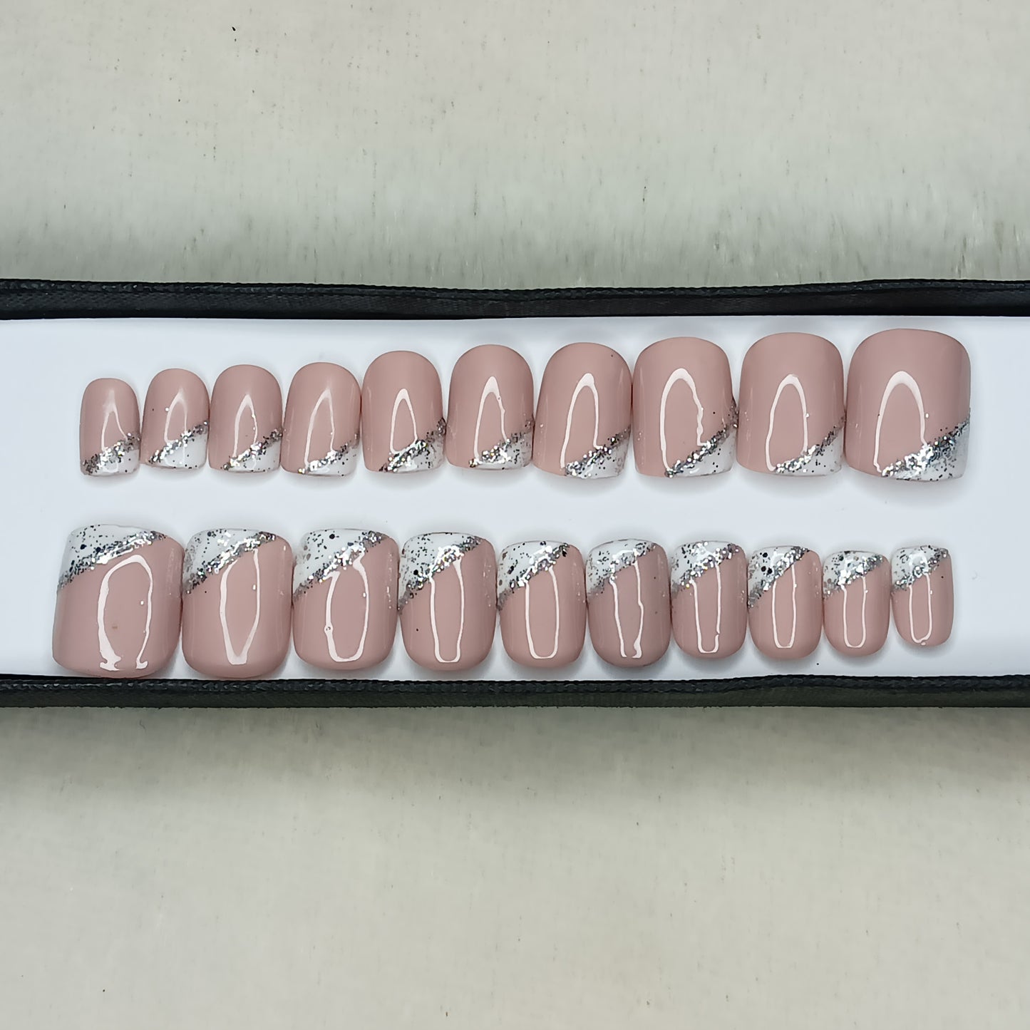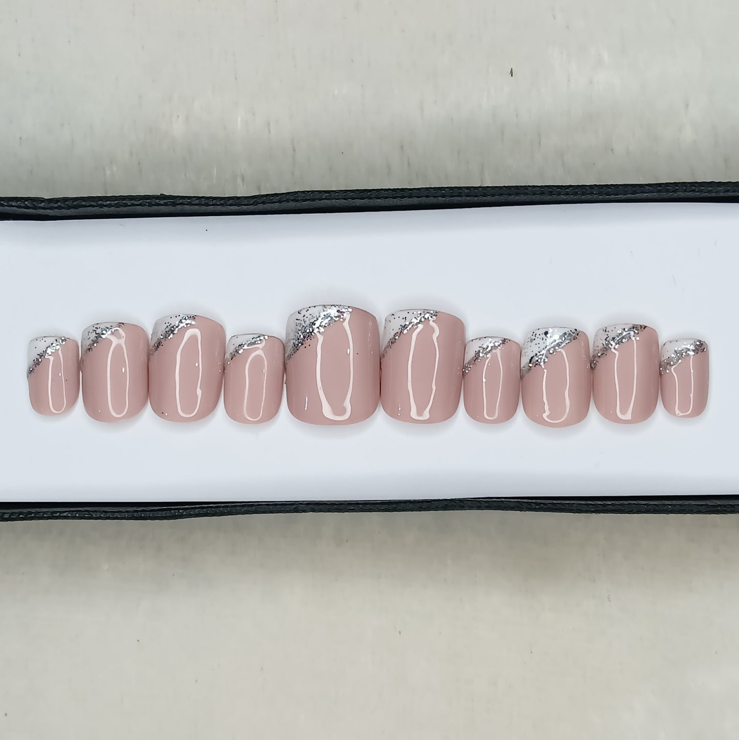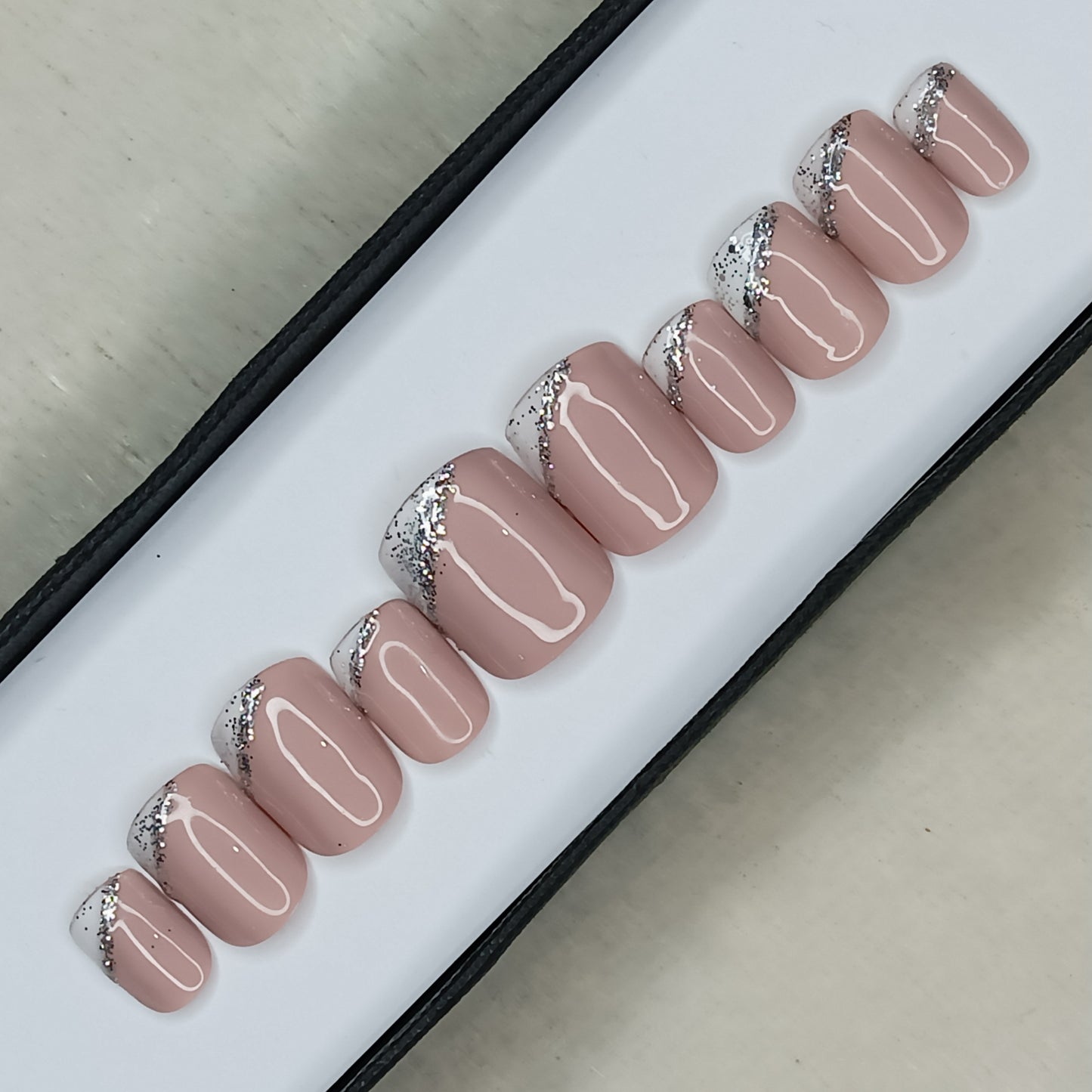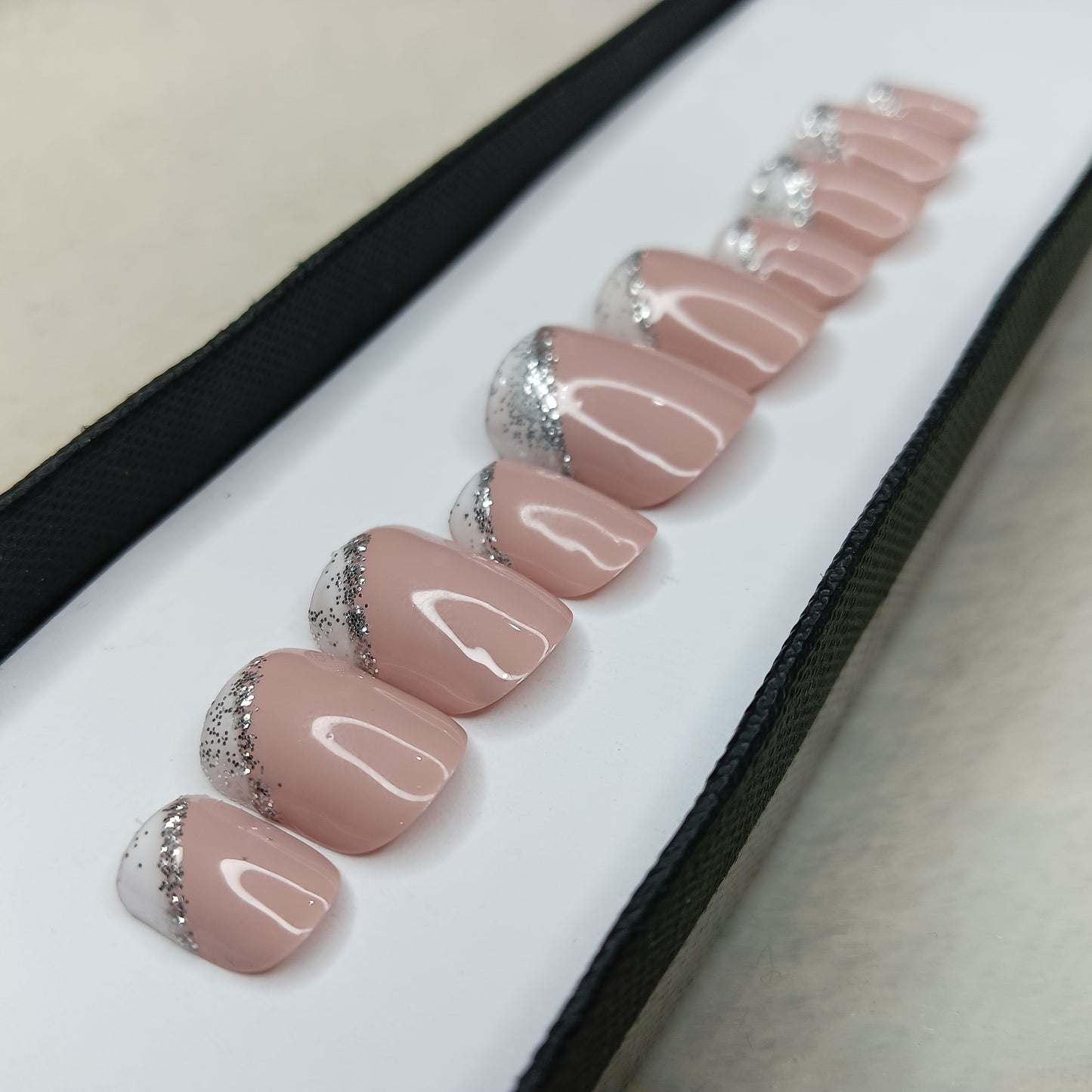 Glossy Nude Glitter Side French Press on Nails Set //937