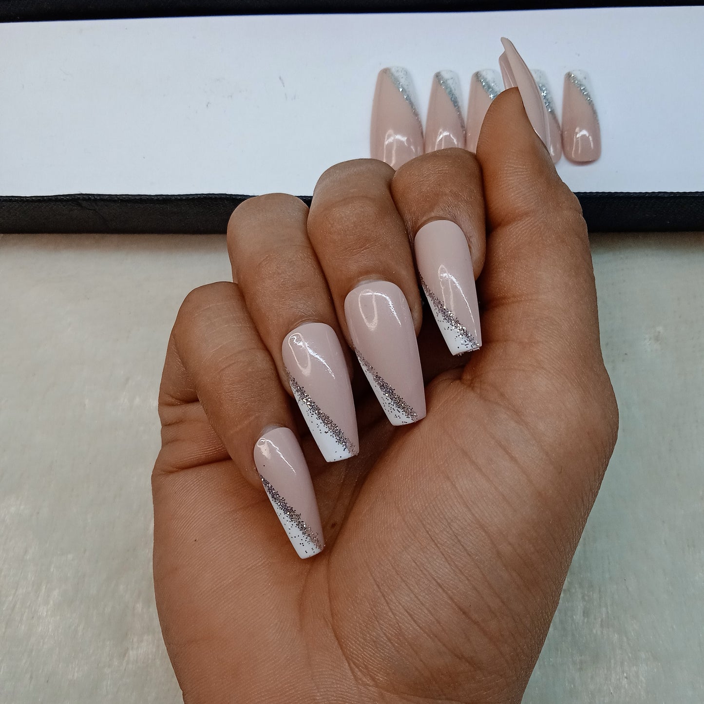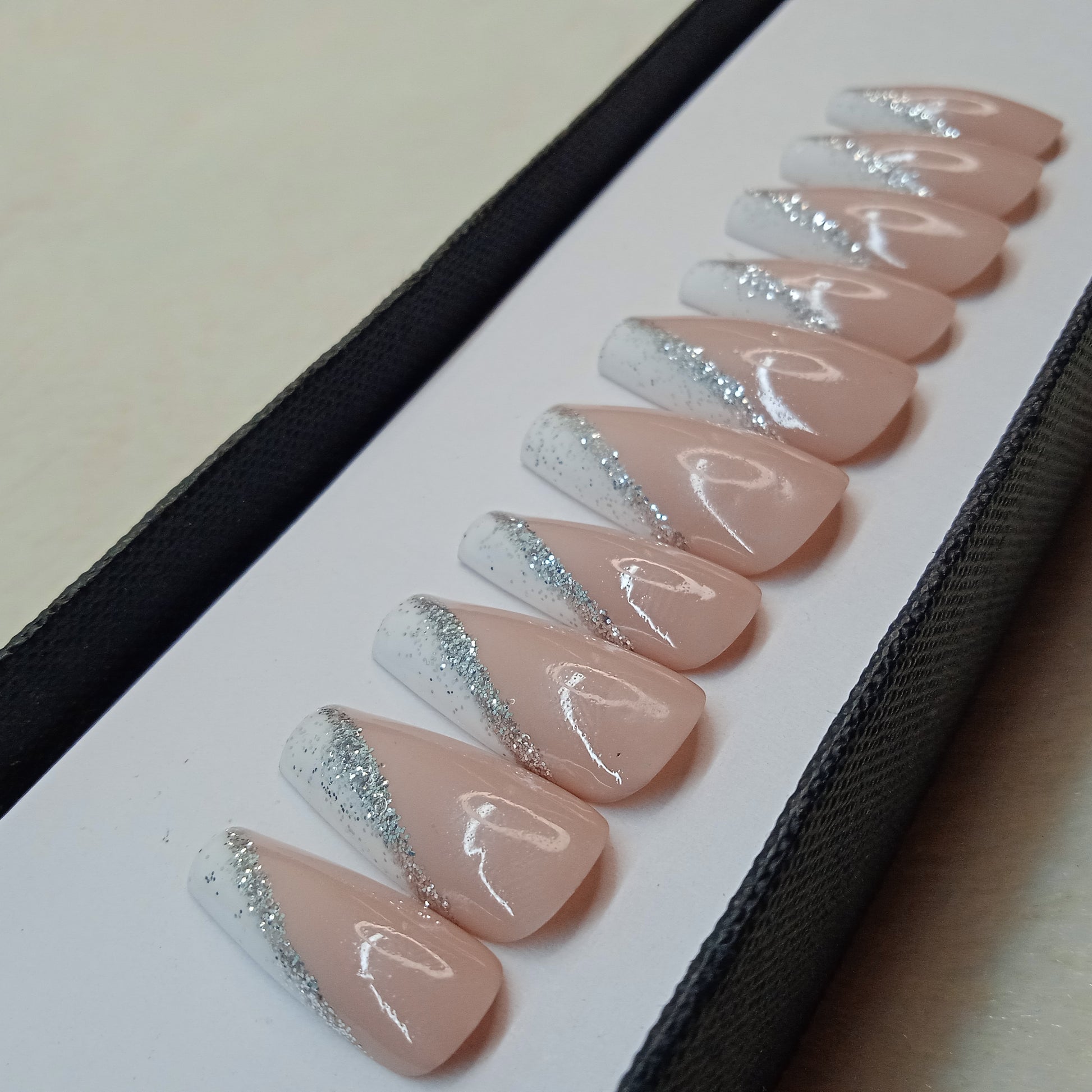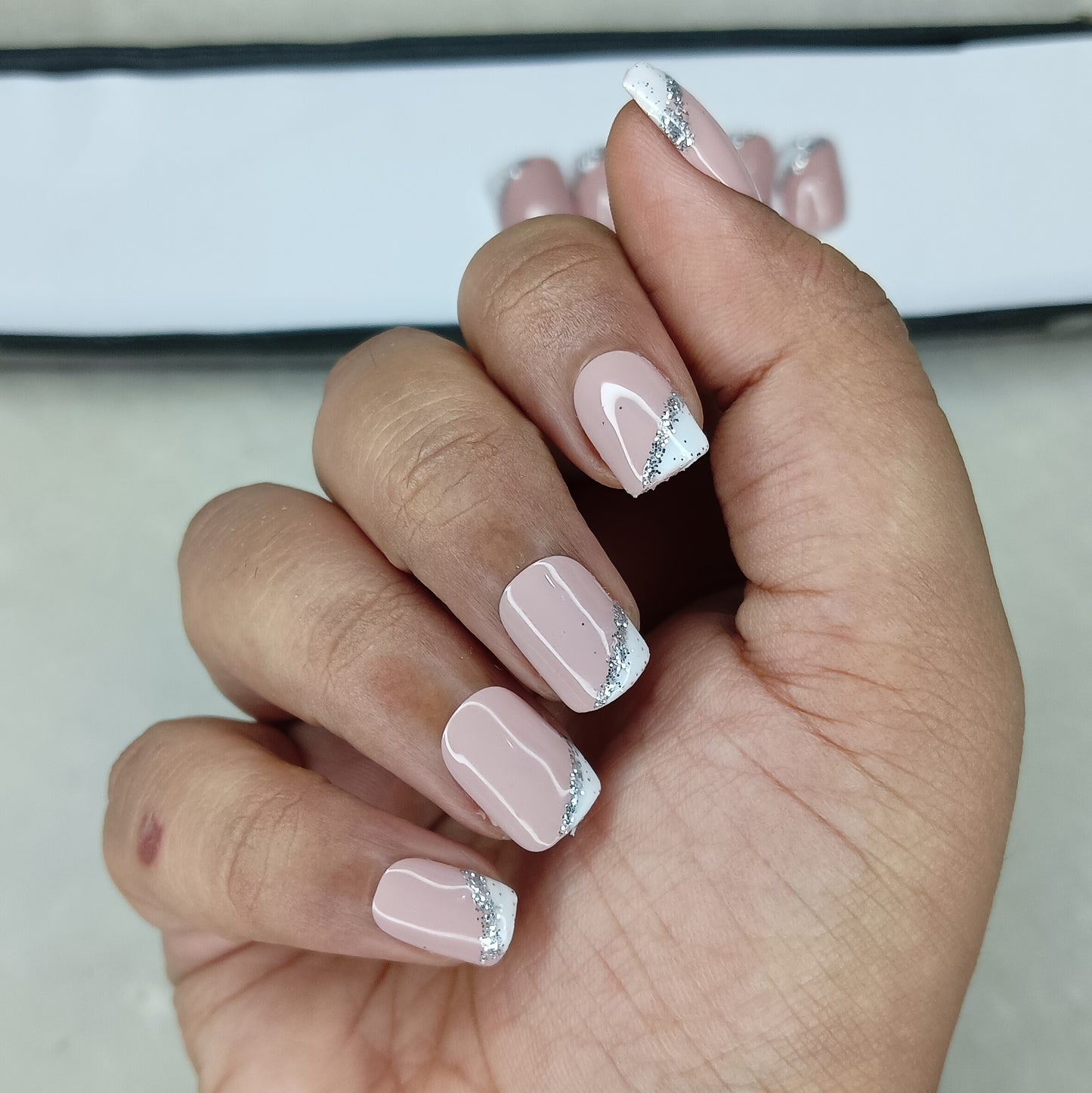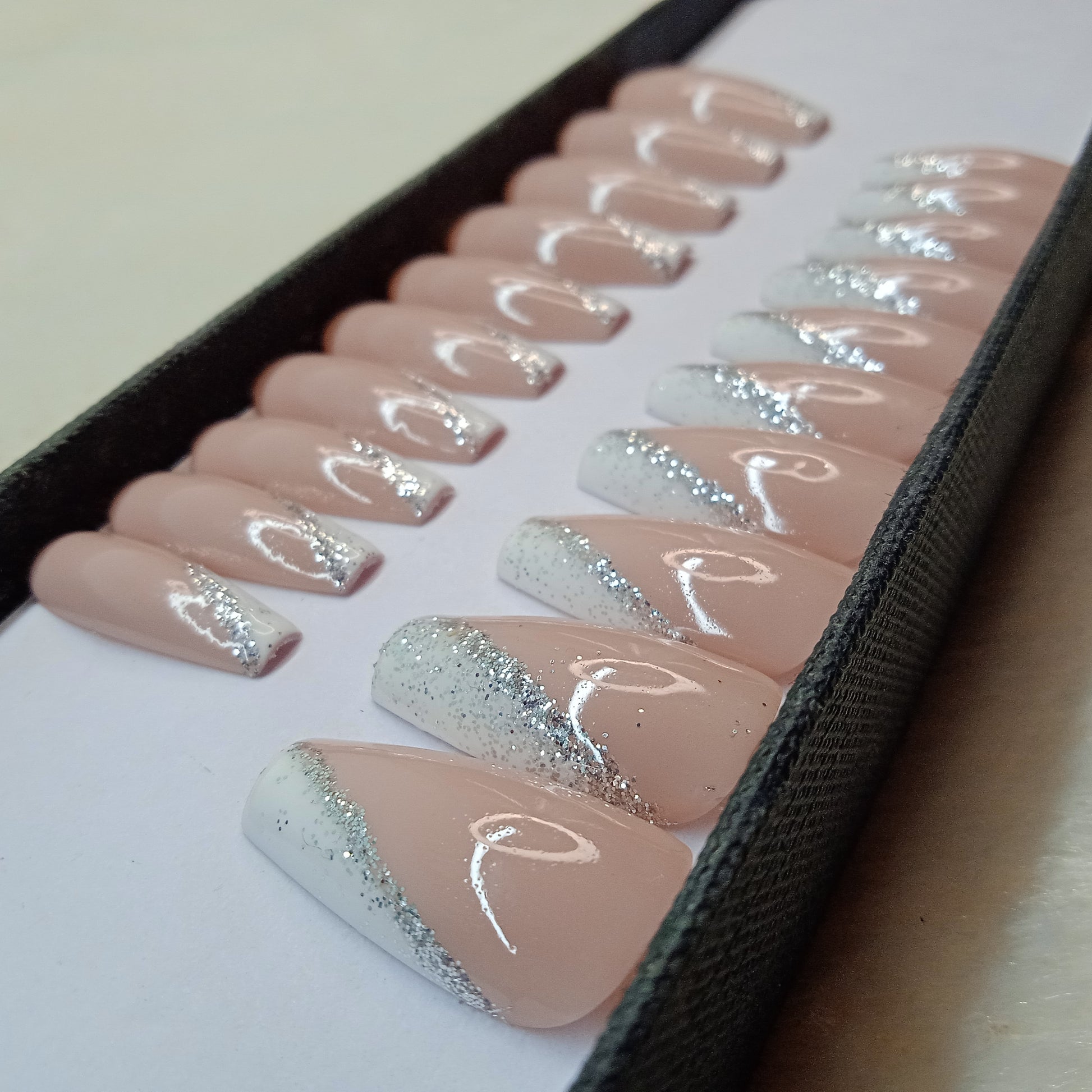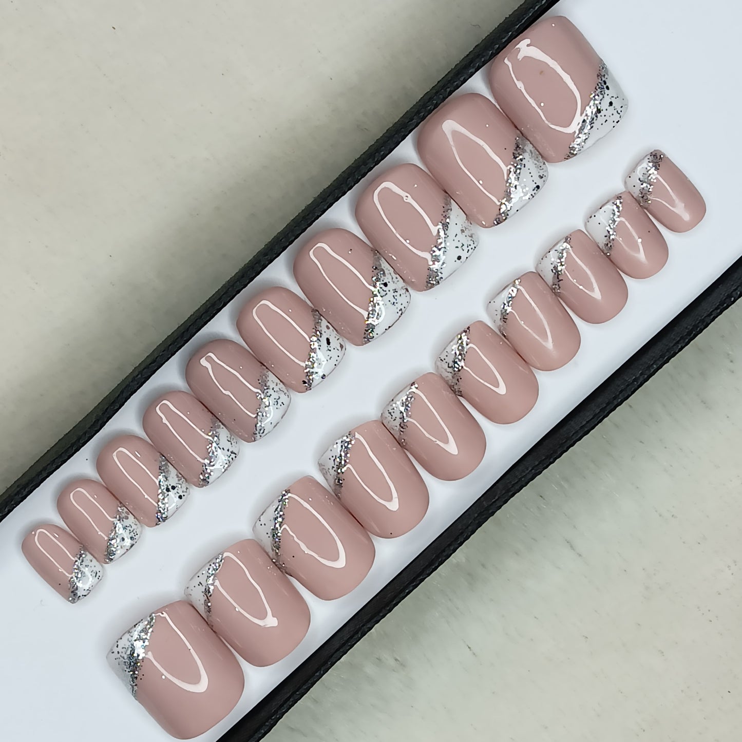 Glossy Nude Glitter Side French Press on Nails Set //937