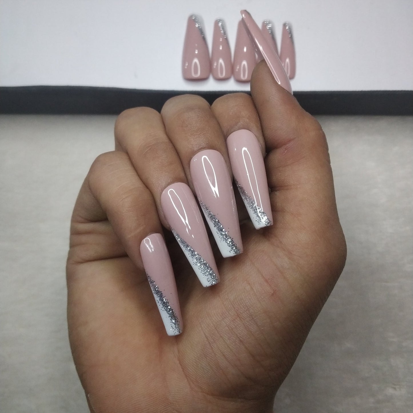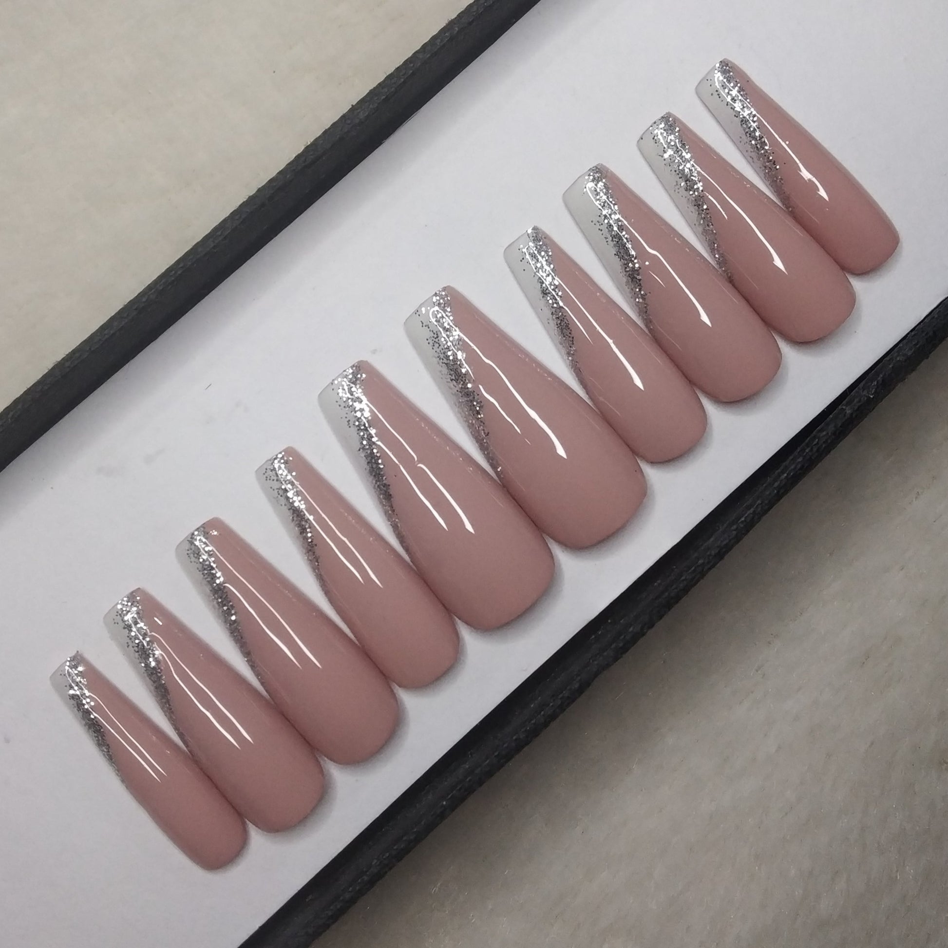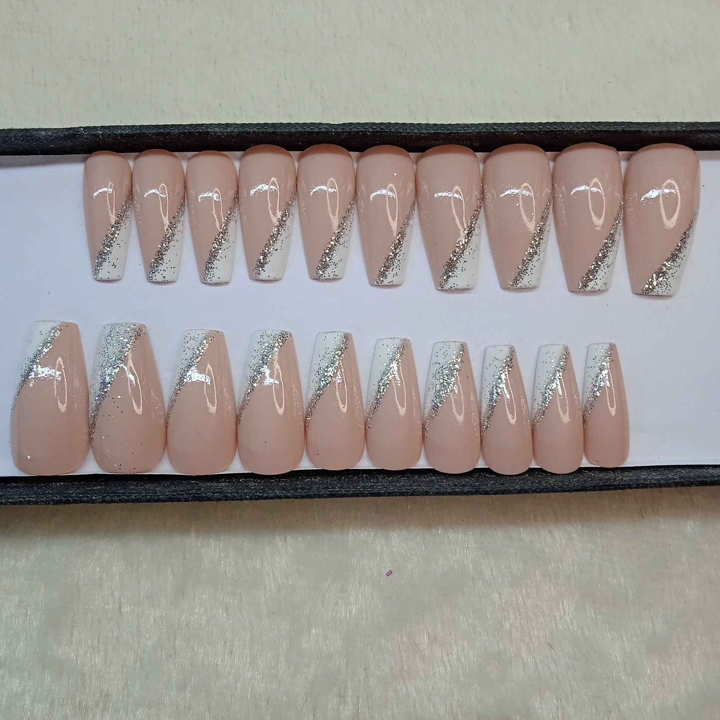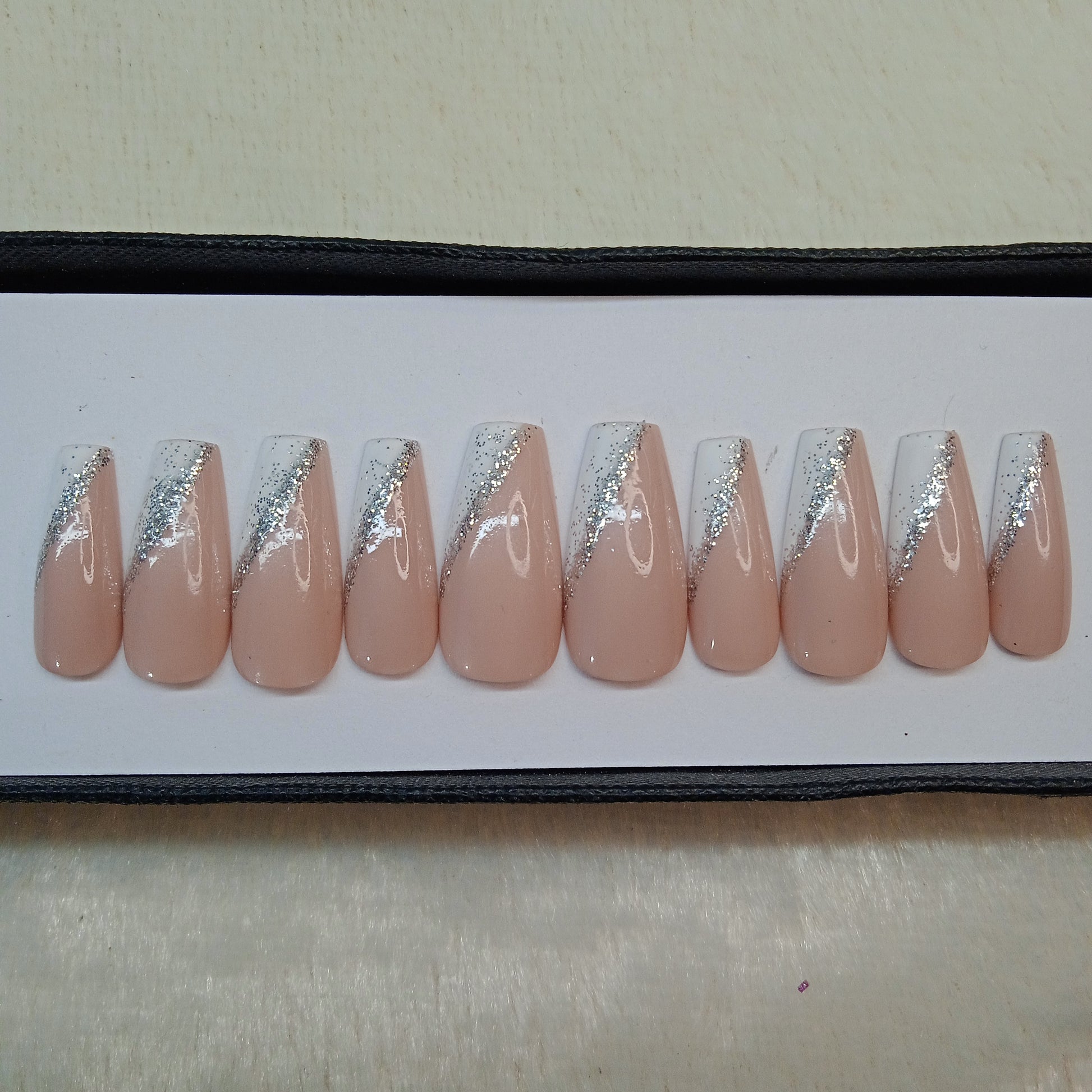 Glossy Nude Glitter Side French Press on Nails Set //937