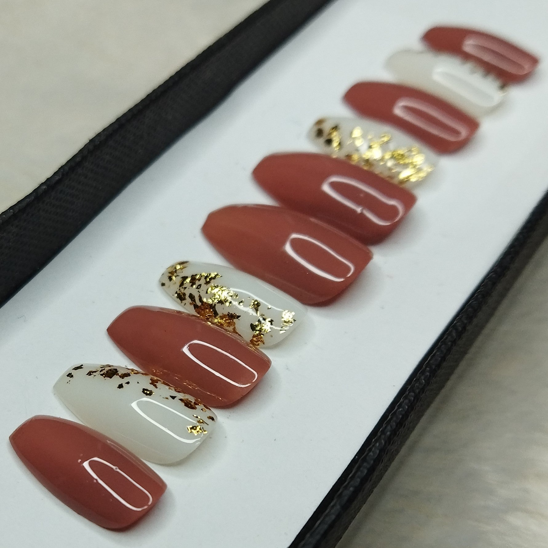 Glossy Nude Golden Foil Print Press on Nails Set // 794