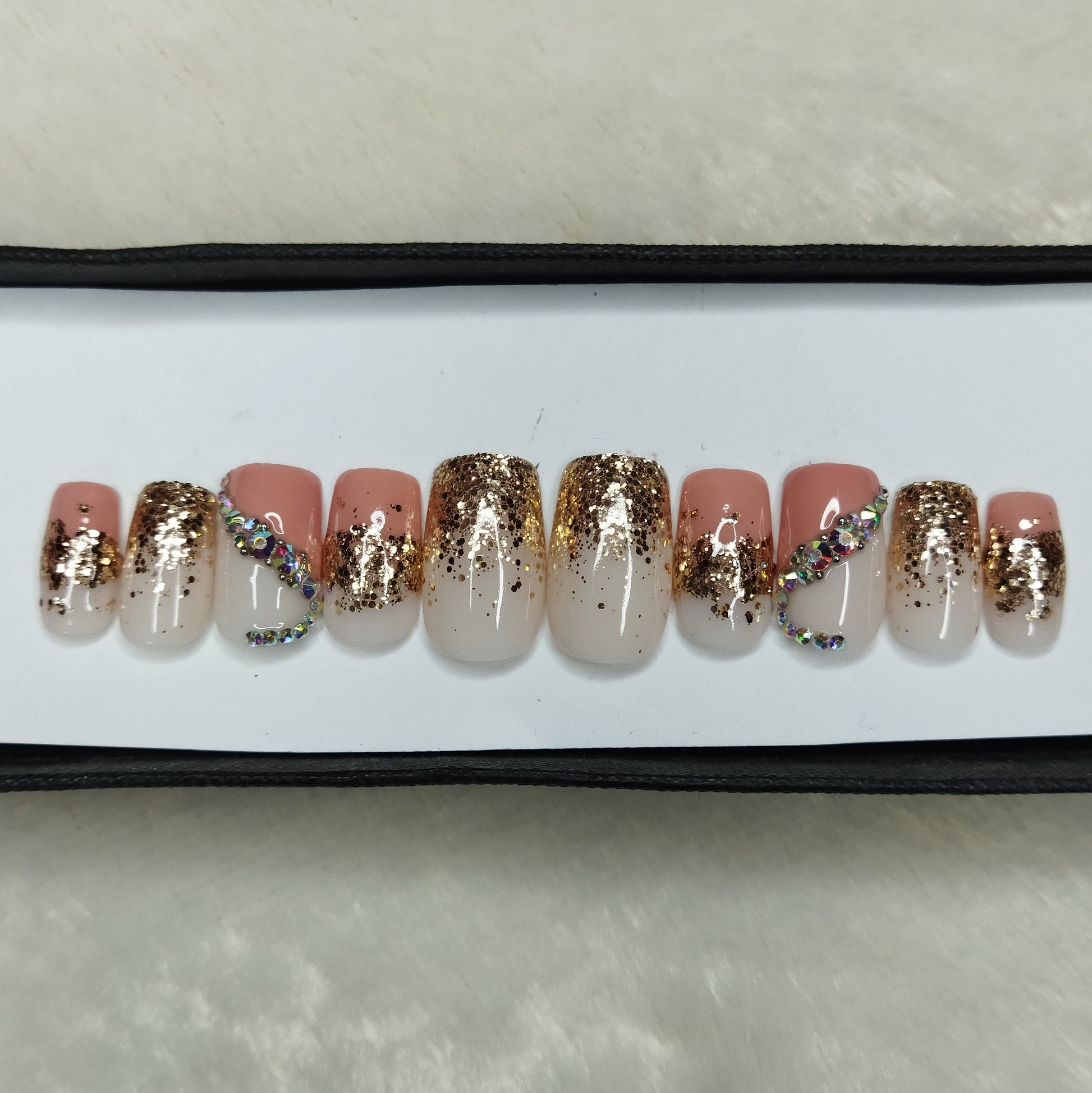 Glossy Nude Studded Press on Nails Set // 688