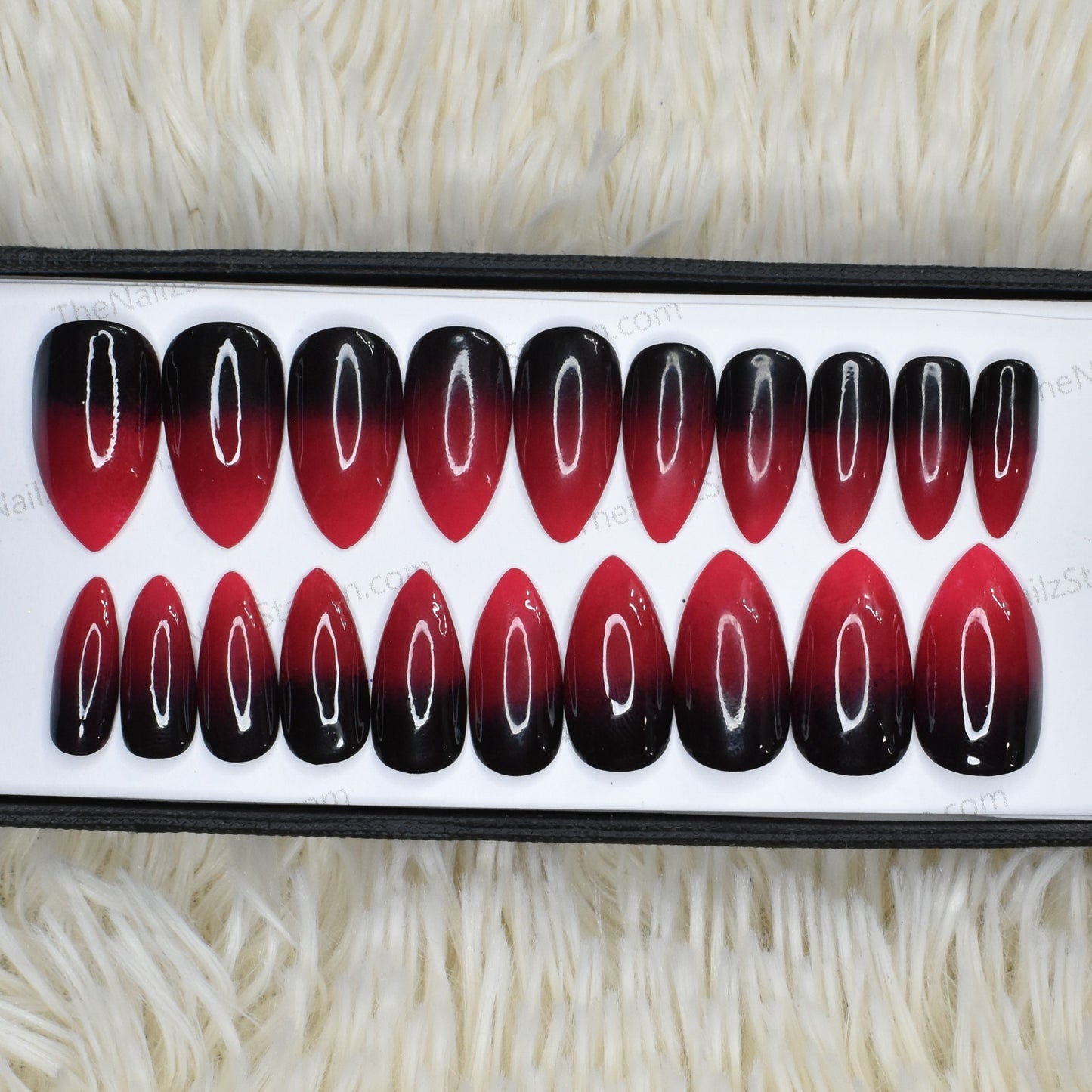 Glossy Pink and Black Ombre Press on Nails Set // 450