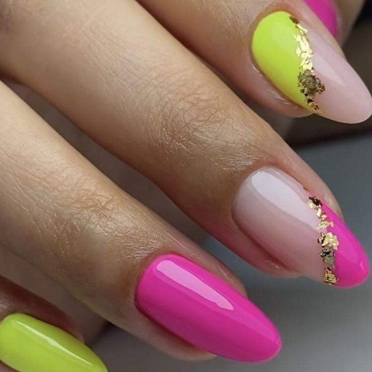 Glossy Pink and Yellow French Press on Fake Nails // tns465