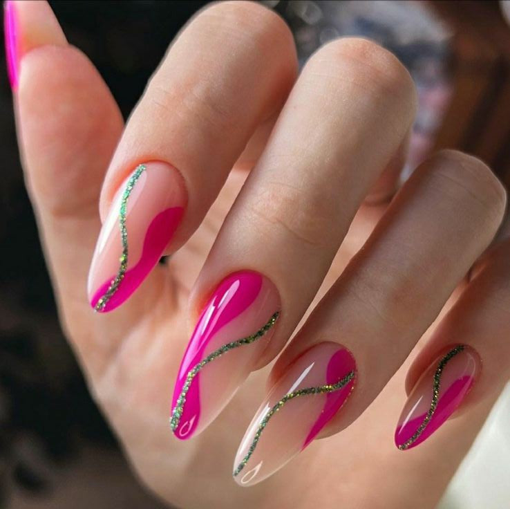 Glossy Pink Swirls Press on Fake Artificial Nails / tns681