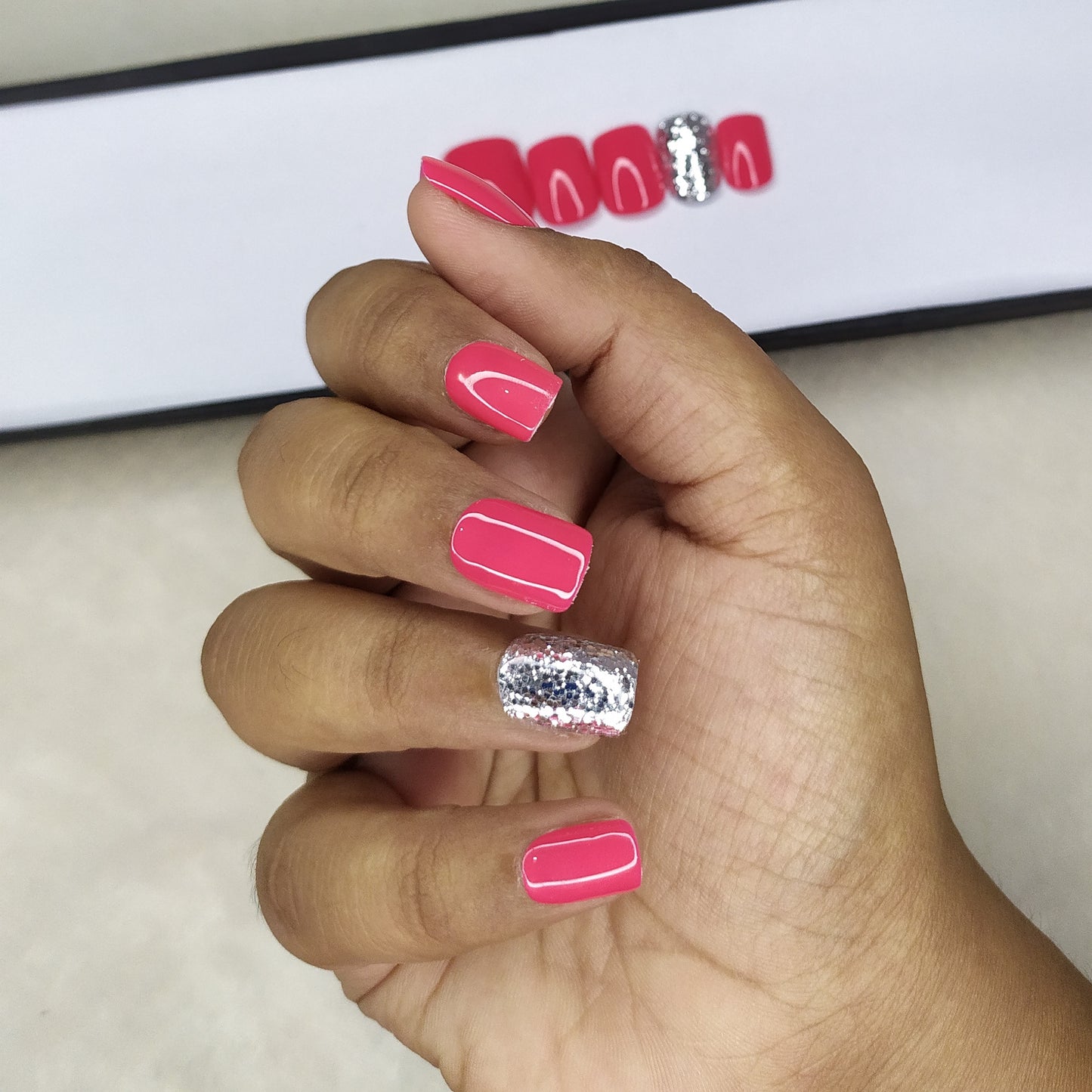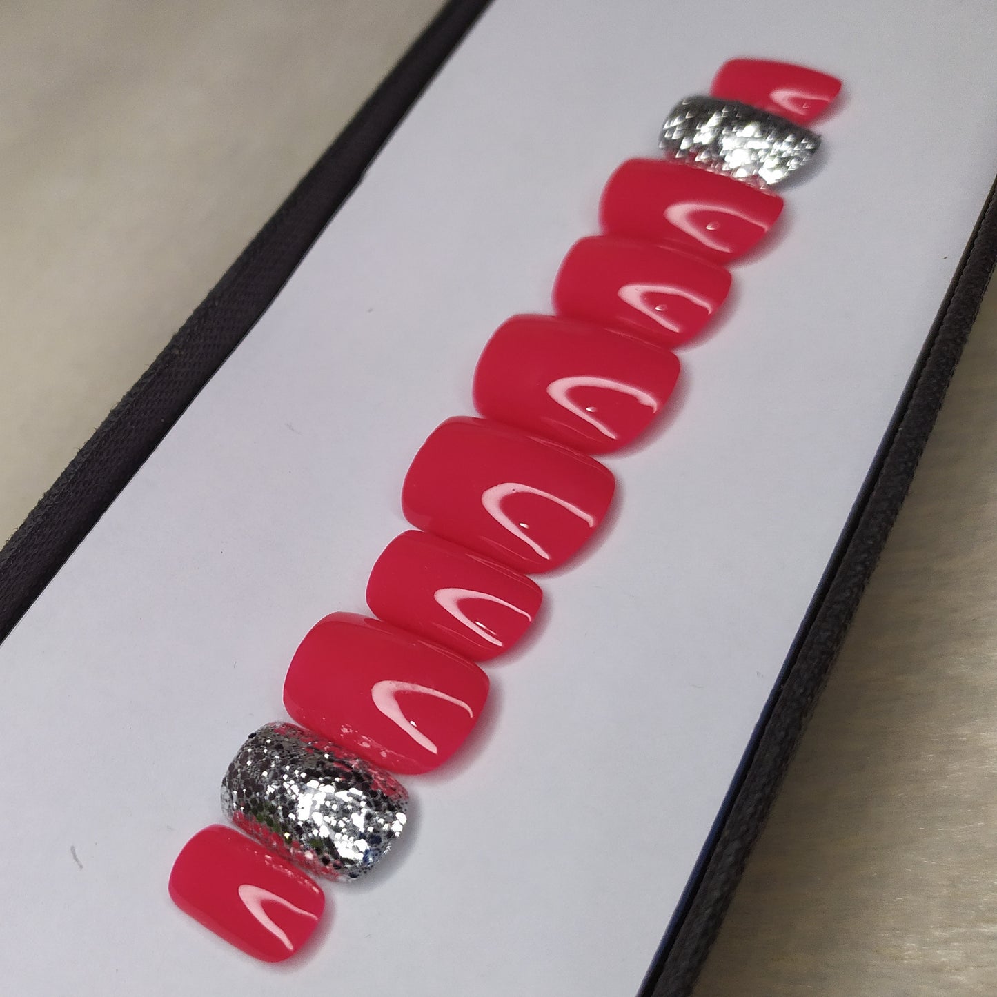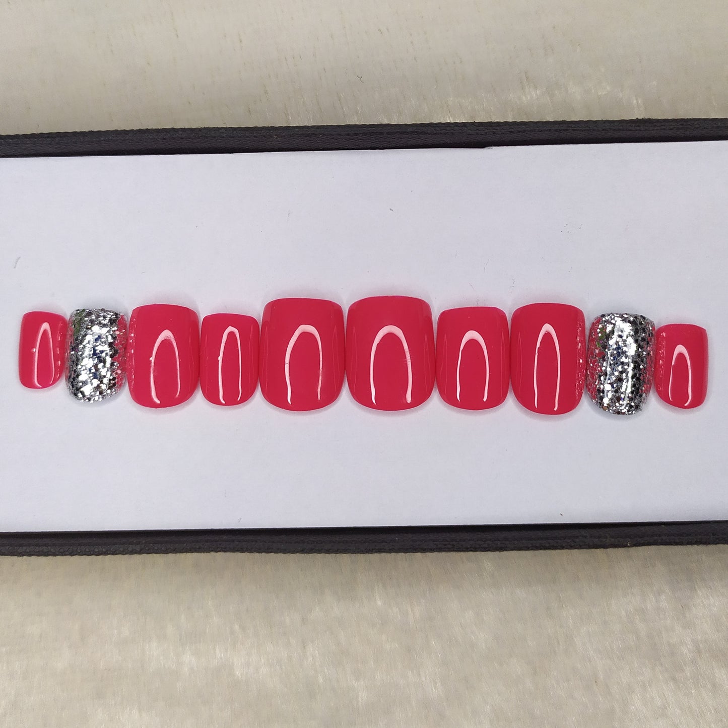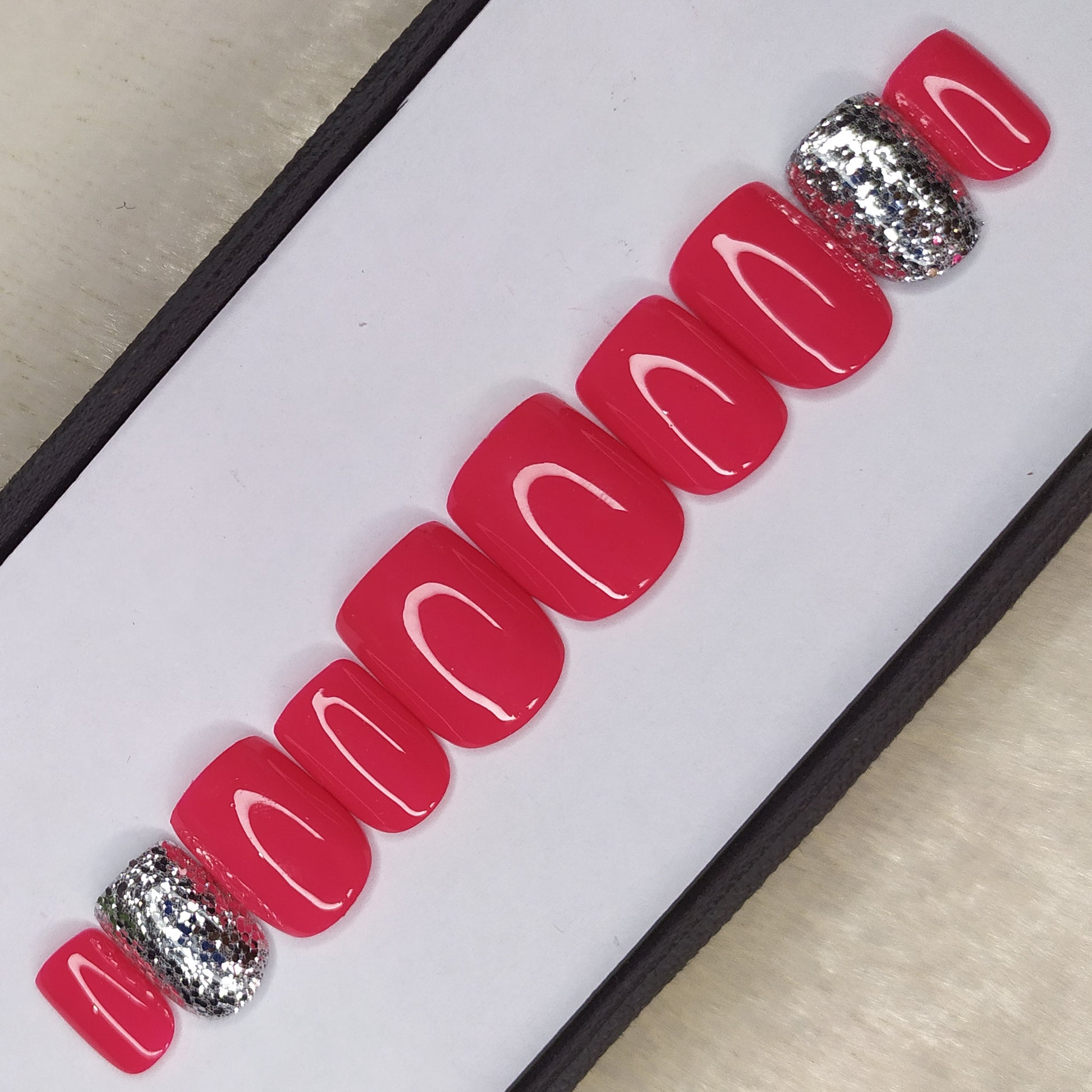 Glossy Pink with Silver Glitter Press on Nails Set // 533