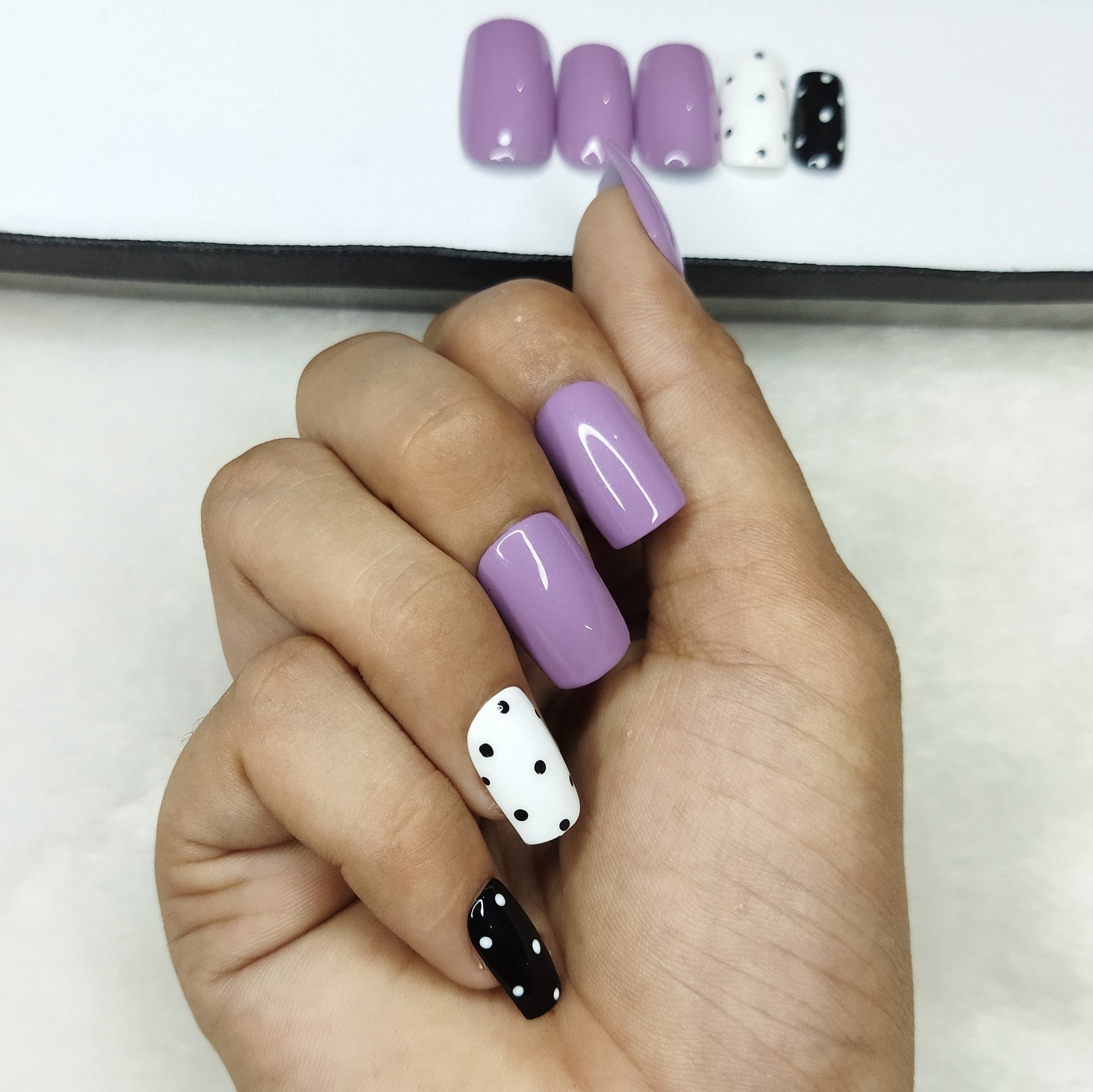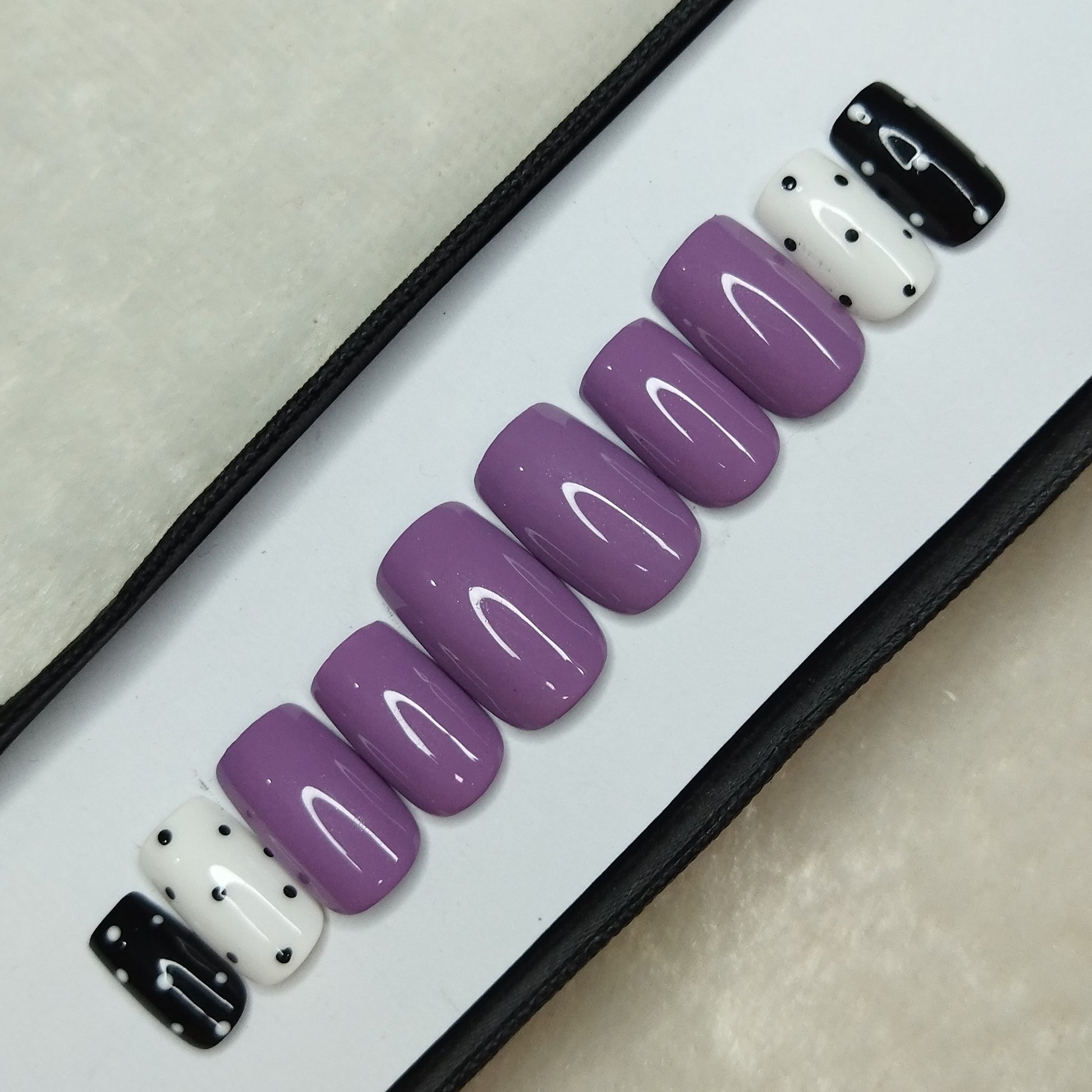 Glossy Purple Dots Press on Nails Set // 646
