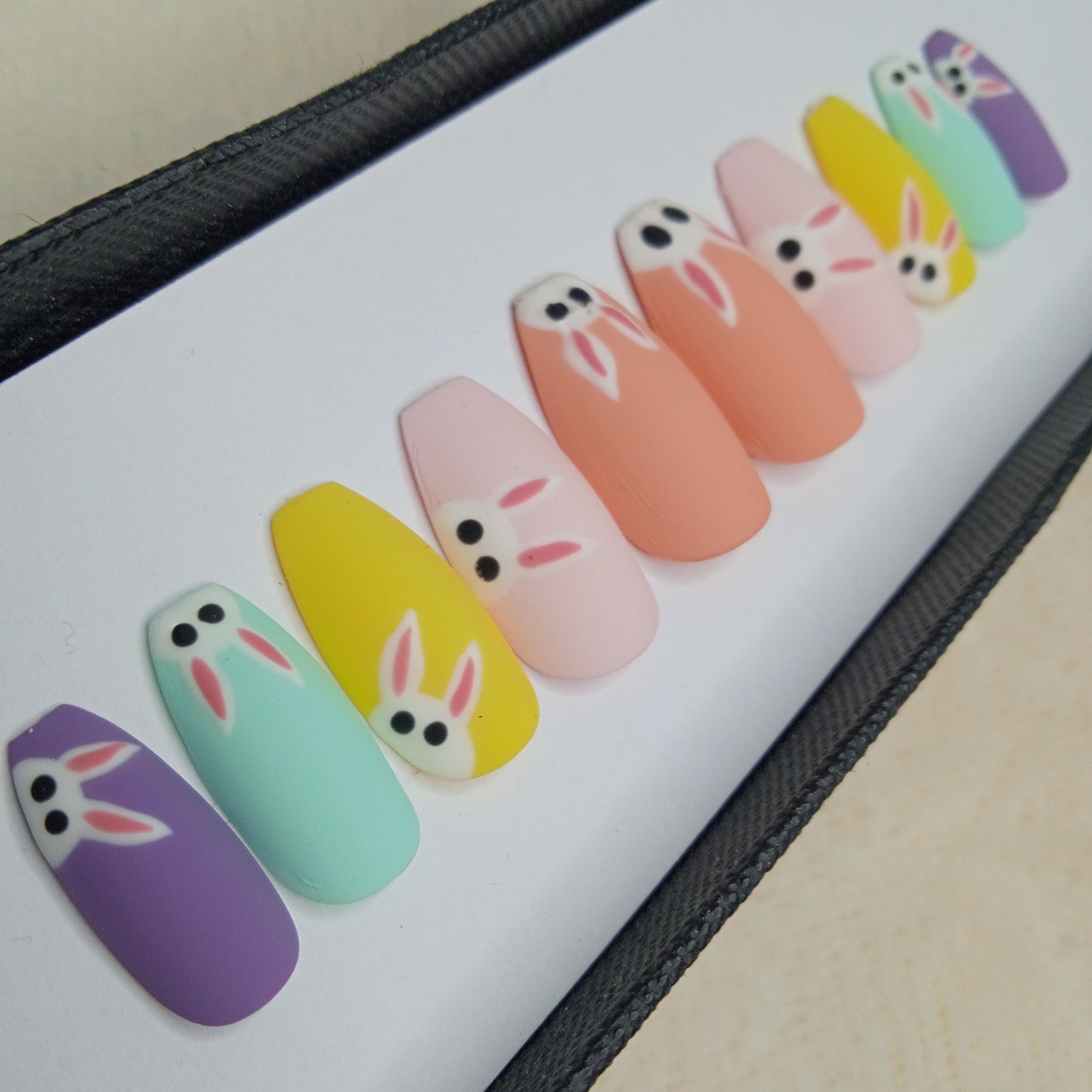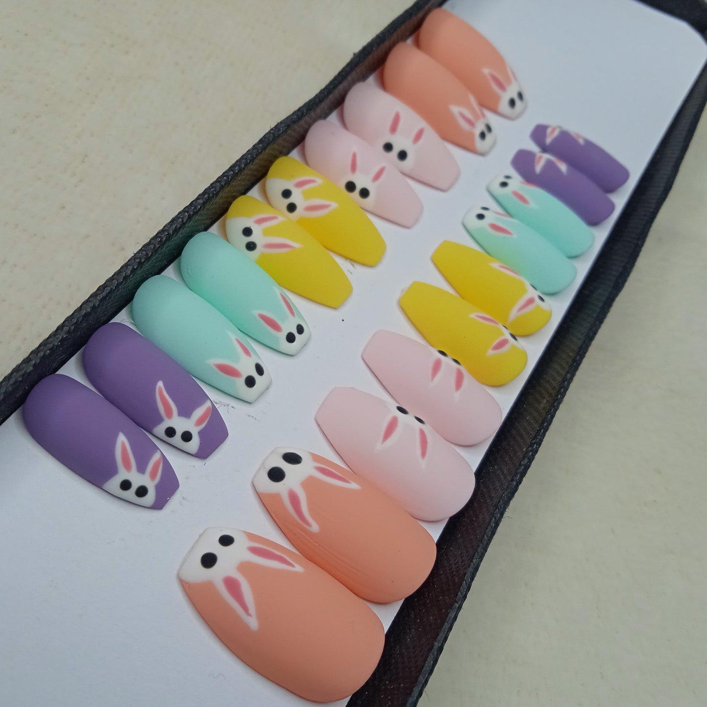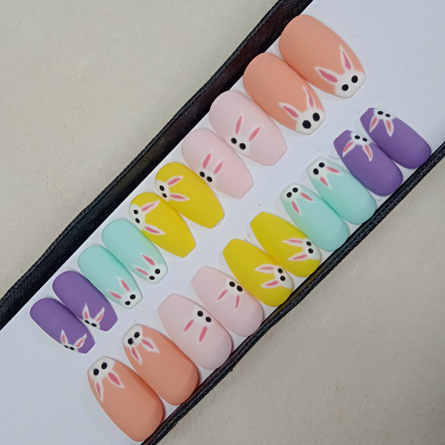 Matte Colorful Cute Bunny Print Press on Nails Set //892