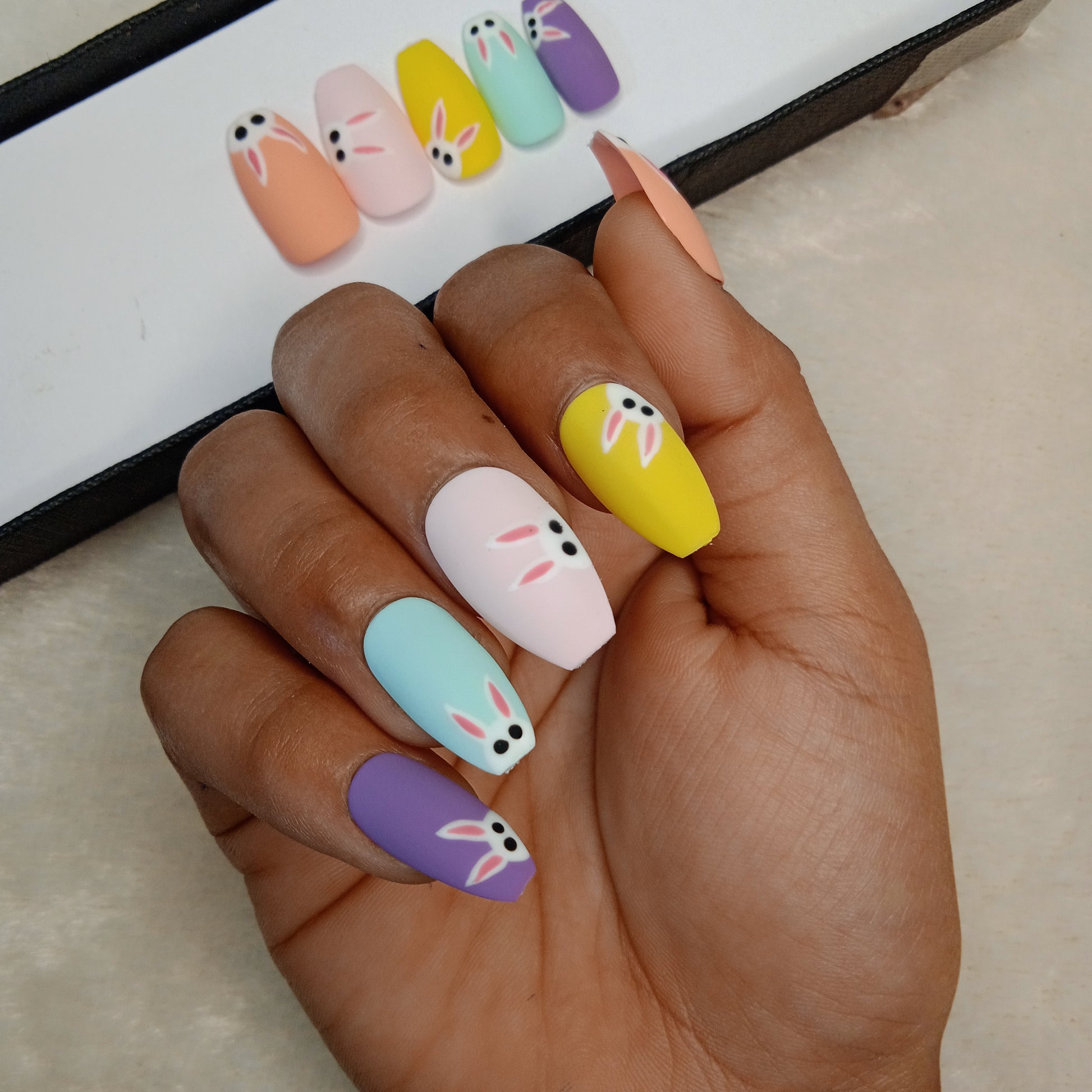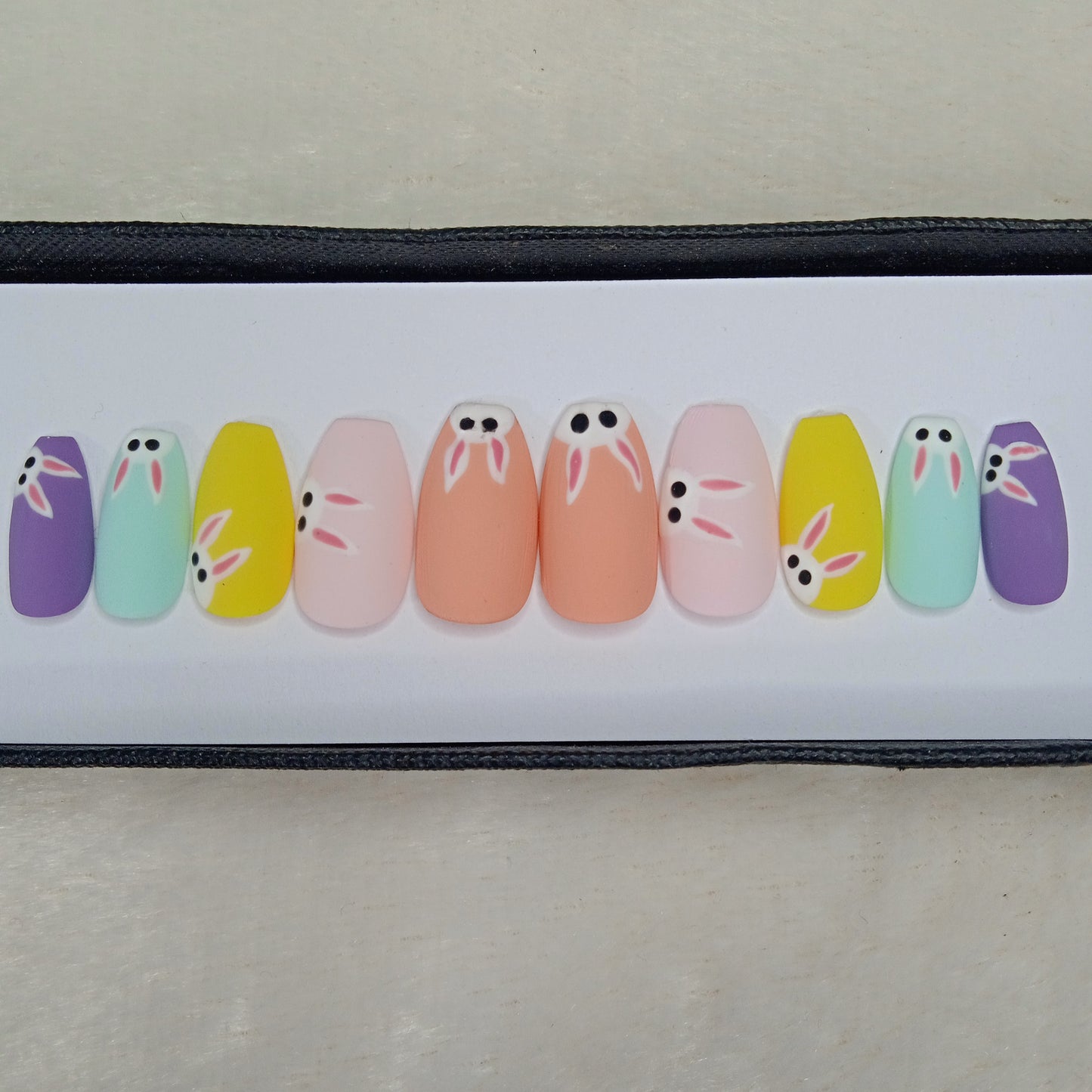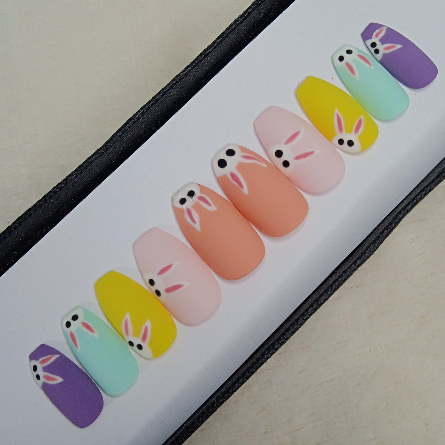 Matte Colorful Cute Bunny Print Press on Nails Set //892