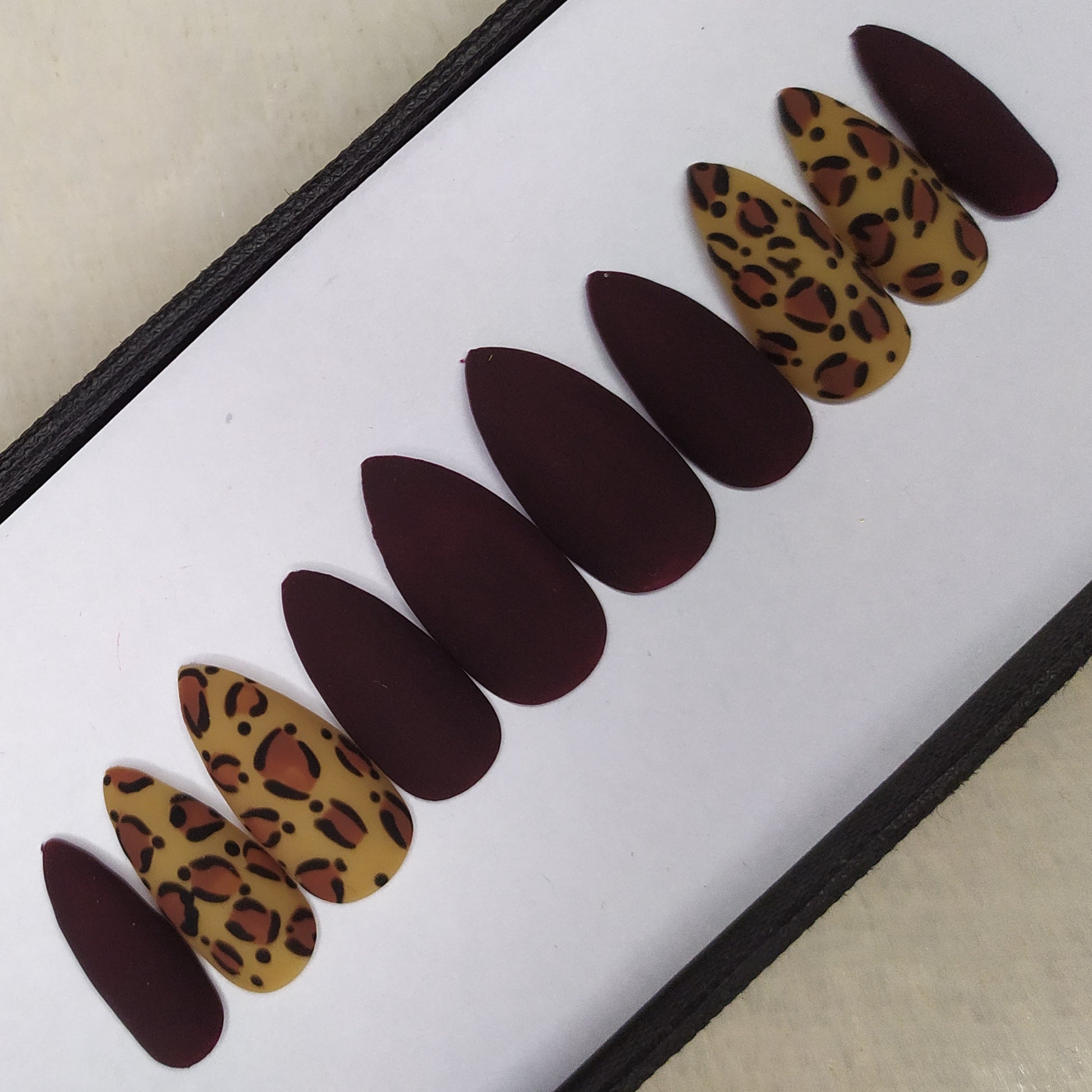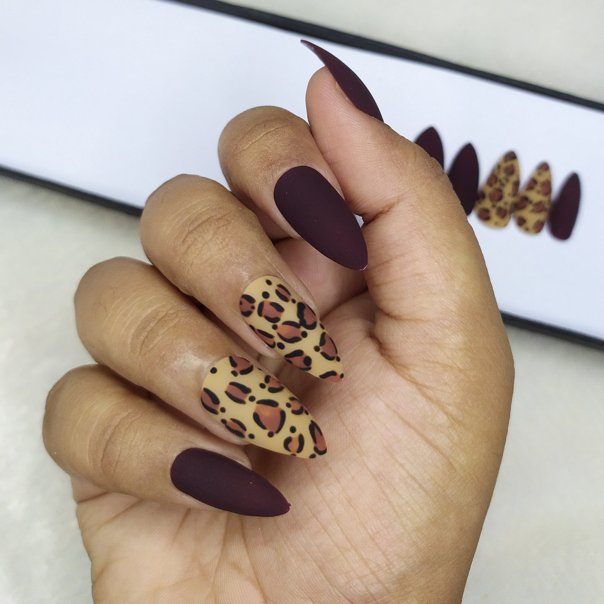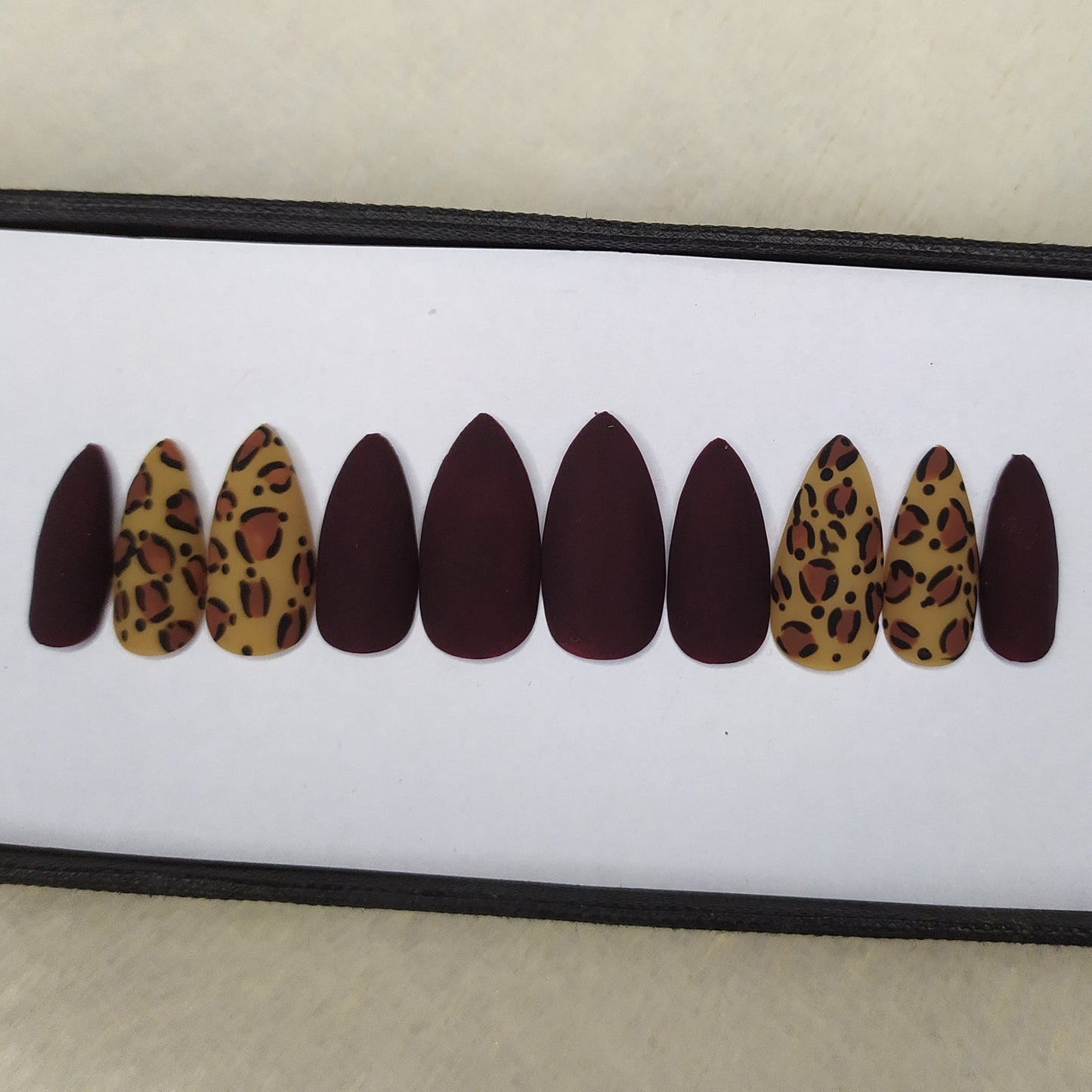 Matte Dark Maroon Animal Print Press on Nails Set // 539