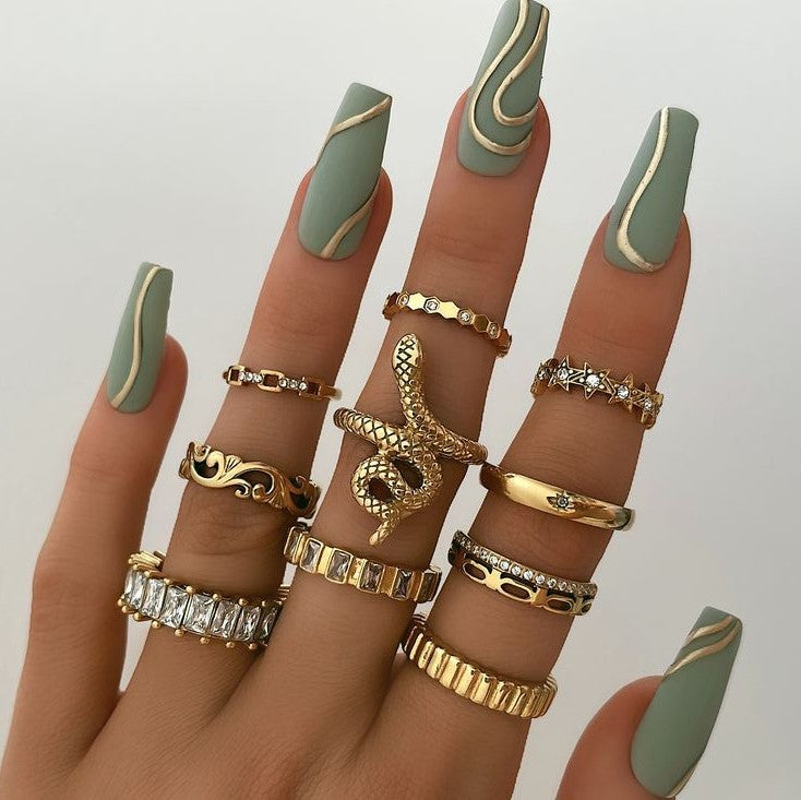 Matte Green Swirls Press on Fake Artificial Nails / tns644