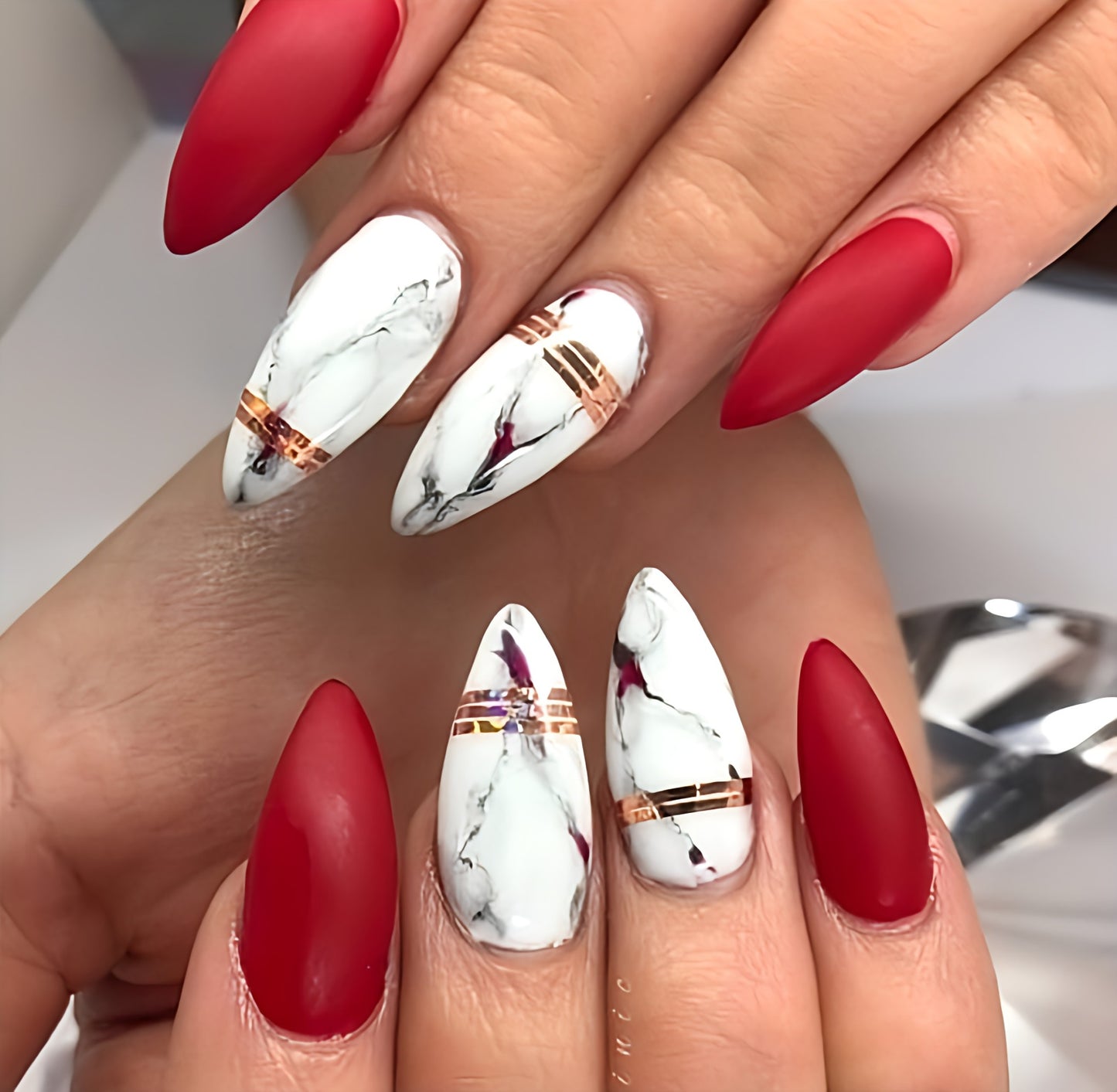 Matte Red Marble Press on Fake Nails // tns273