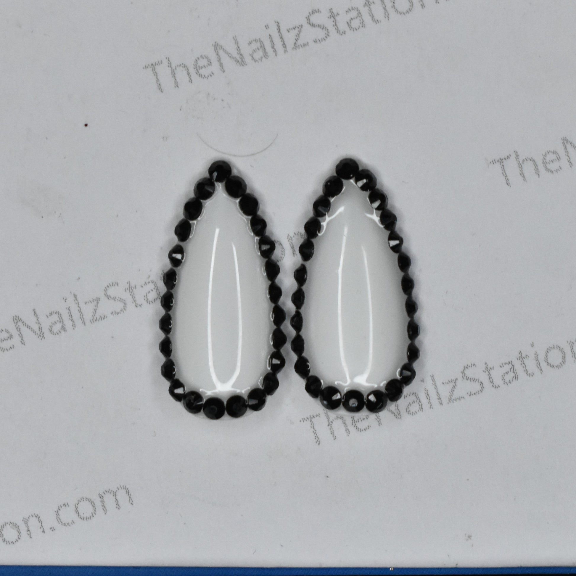 Pair of White Black Rhinestones Replacement Press on Nails (2 pieces)