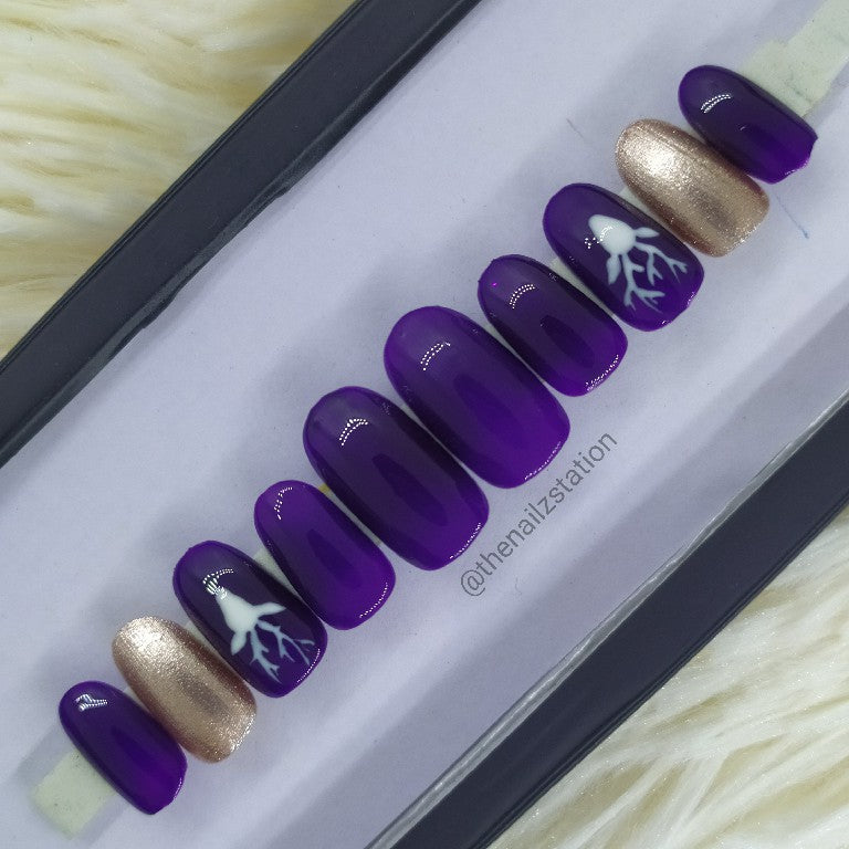 Purple and Rose Gold Reindeer Press on Nails // 117
