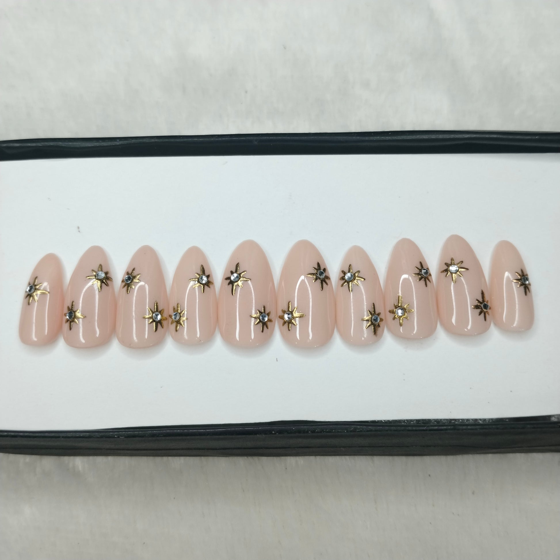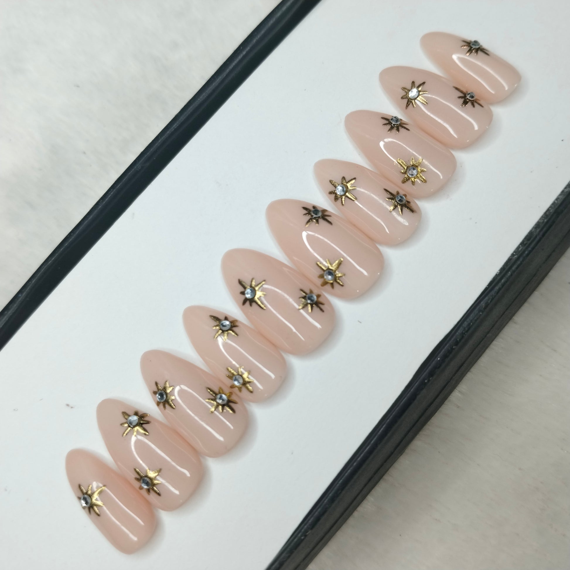 The NailzStation Glossy 3D Chrome Stars Press on Fake Artificial Nails Set with glue, filer, sticker application kit // 1222