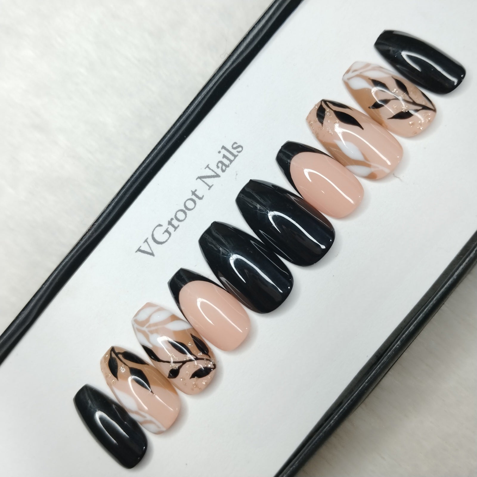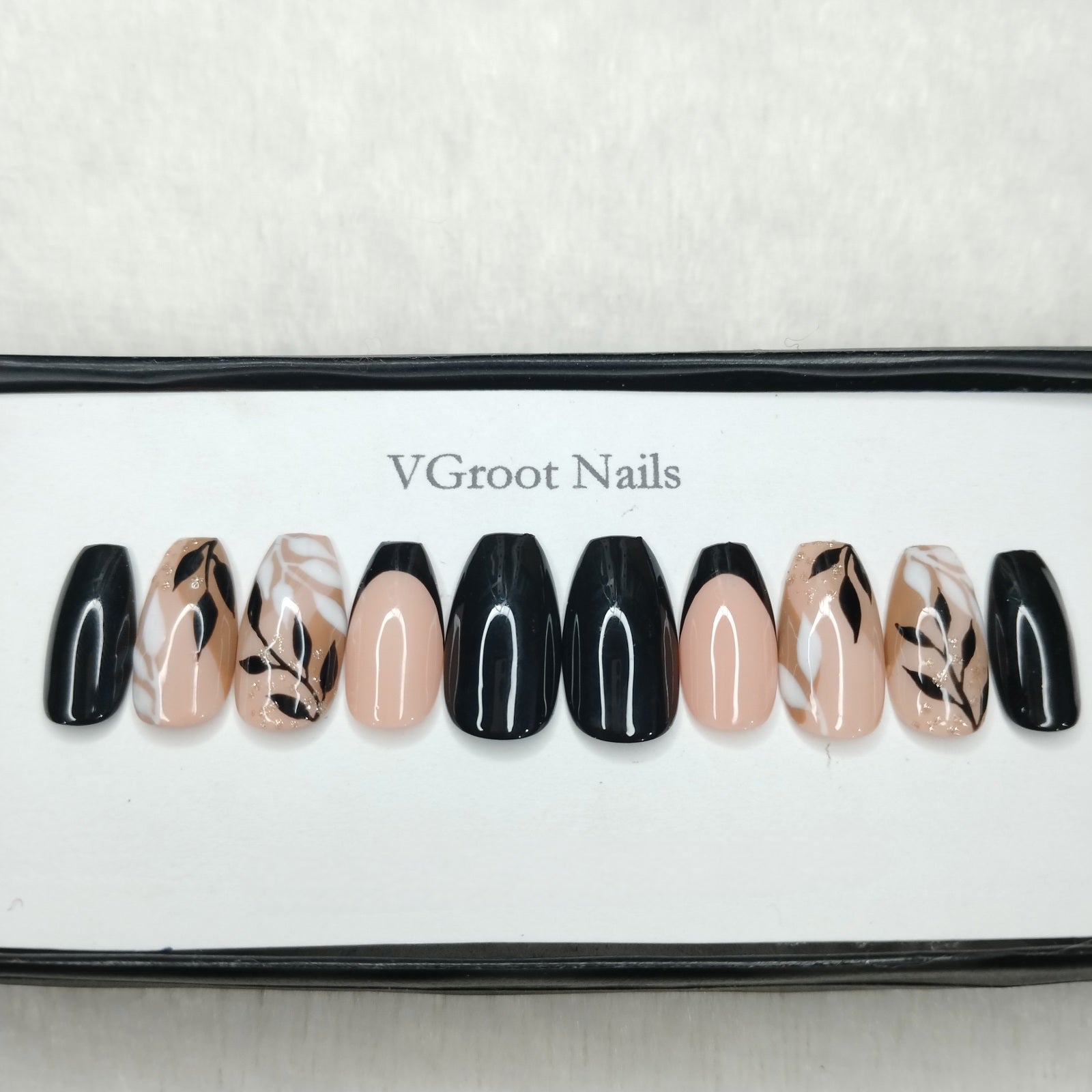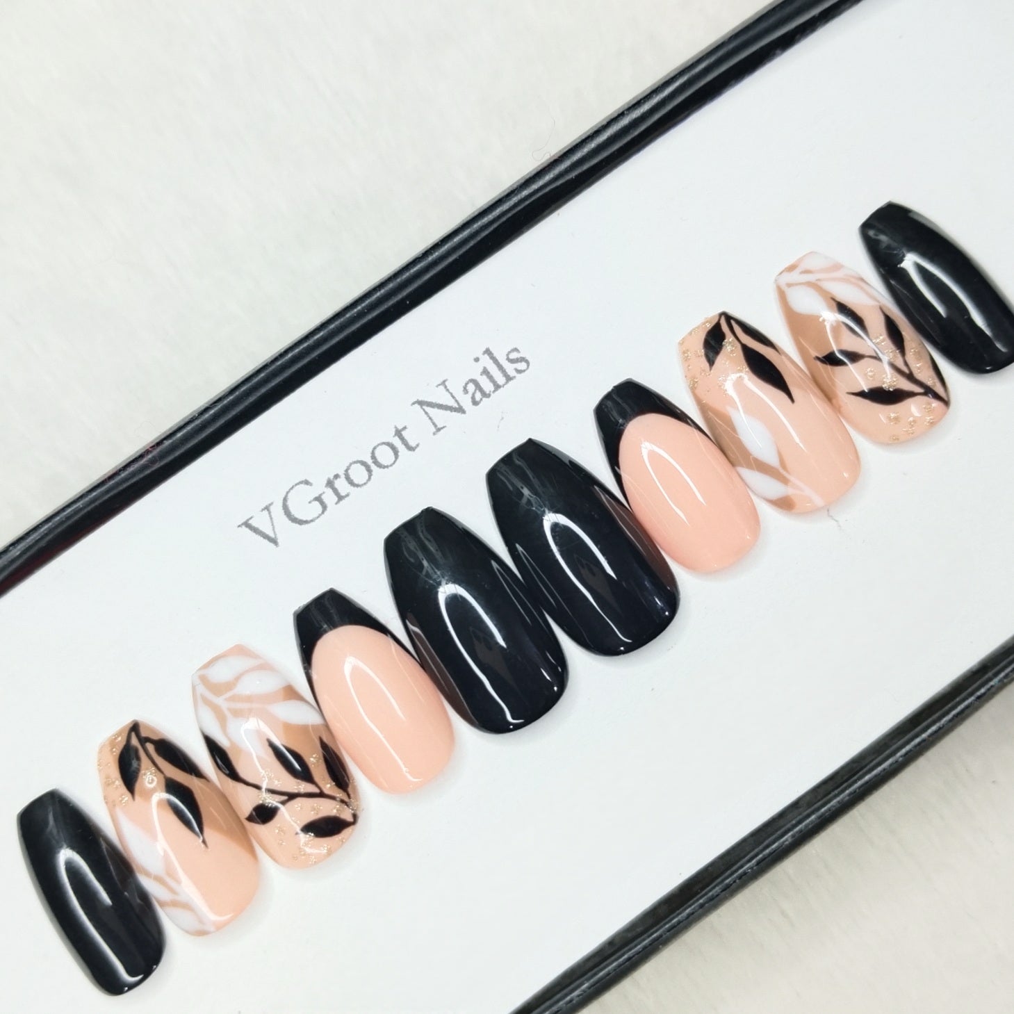 The NailzStation Glossy Black French Floral Press on Fake Artificial Nails Set with glue, filer, sticker application kit // 1091